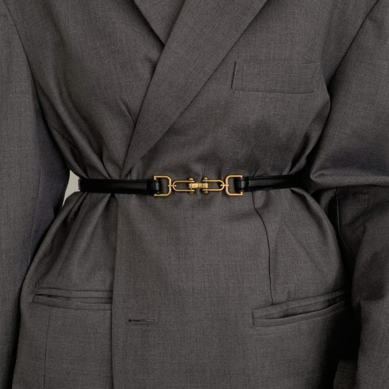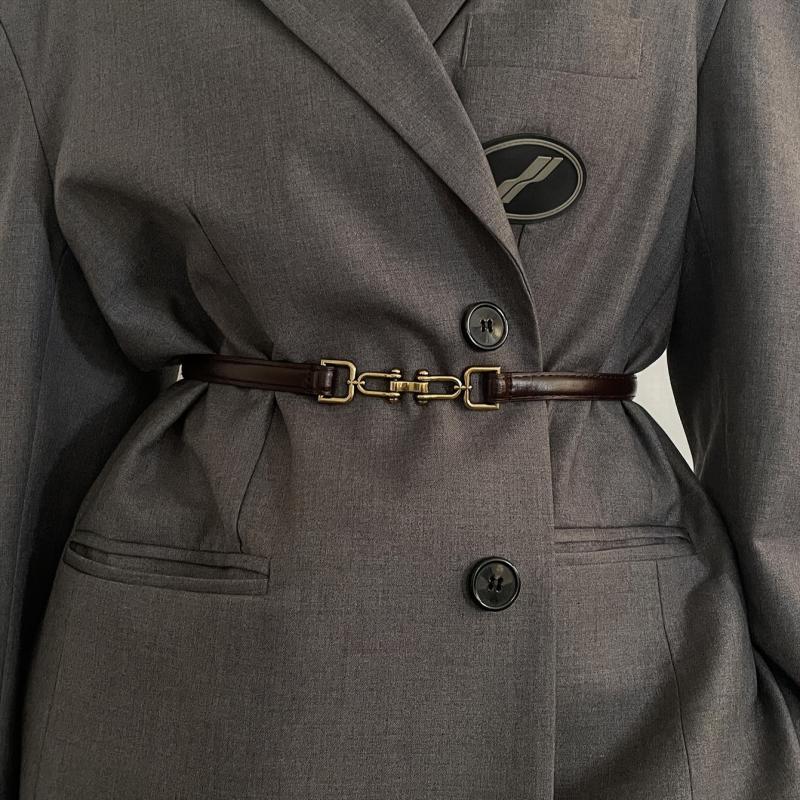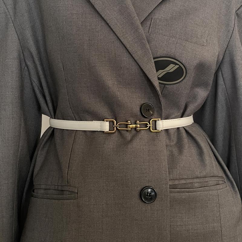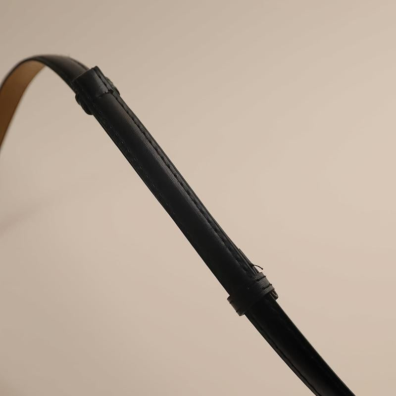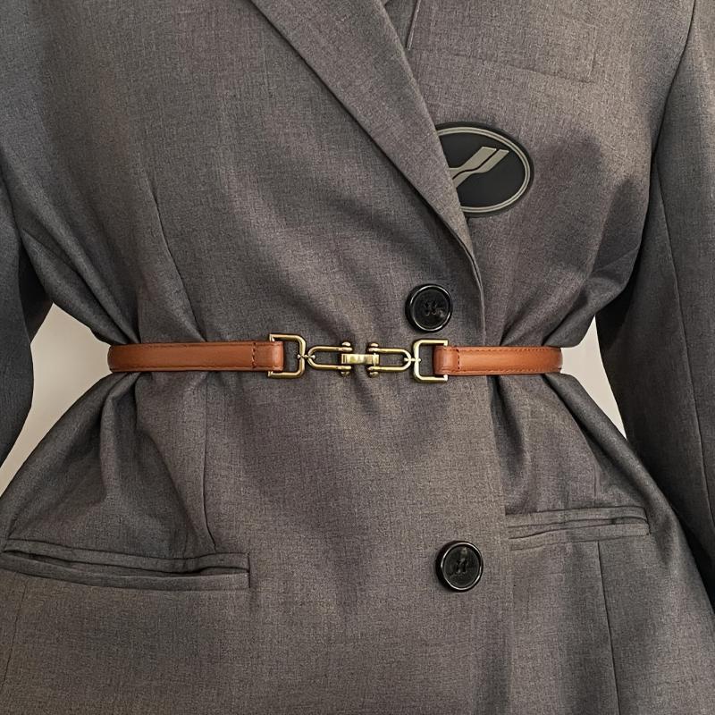 Elevate your outfit with this stylish double buckle skinny belt made of high-quality PU leather. The classic design adds a touch of elegance to any dress or outfit.