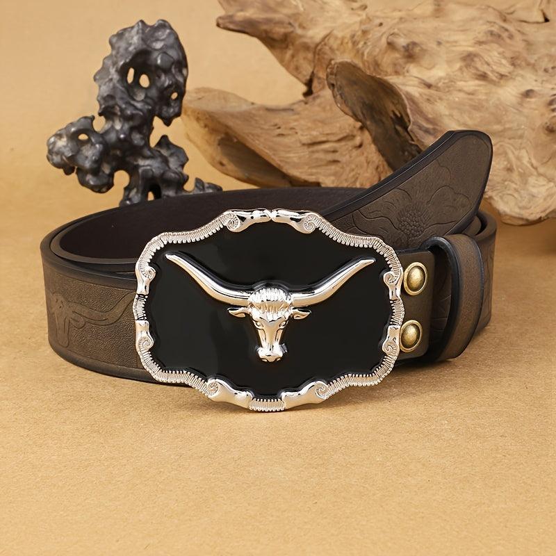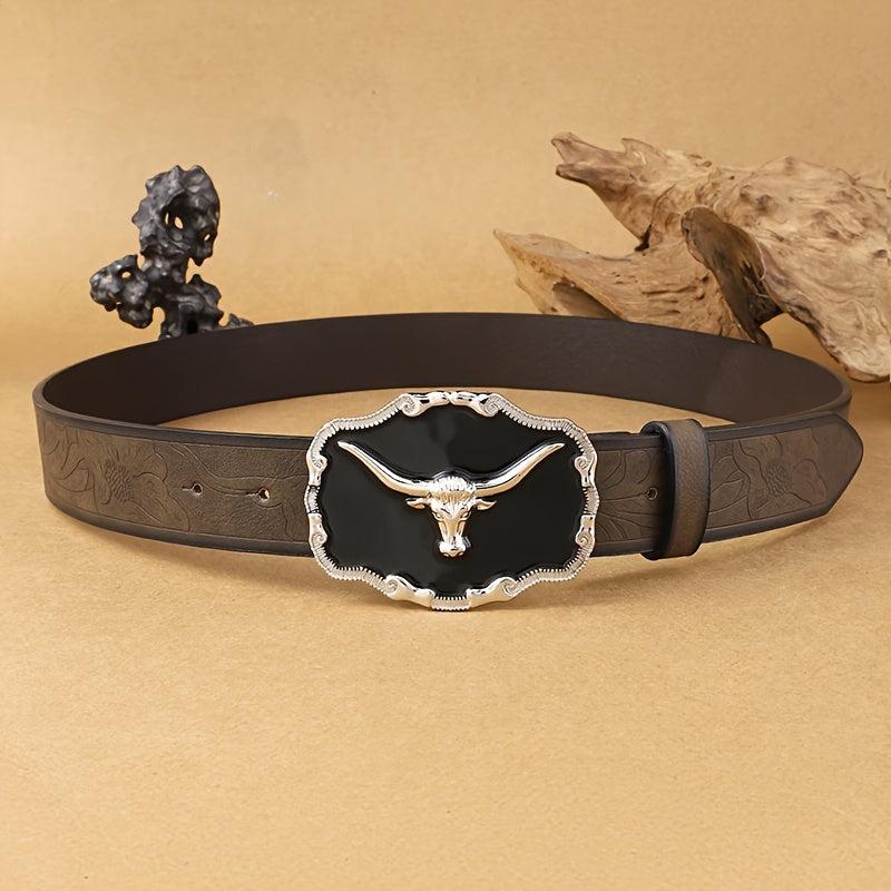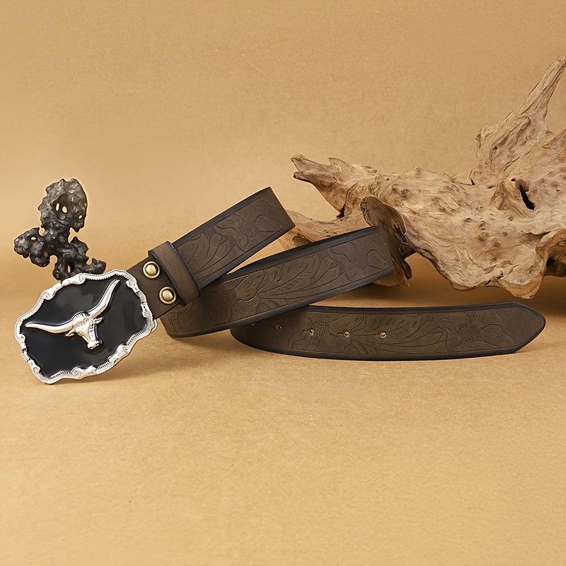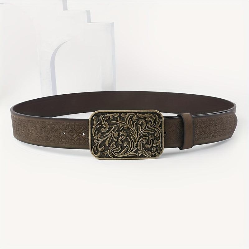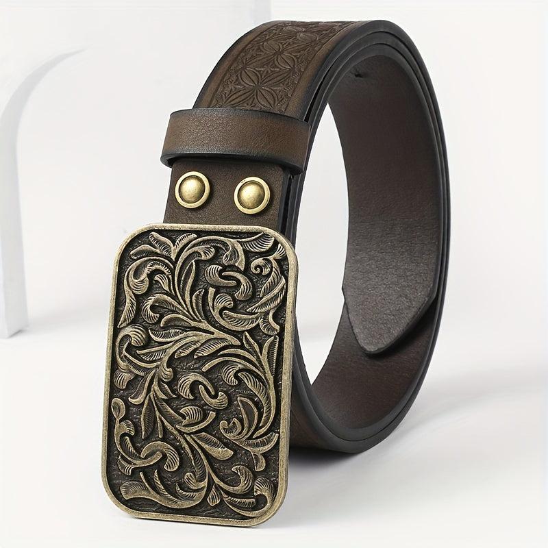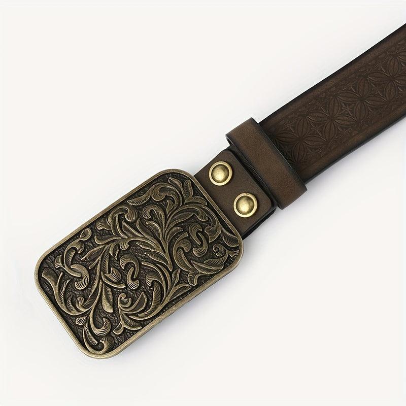 Add a touch of Western flair to your outfit with this vintage style embossed belt suitable for both men and women.