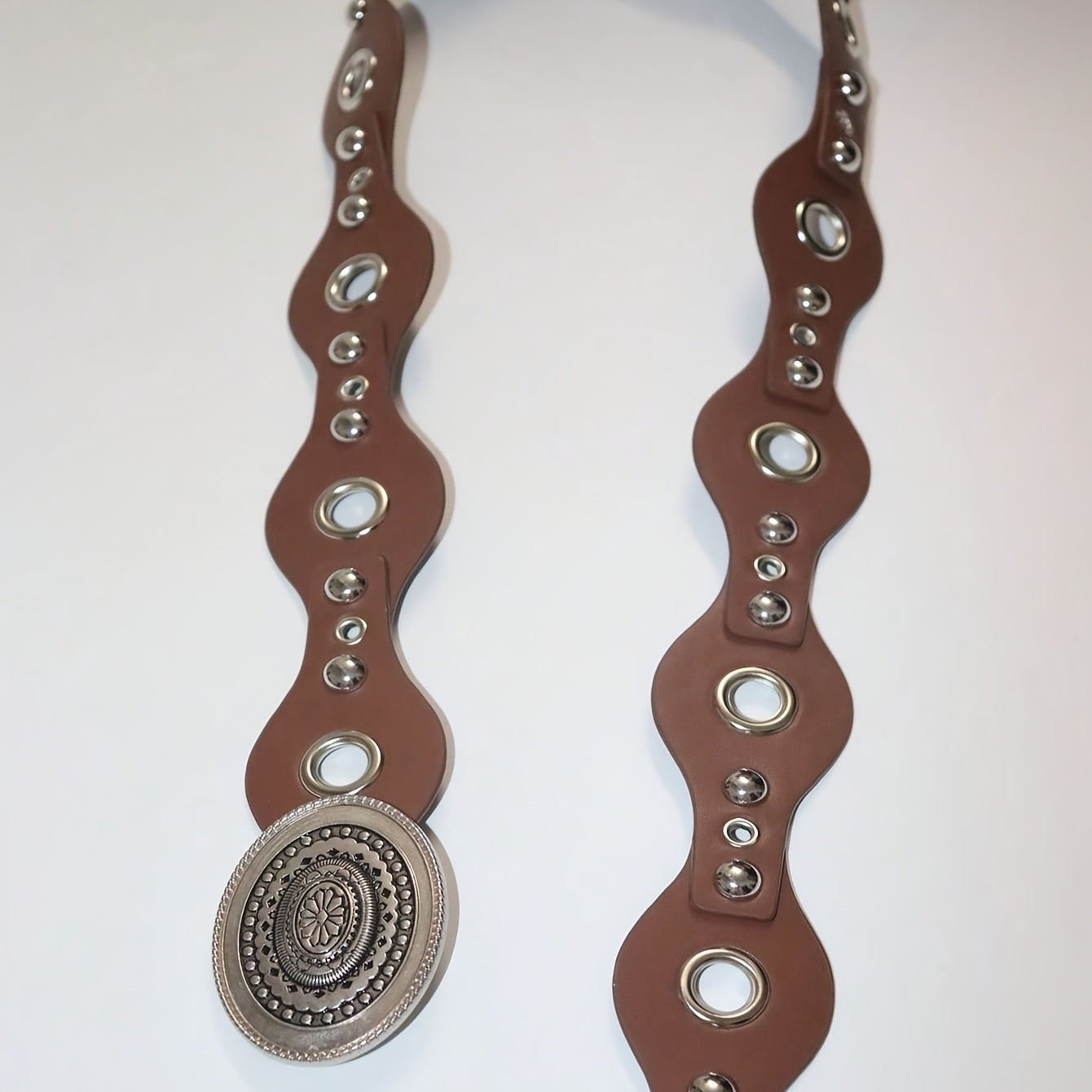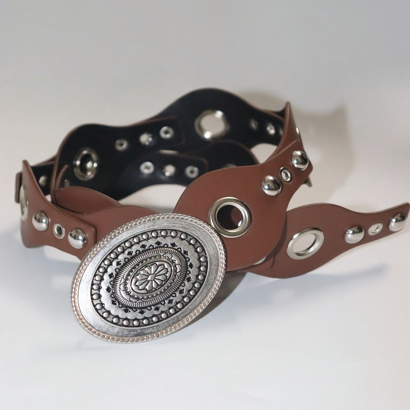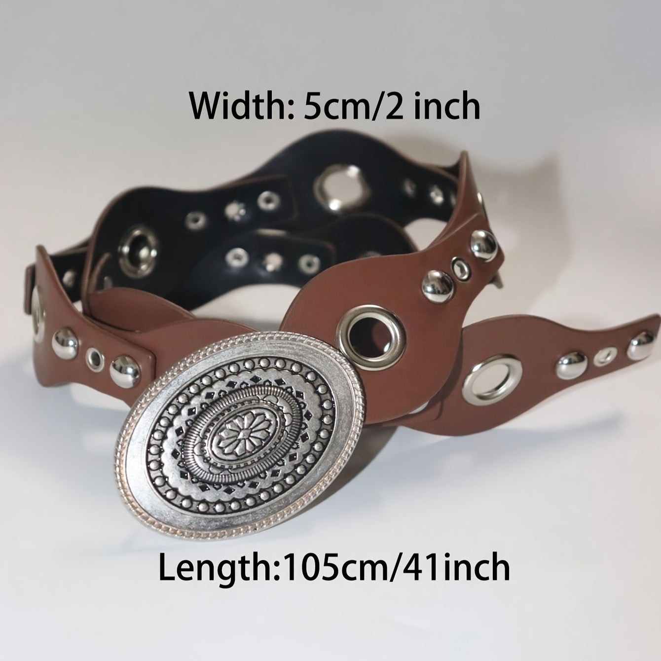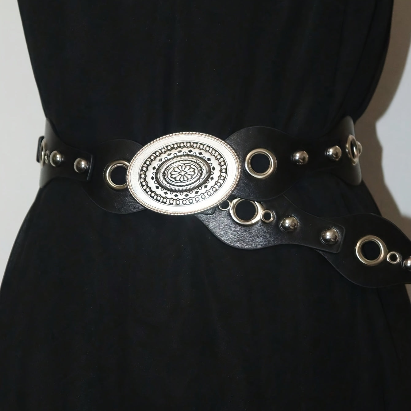 Add a touch of European and American Bohemian flair to your outfits with this versatile polyurethane belt. Perfect for all seasons, the studded round discs add a sexy and unique element to your look.