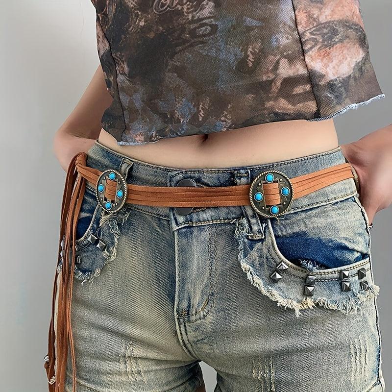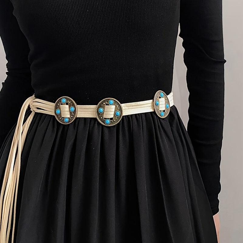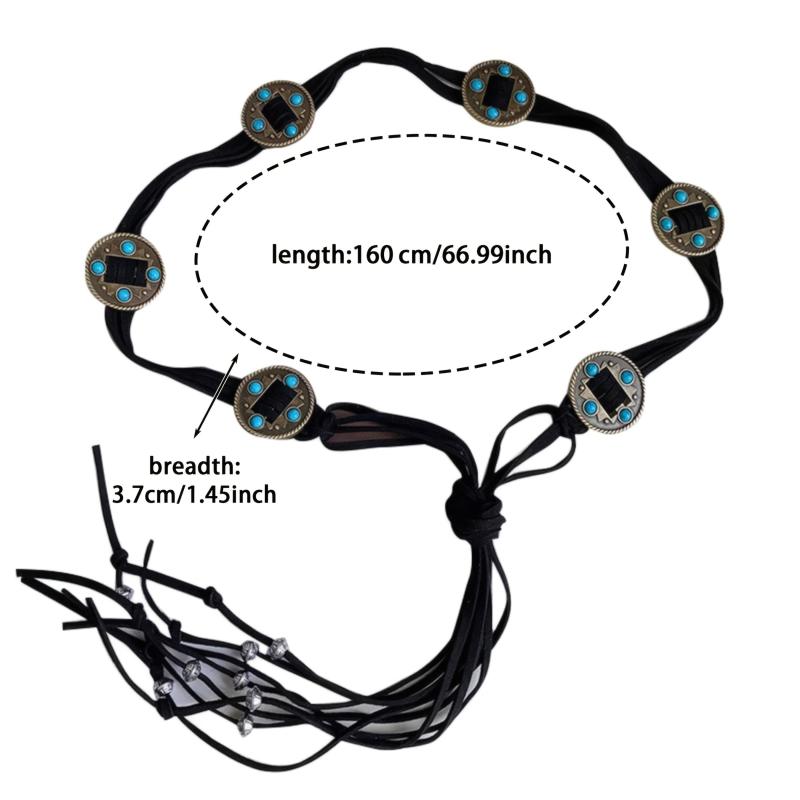 Add a touch of vintage ethnic style to your outfit with this decorative waist belt featuring tassels. Suitable for all seasons, this high-end belt brings a unique and stylish look to your wardrobe.