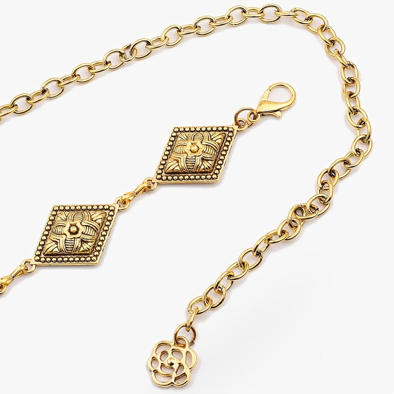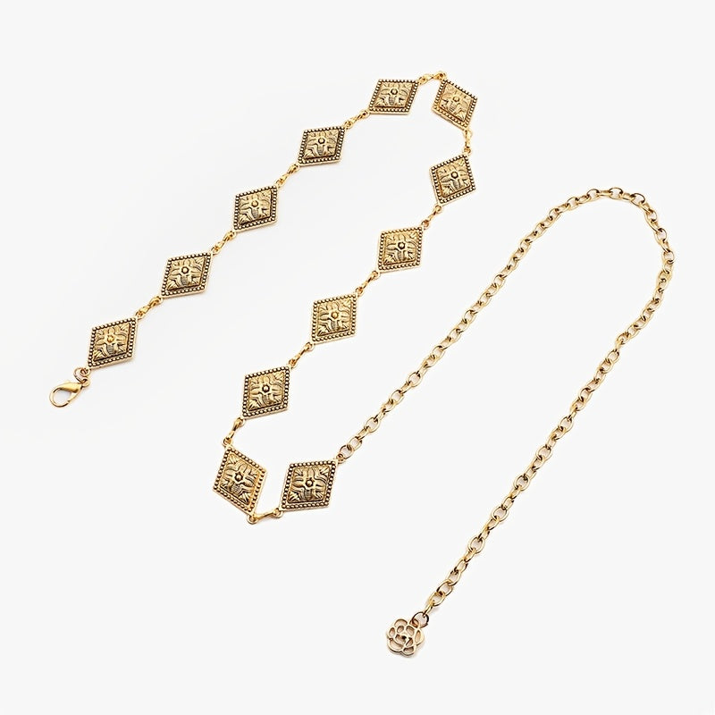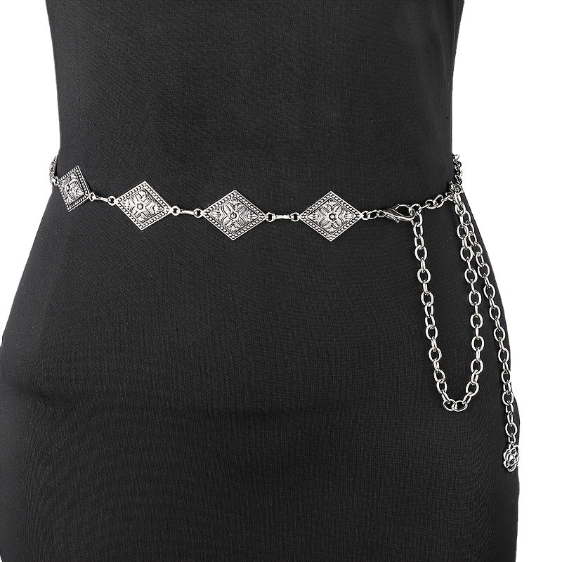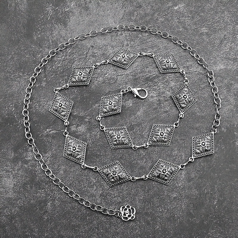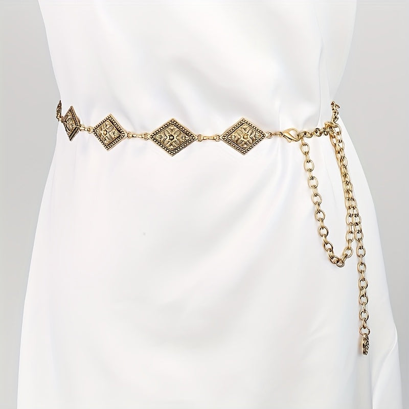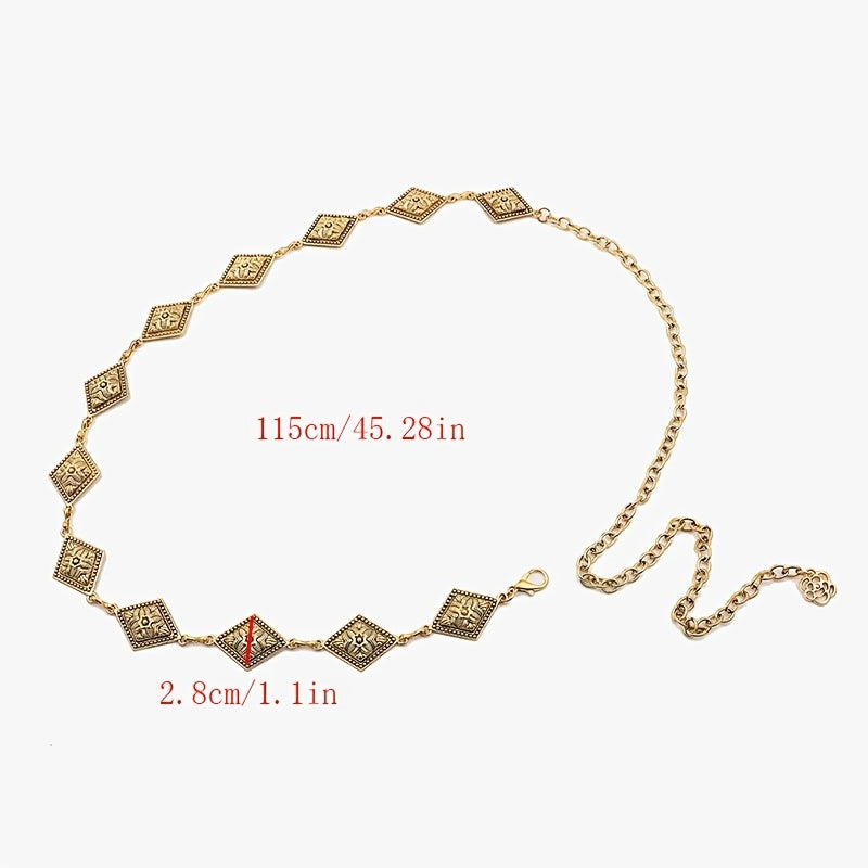Add a touch of vintage charm with this geometric carved waist chain. Made of high-quality materials, this waist chain is perfect for adding style to any outfit.