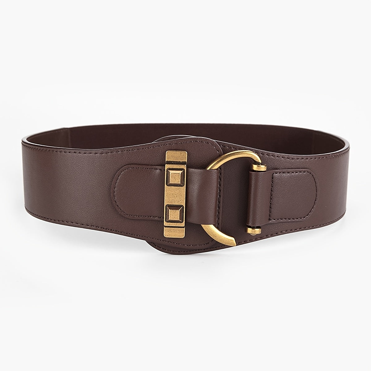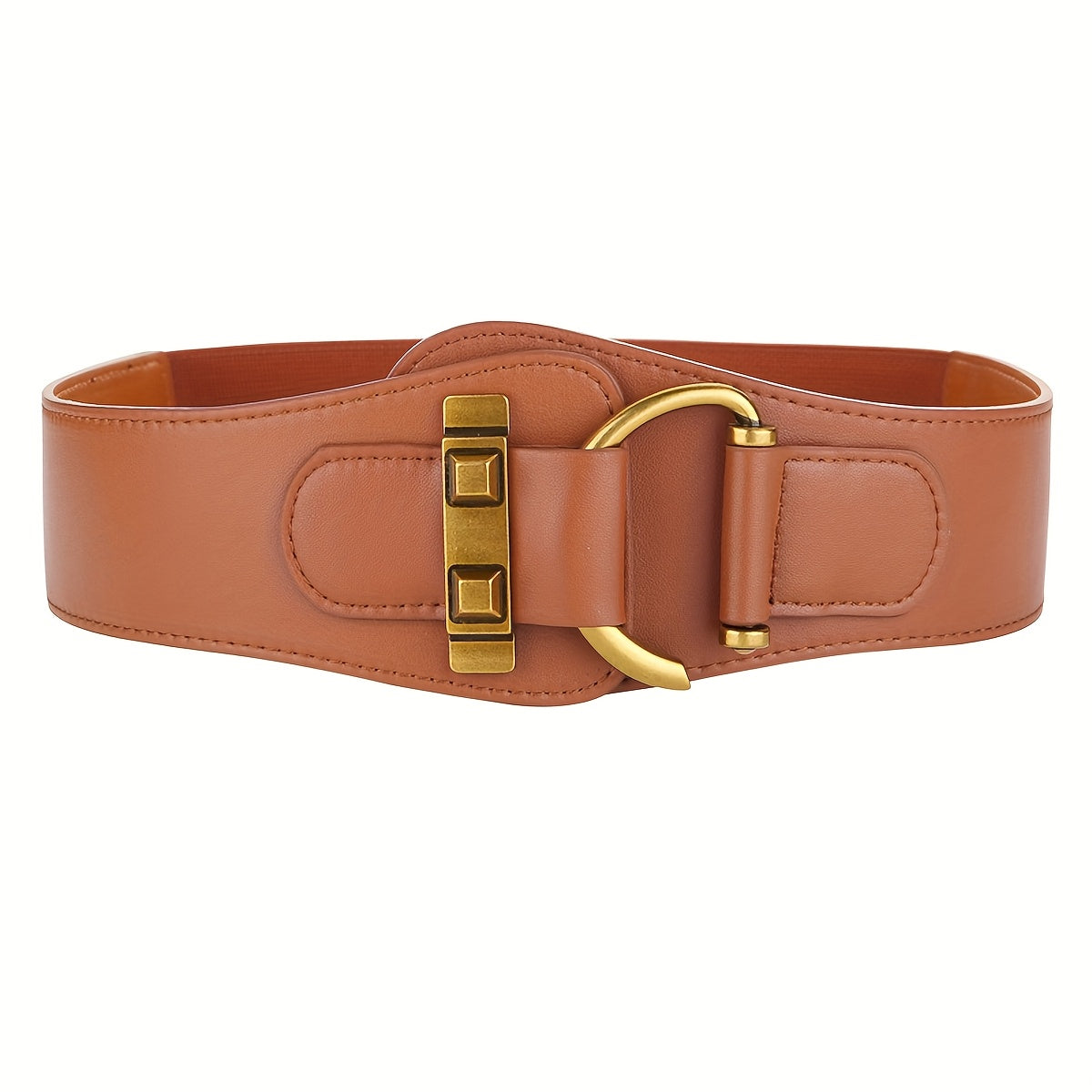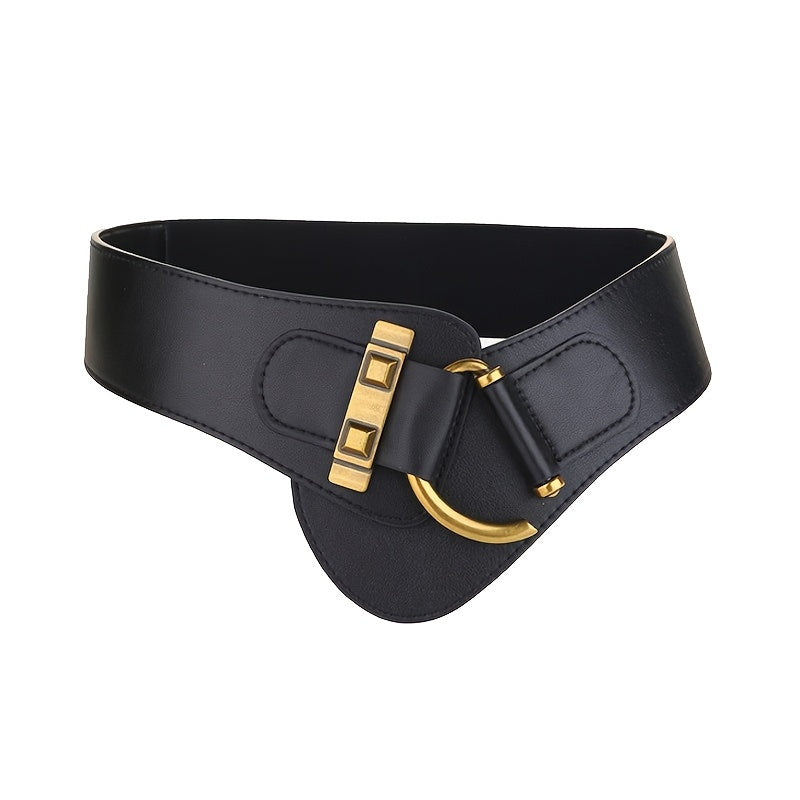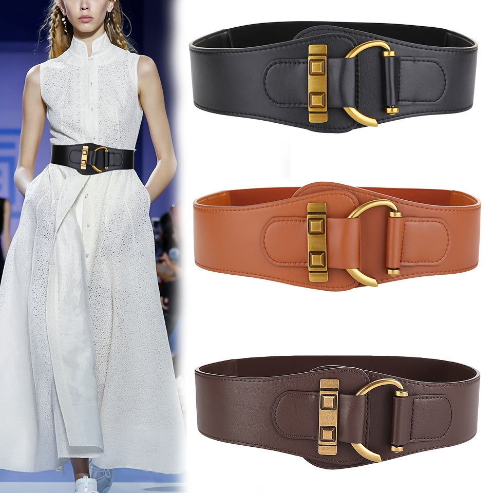 Add a touch of vintage charm to your outfits with this elastic wide waist belt. Made from faux leather with a metal buckle, this belt is adjustable to fit various sizes.