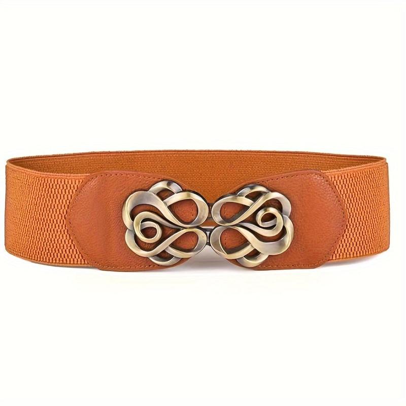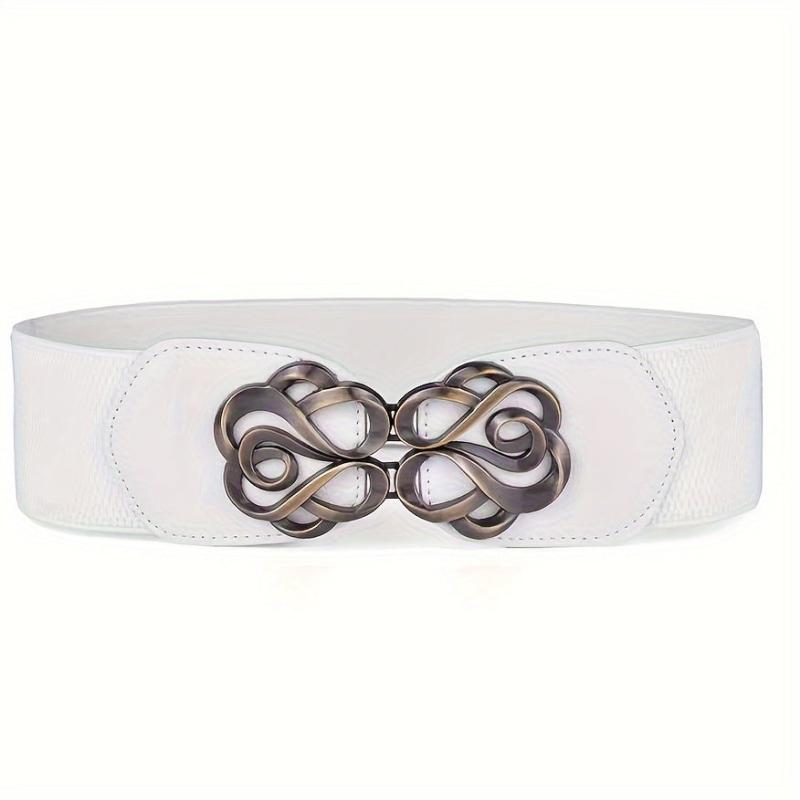 Upgrade your outfits with this versatile retro belt. The stretchy elastic material ensures a comfortable fit, while the metal buckle adds a touch of vintage charm. Perfect for cinching dresses or tops.