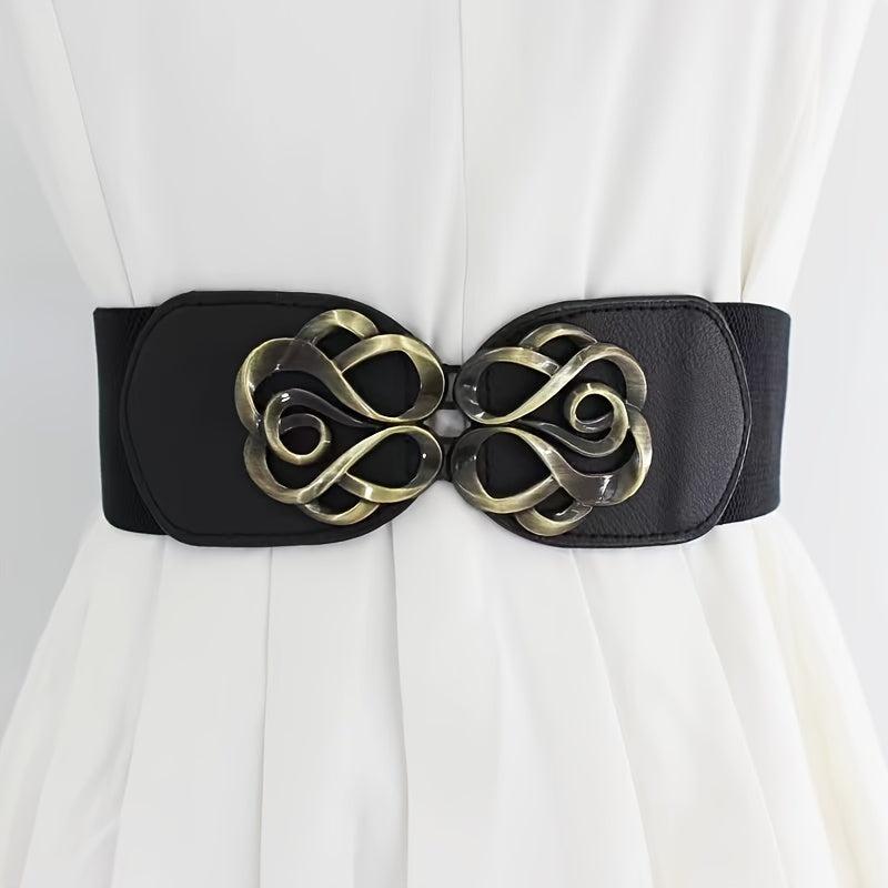 Vintage Style Stretch Elastic Waist Belt with Retro Metal Buckle