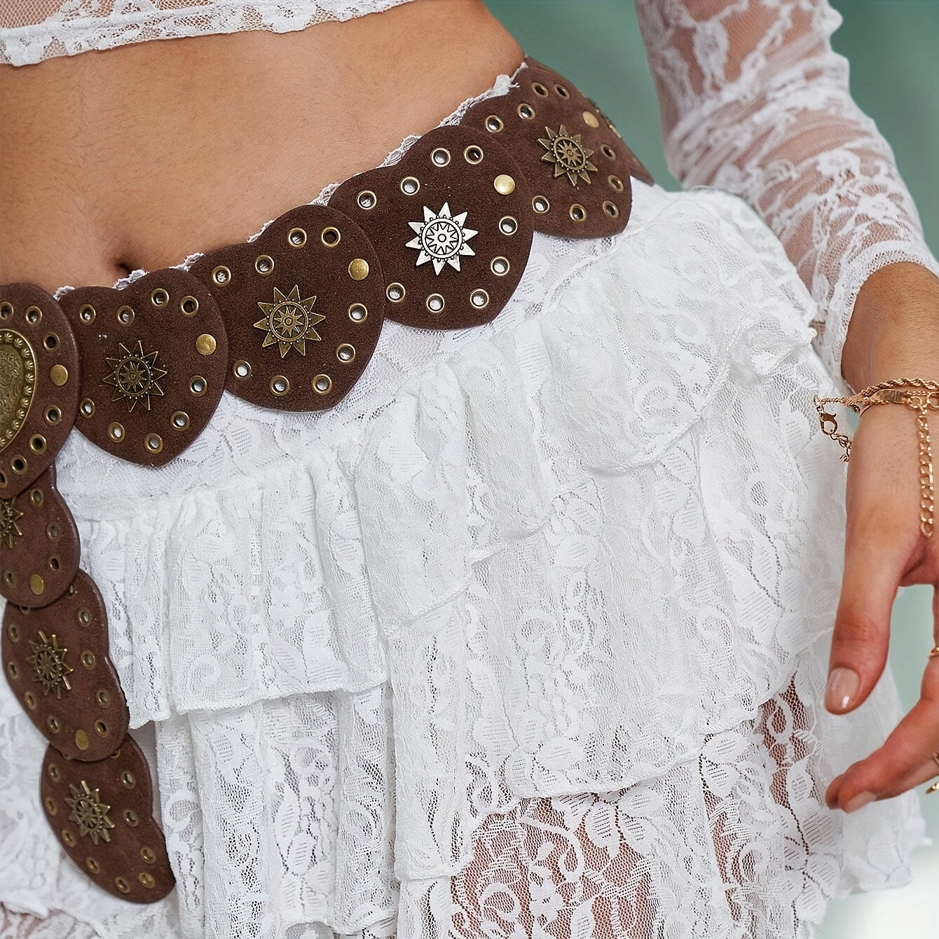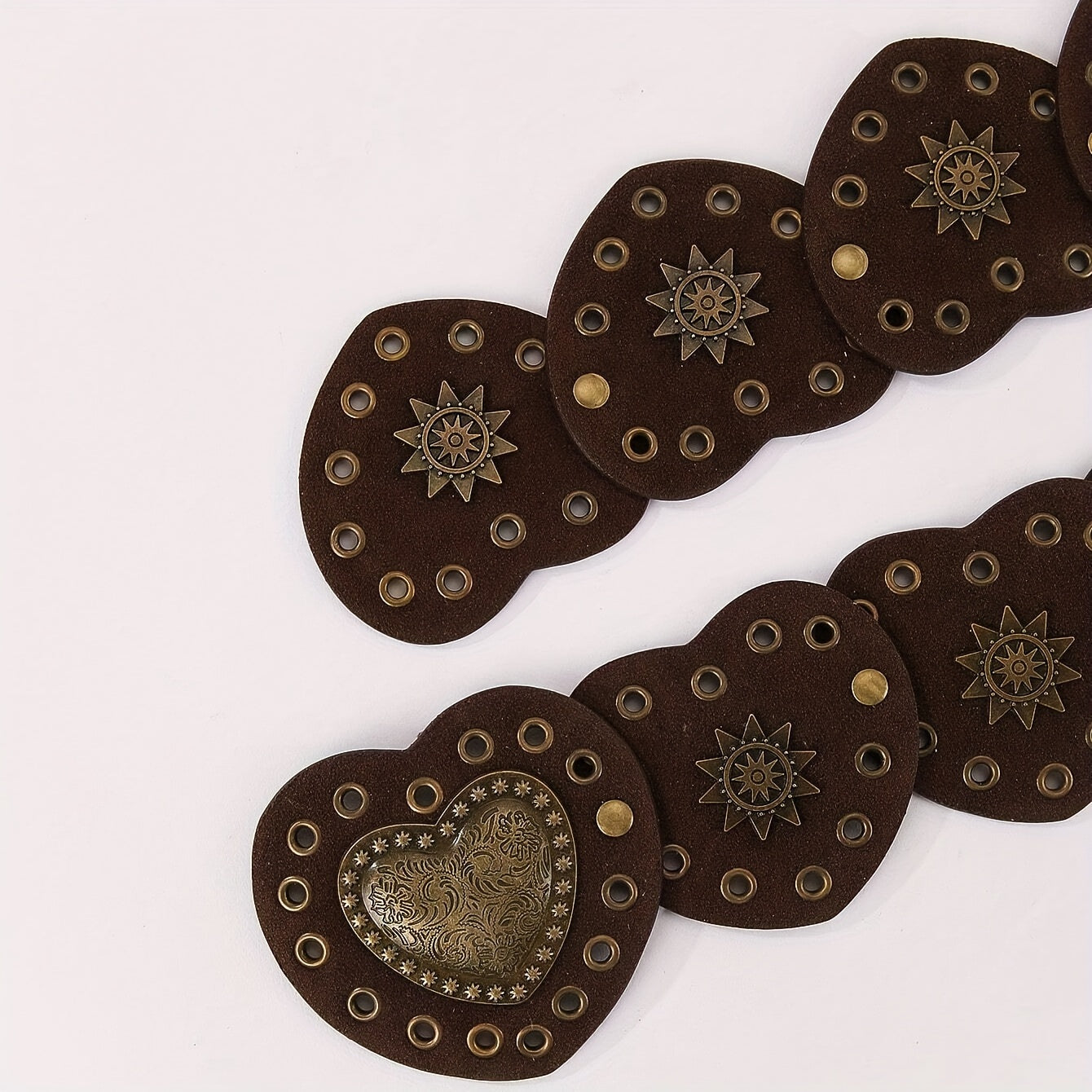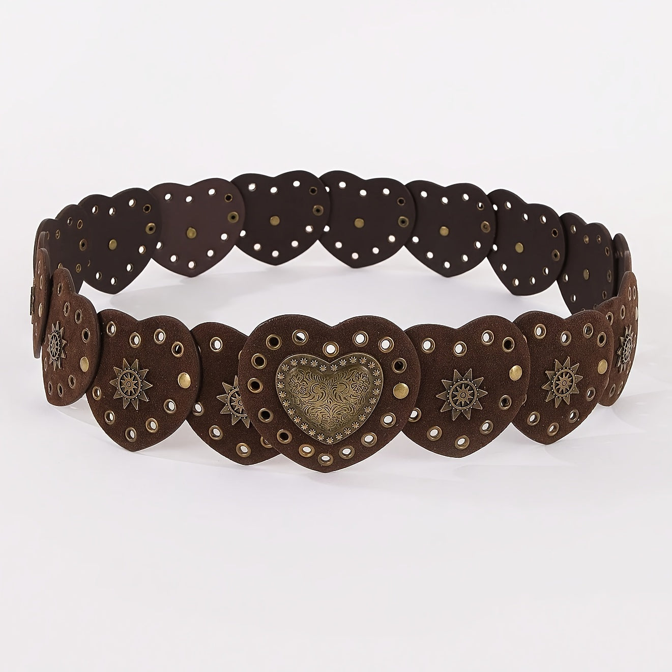This vintage belt features a Western tribal style with heart splicing, perfect for daily and weekend wear. Made of non-textile material.