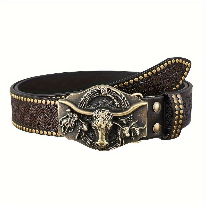 • Vintage golden yellow 3D long horn alloy bull head buckle