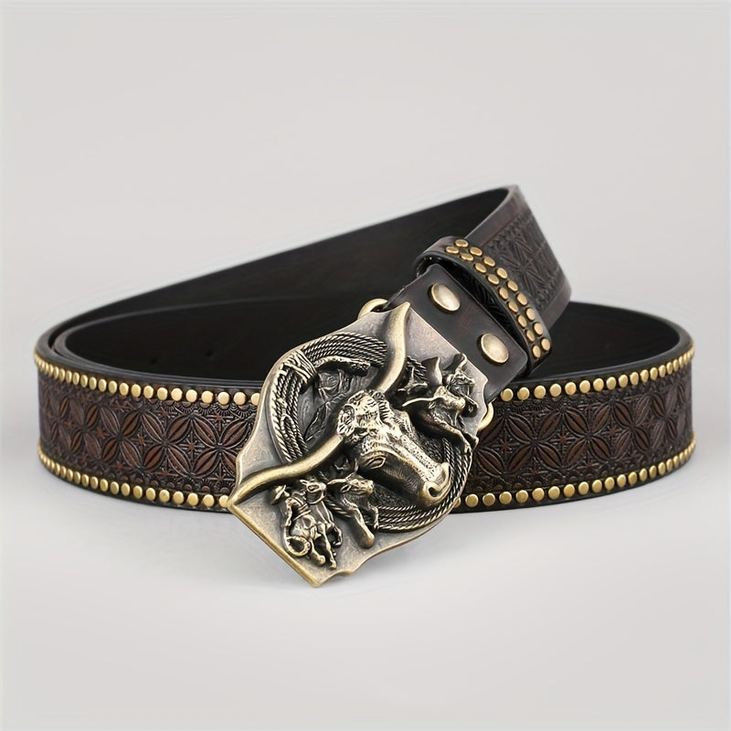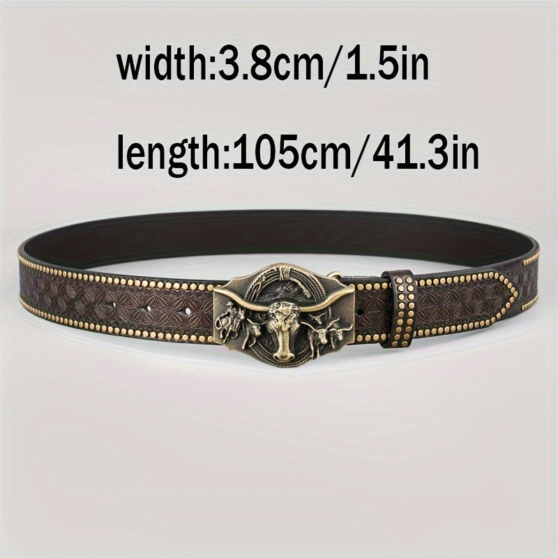 Vintage Yellow Bull Head Buckle Western Cowboy Belt Women's Vacation