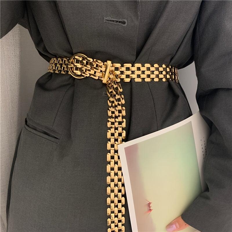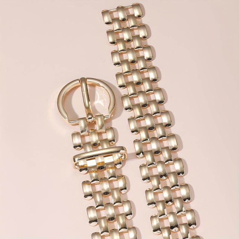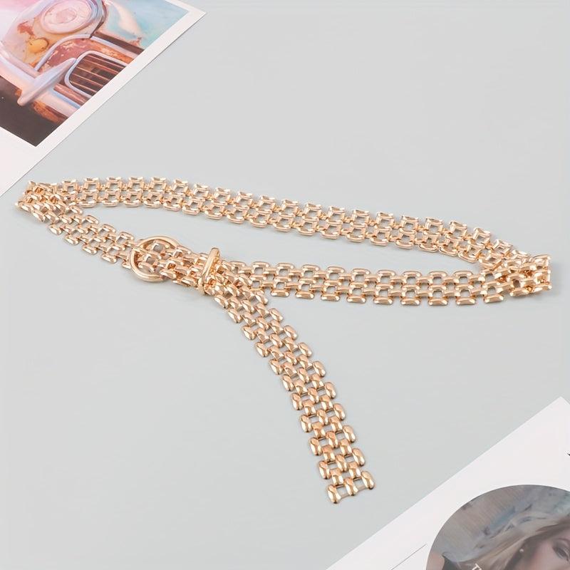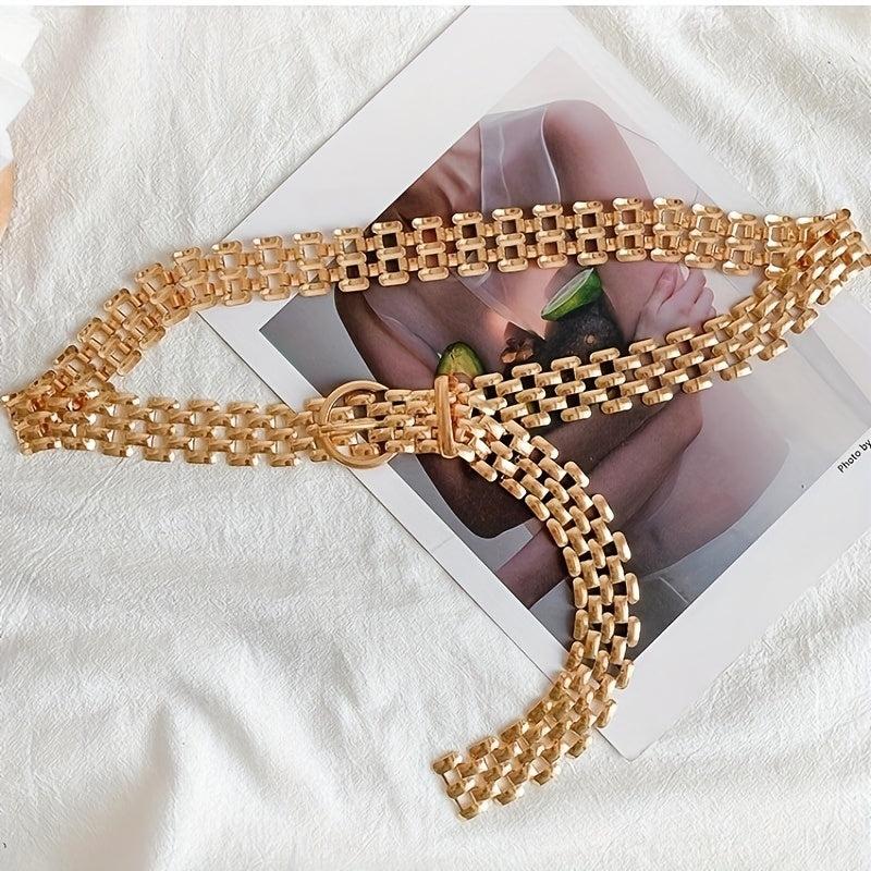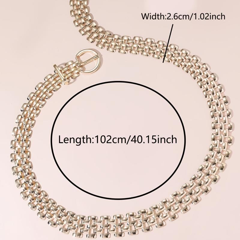 Add a touch of punk style to your outfit with this adjustable metallic chain belt featuring intricate cut out patterns. Ideal for casual wear, weddings, parties, and everyday use.