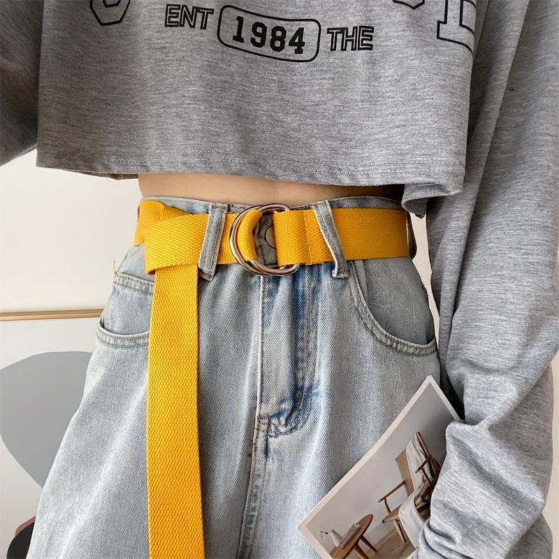 Upgrade your casual outfits with this stylish wide belt featuring a double loop buckle. Made from durable polyester, this waistband is perfect for daily commutes, evening dates, and casual outings.