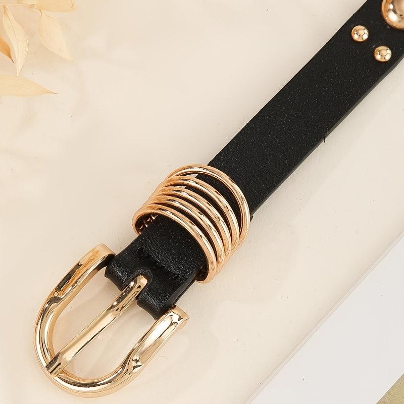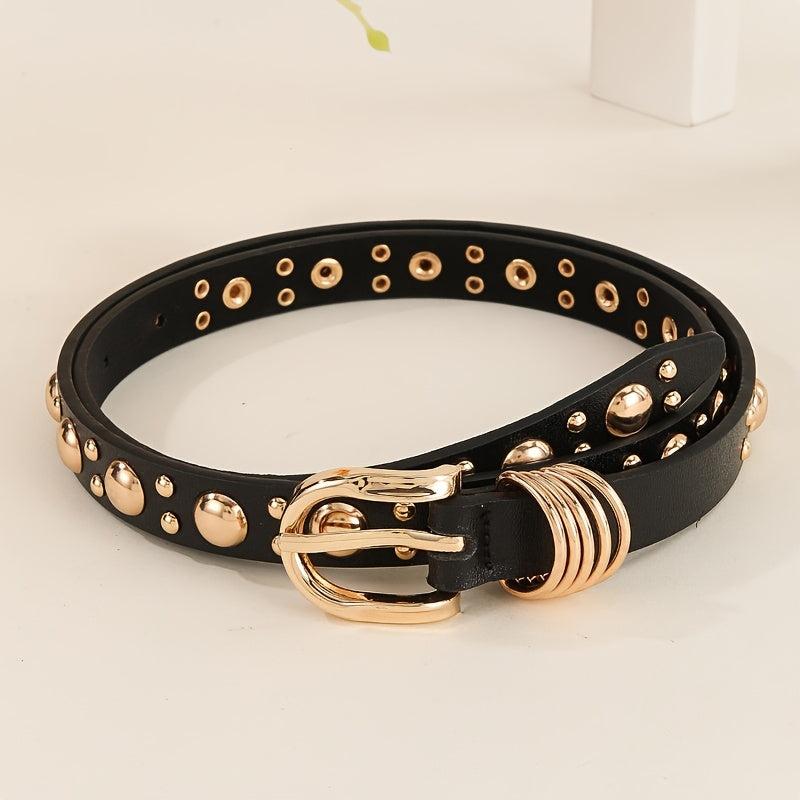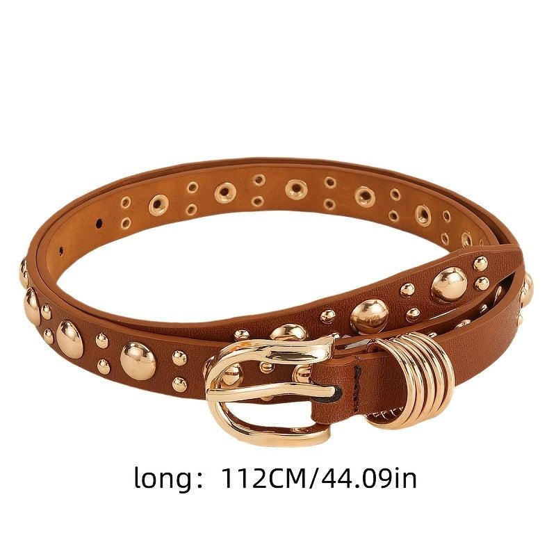 Elevate your style with this unique belt featuring mushroom nail inlays. Perfect for pairing with jeans for a chic and edgy look.