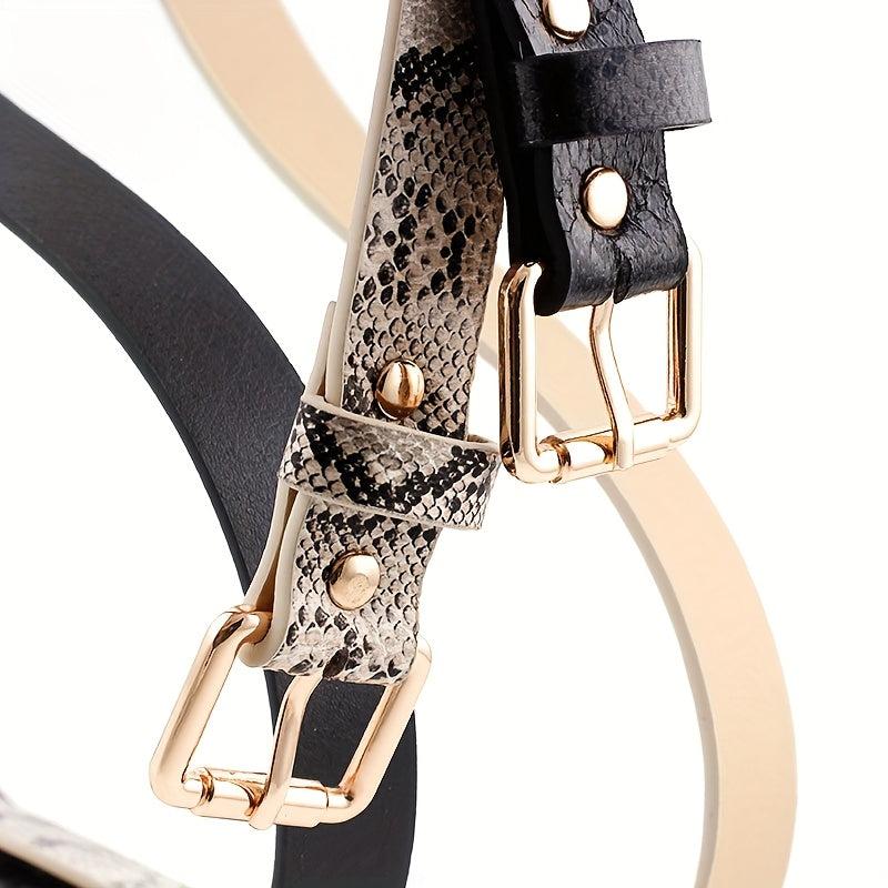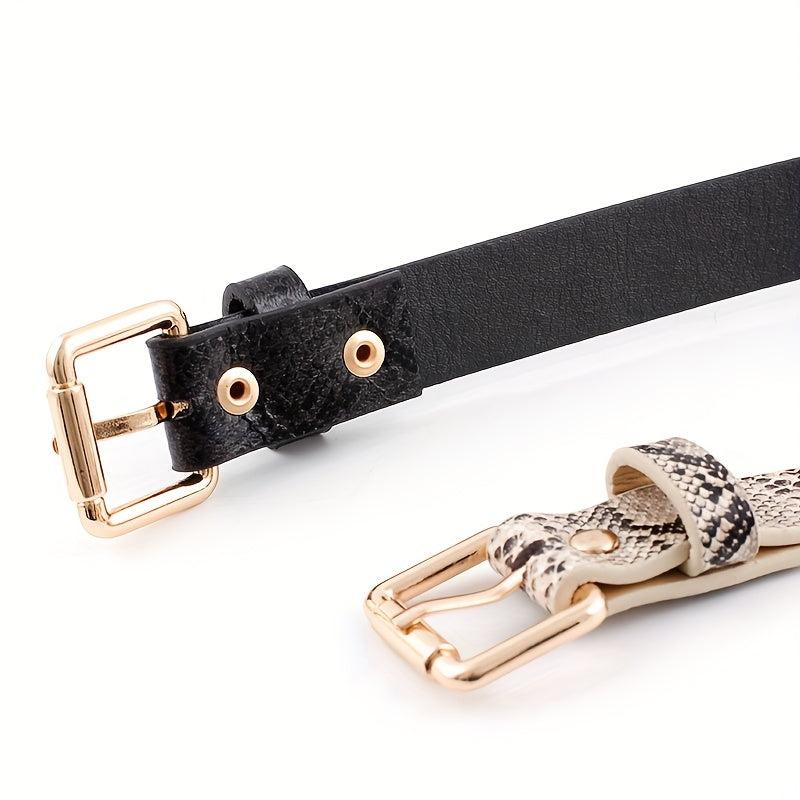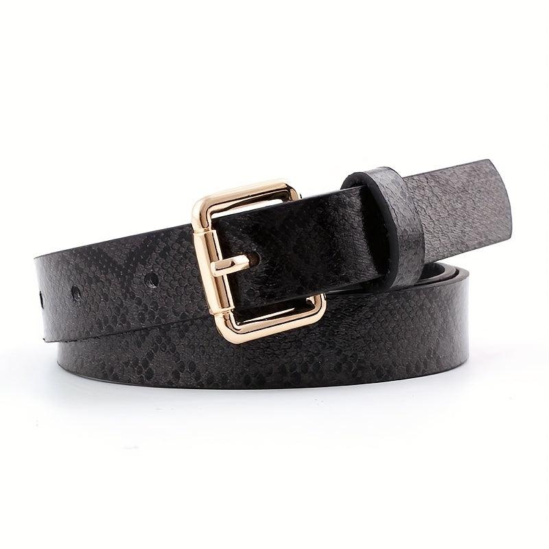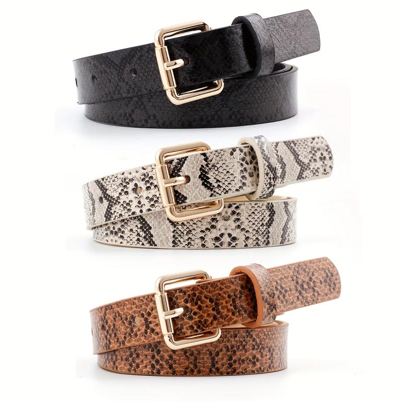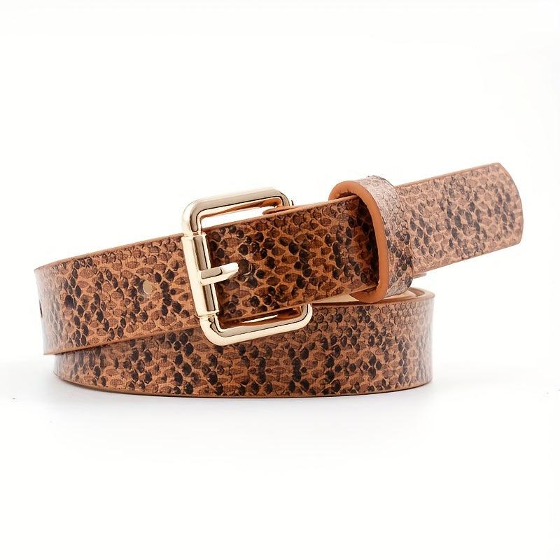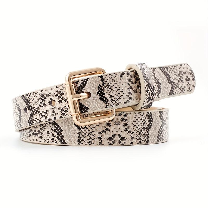 Women's Snake Print Leather Belt Vintage Style with Golden Buckle