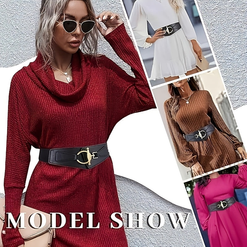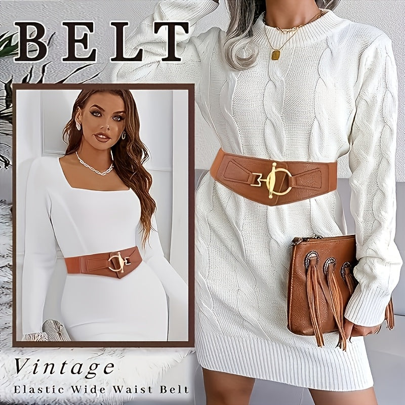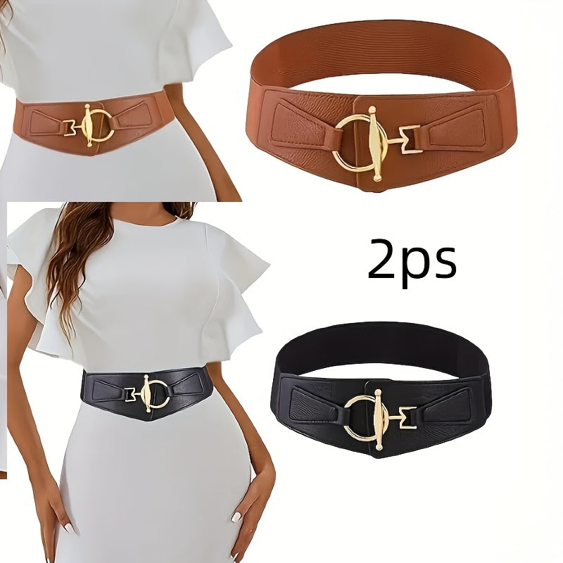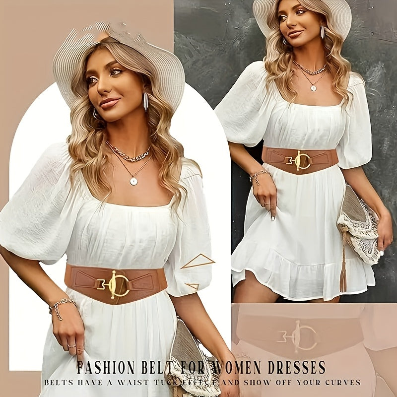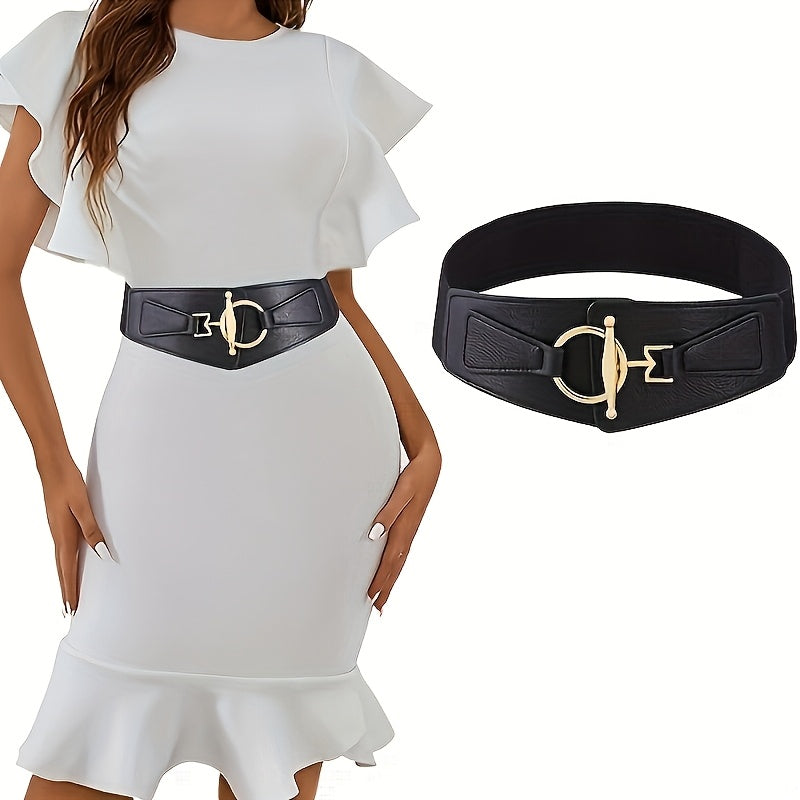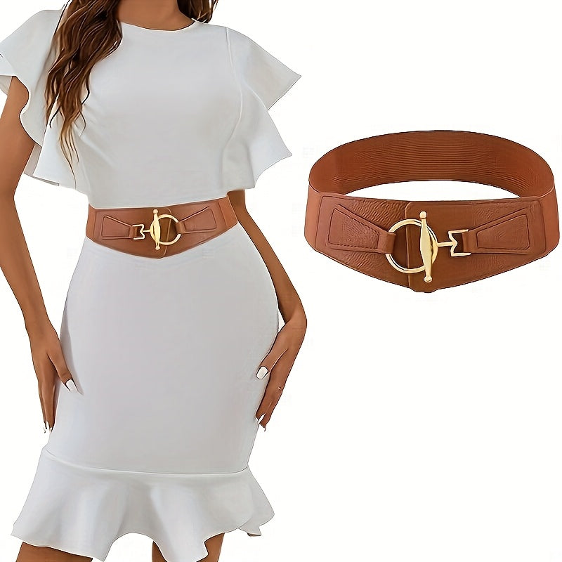 Add a touch of retro style to your outfits with this elastic belt. The golden O ring buckle adds a chic and glamorous finish. Perfect for pairing with dresses and accentuating your waist.