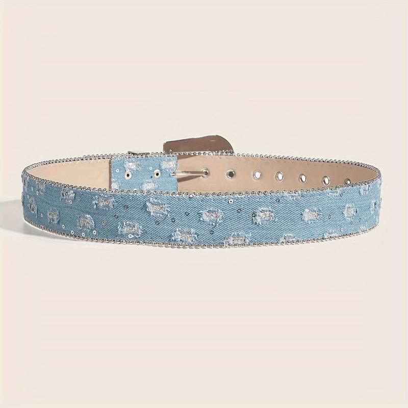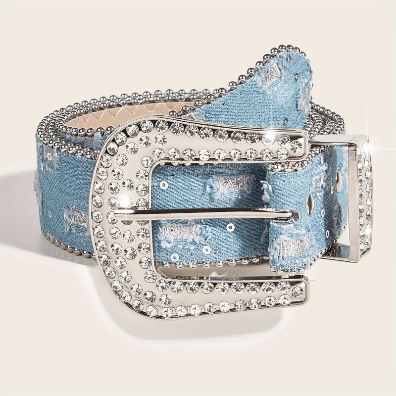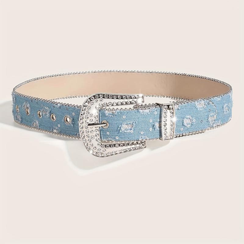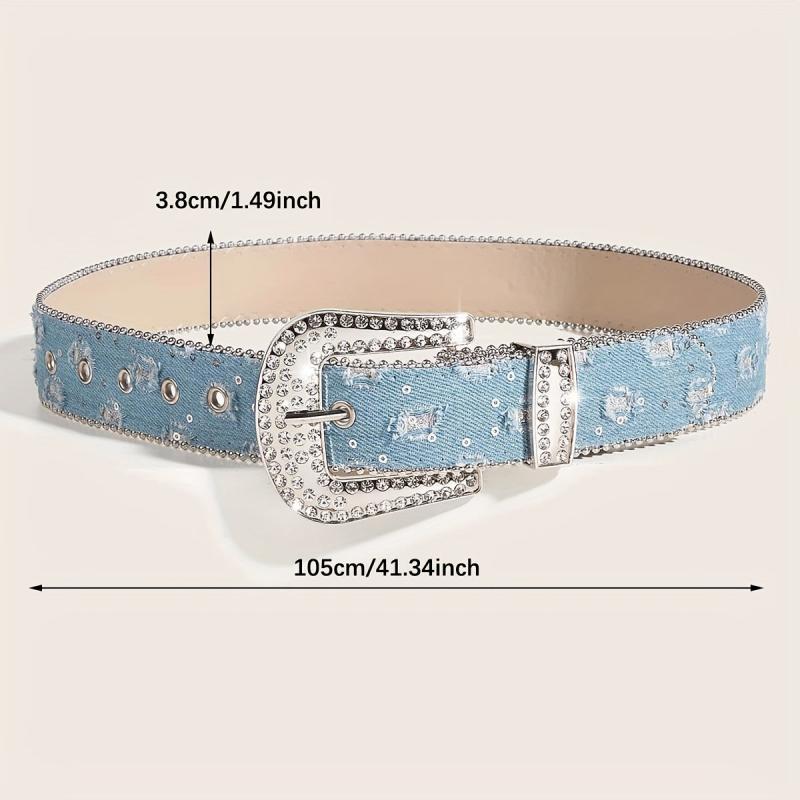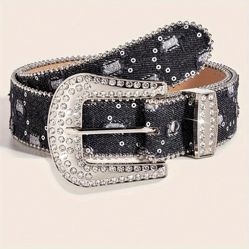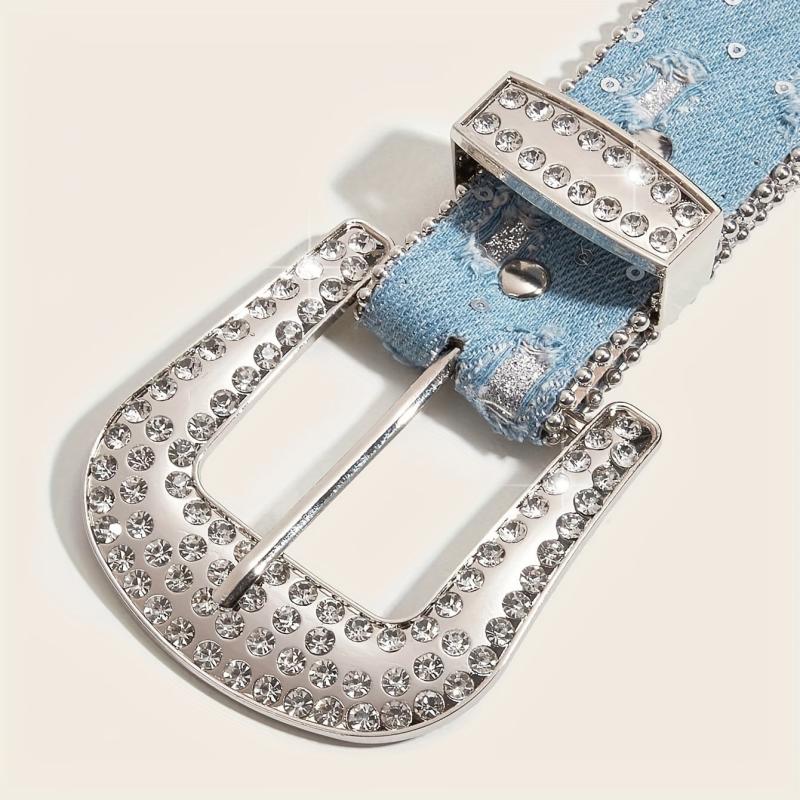 Sparkling belt with adjustable metal buckle, perfect for casual or evening outfits. Enhance your jeans and other attire with this versatile accessory.