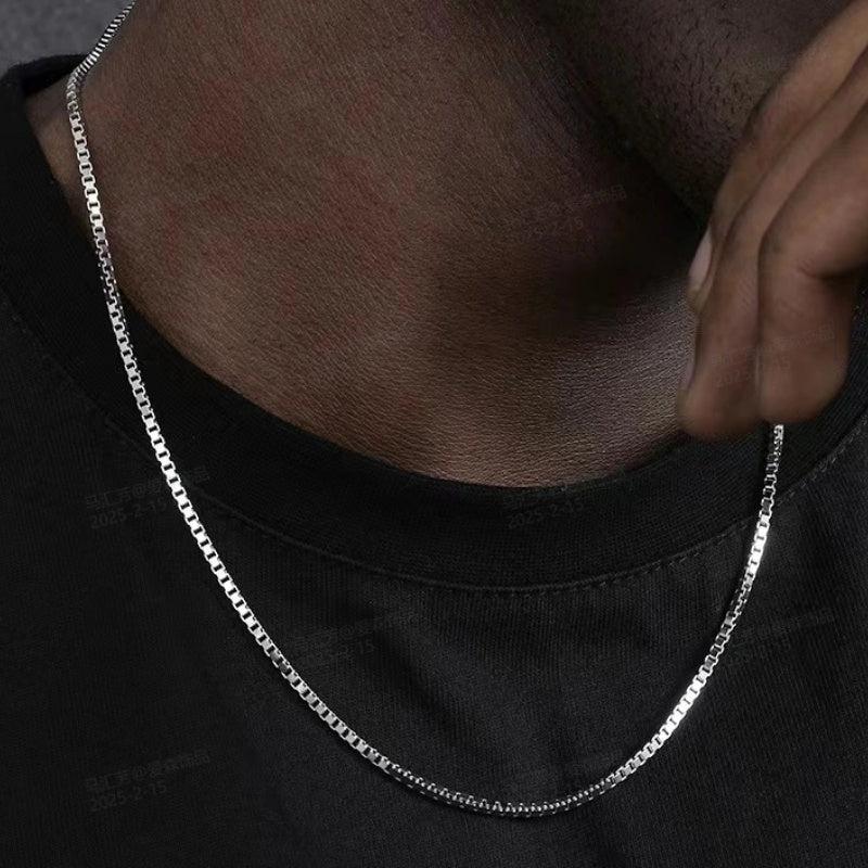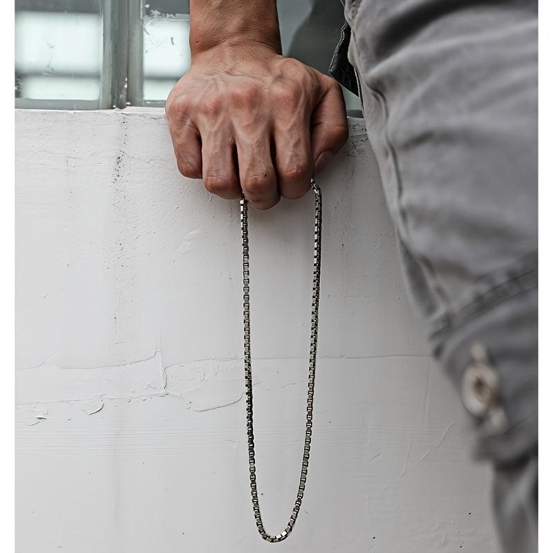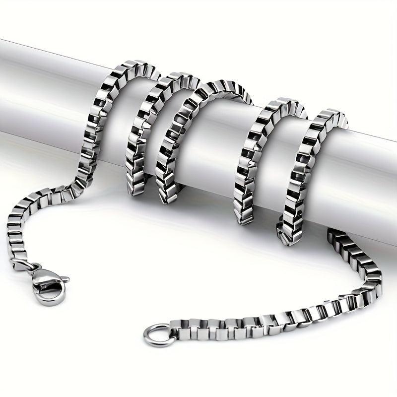 This stainless steel box chain necklace is perfect for parties, featuring a Gothic hip hop style. It is a durable and unisex accessory with a lobster claw clasp.