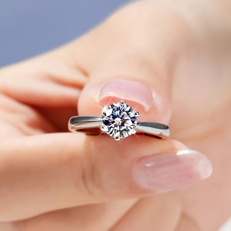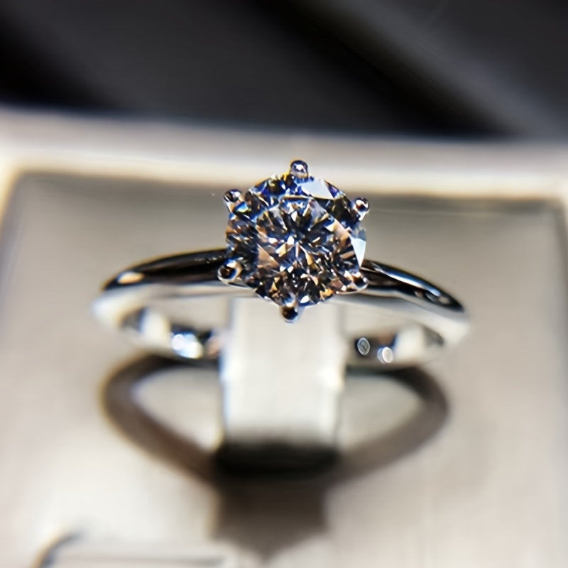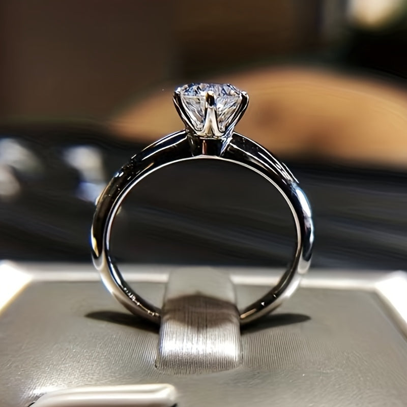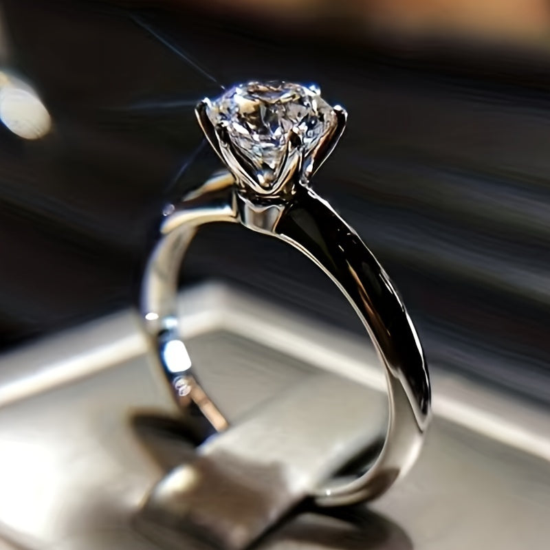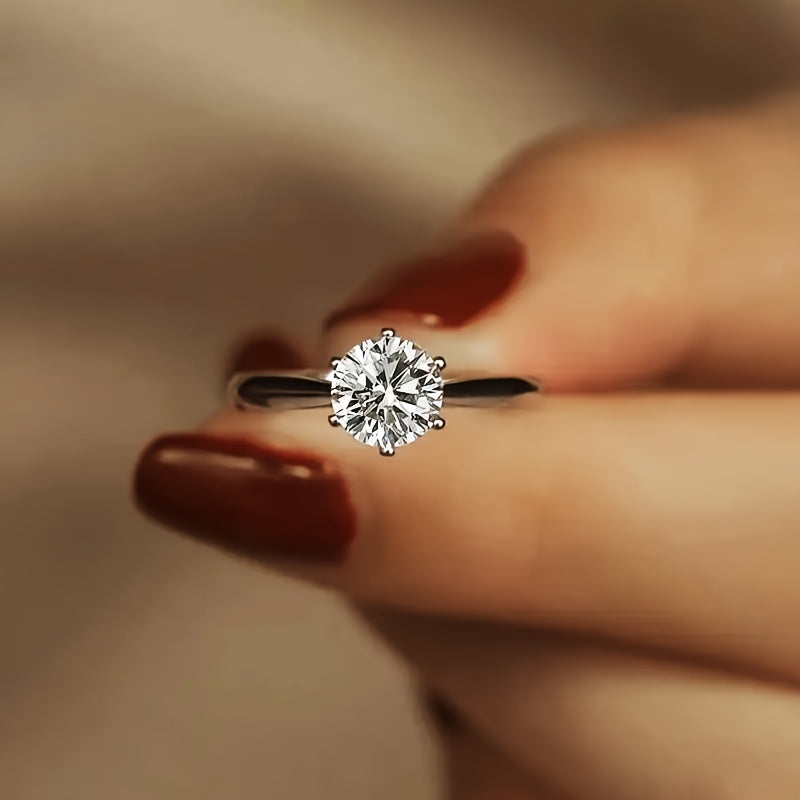 This classic ring features a 2 carat faux solitaire stone, perfect for engagement or weddings. Hypoallergenic and high quality silvery finish.