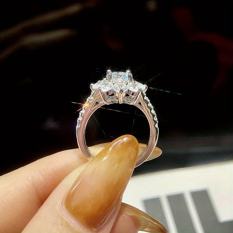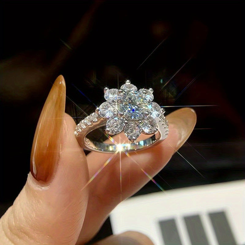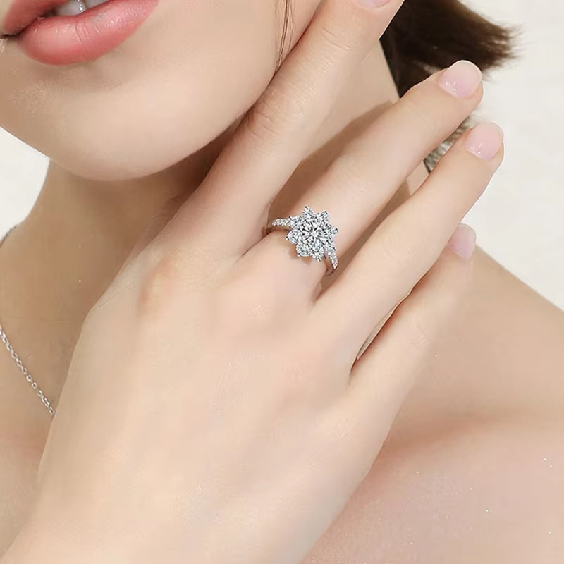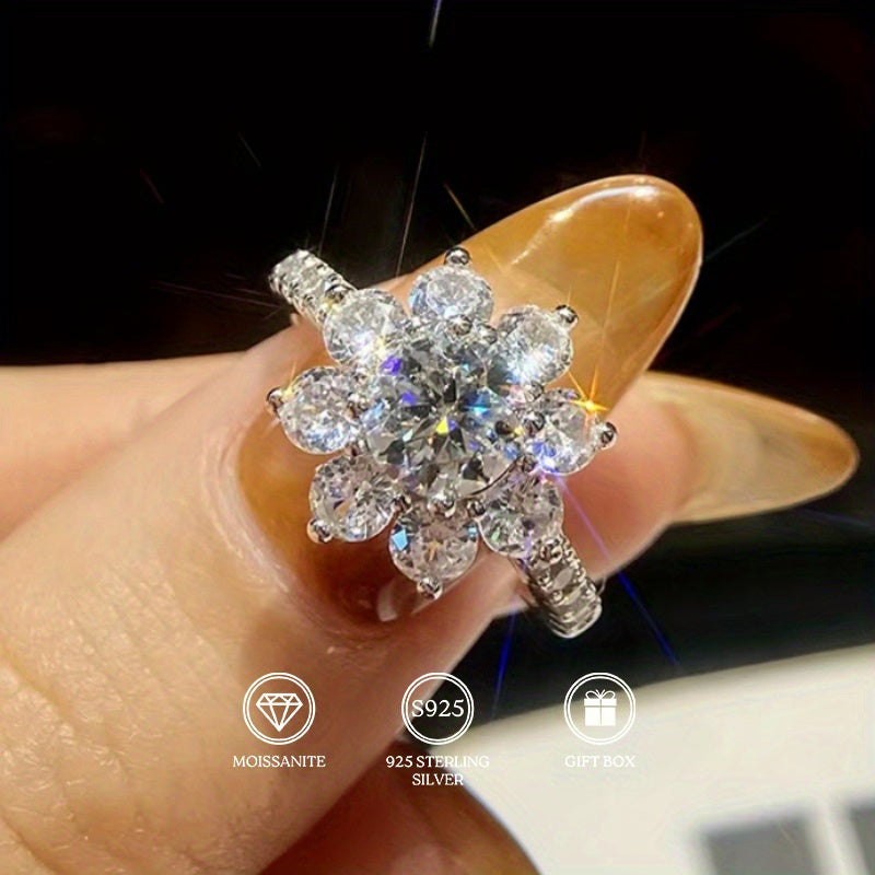 This stunning 925 silver ring features a 1-carat 4G moissanite stone, symbolizing the beauty and dedication of the sunflower, making it a perfect romantic gift for your loved one.