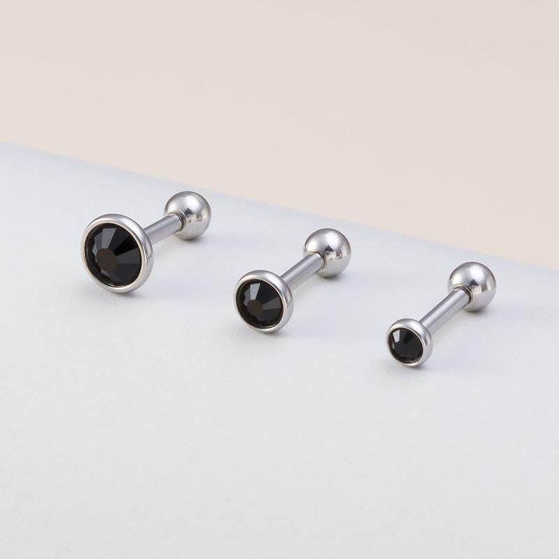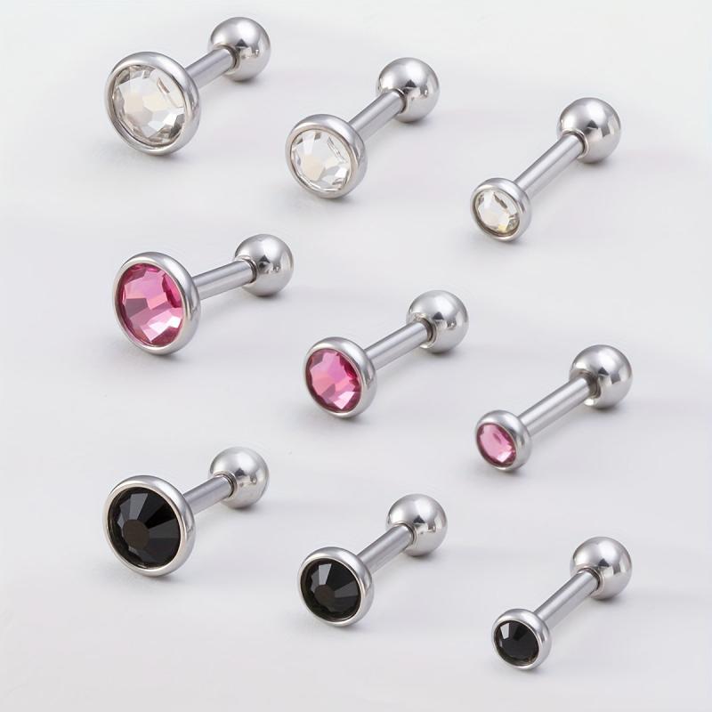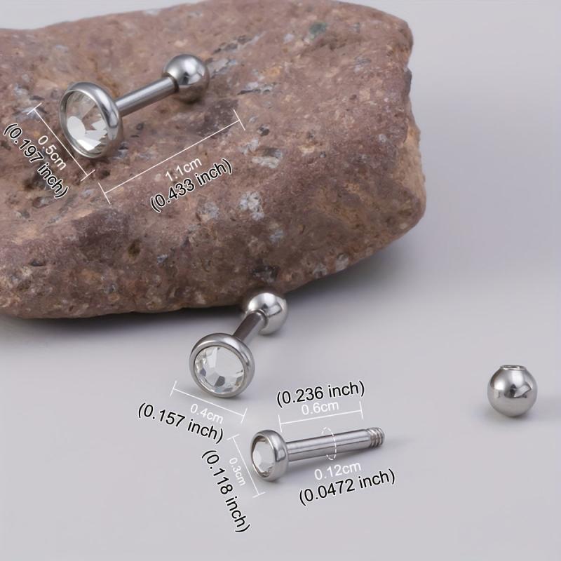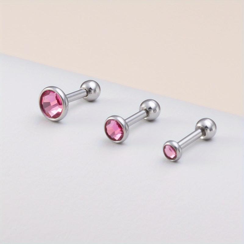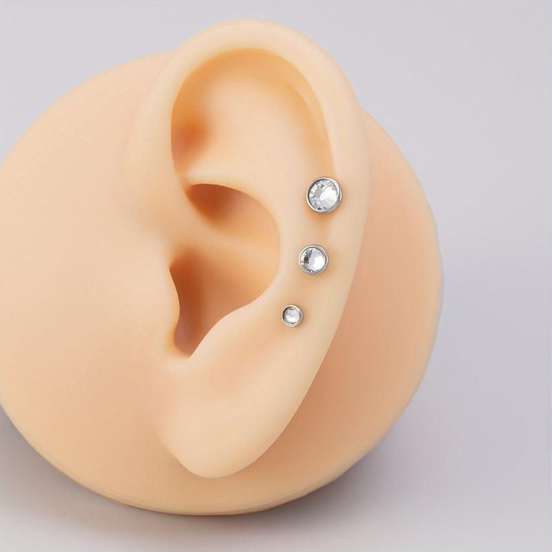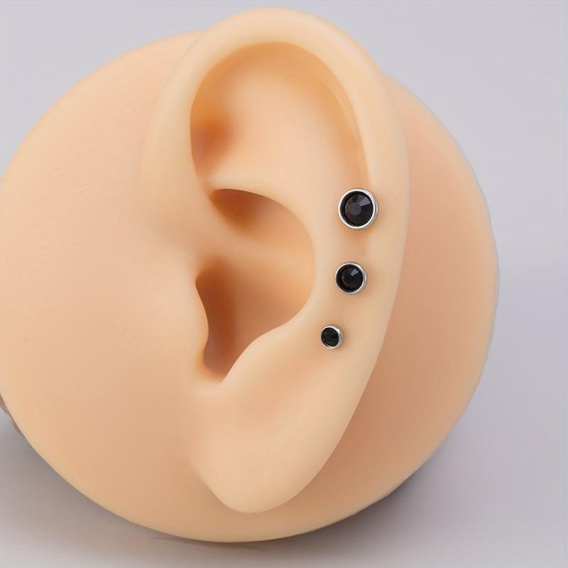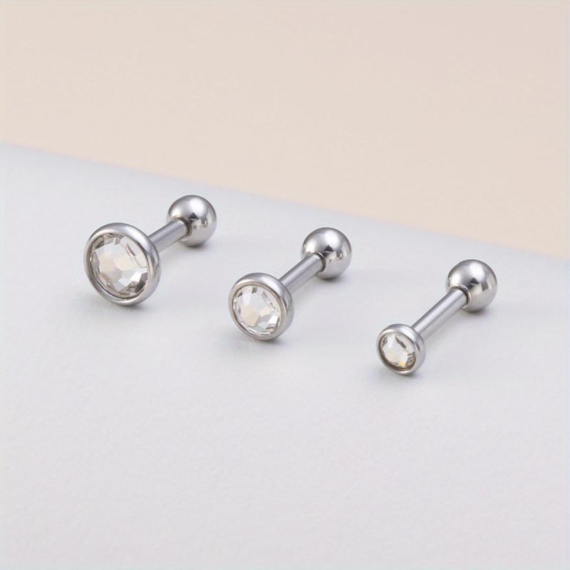 Set of 3 crystal stud earrings made of stainless steel, suitable for women and girls. Available in 3mm, 4mm, and 5mm sizes.