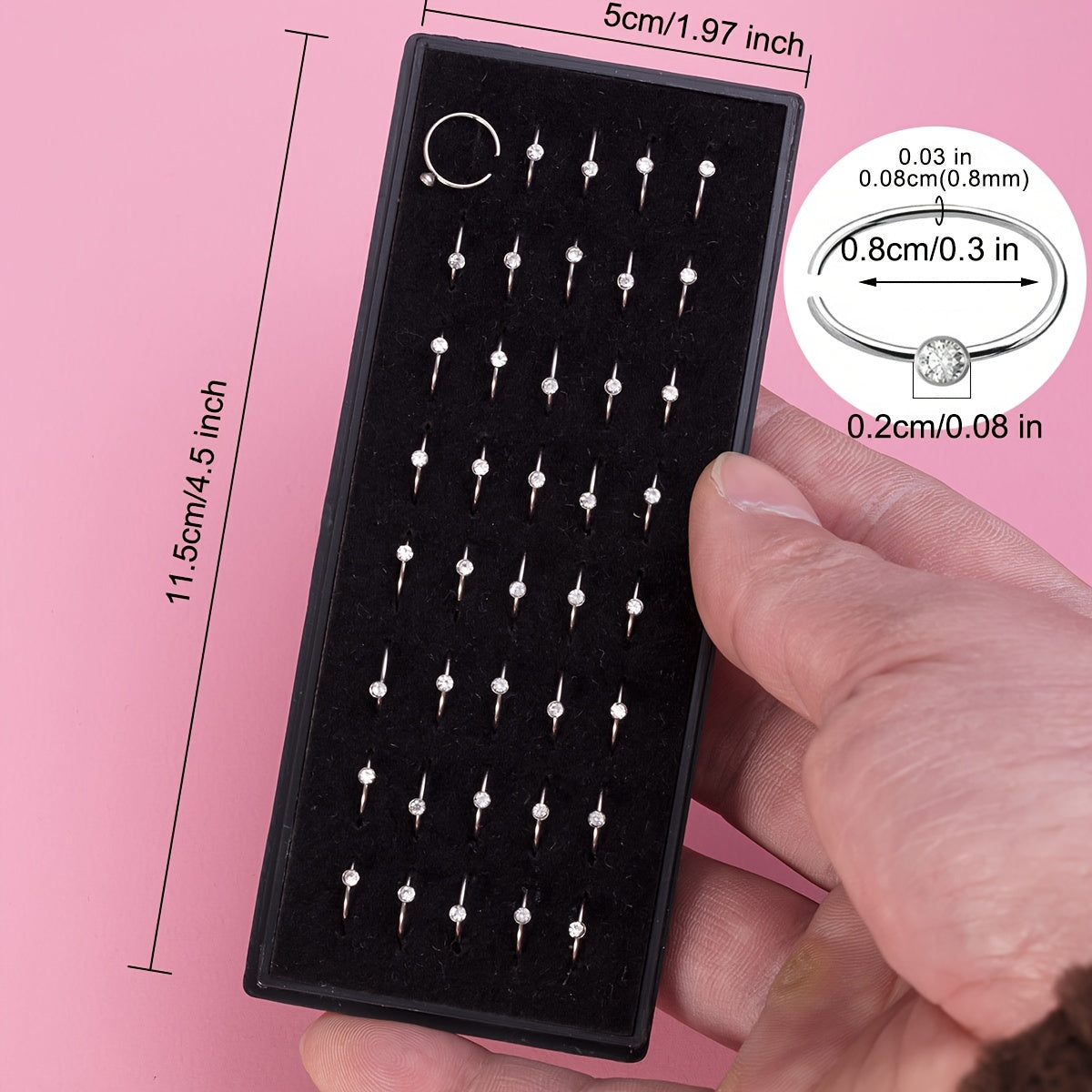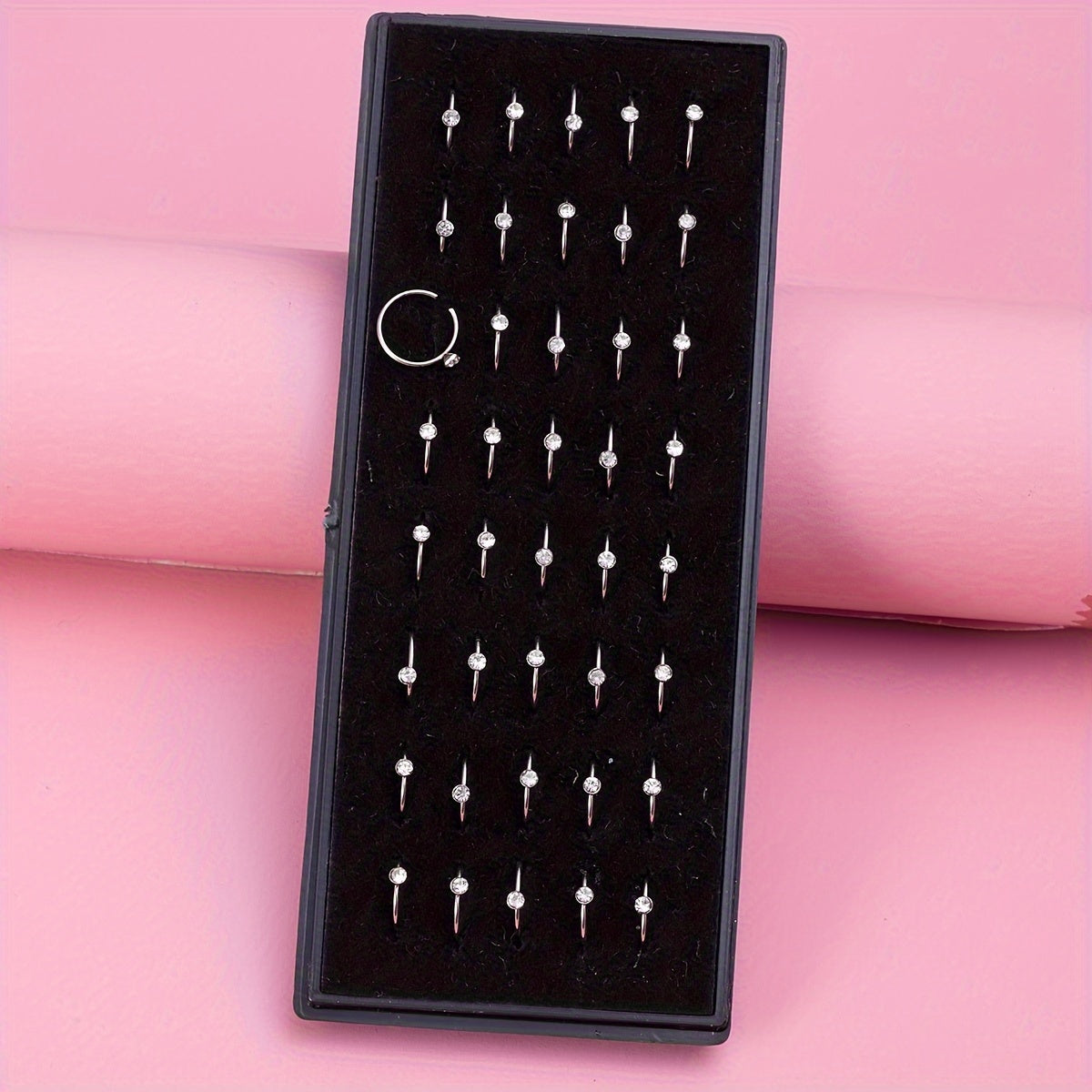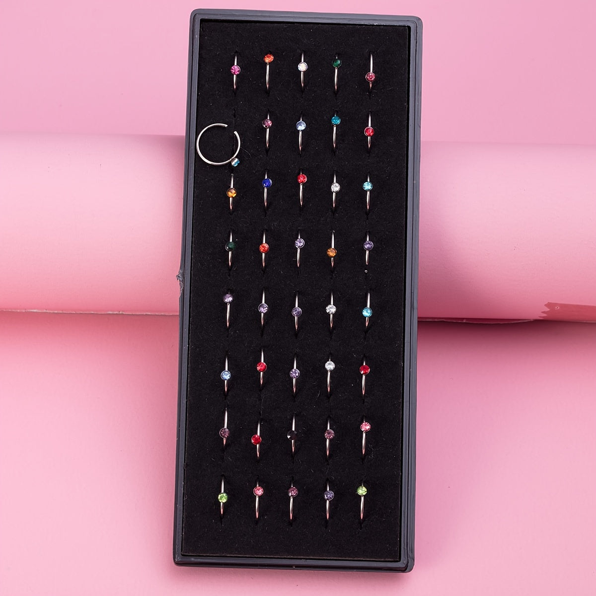 Accessorize your nose with this set of 40 rhinestone nose rings made of stainless steel. Each nose hoop ring measures 8mm and can also be worn as cartilage, tragus, or daith earring jewelry.