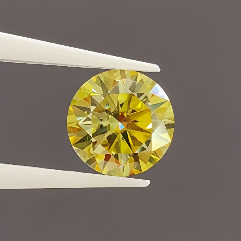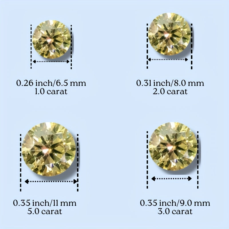 This set includes 5 loose yellow moissanite gemstones with round brilliant cut. The stones are D color, VVS1 clarity, and have an excellent cut, perfect for creating stunning jewelry pieces.