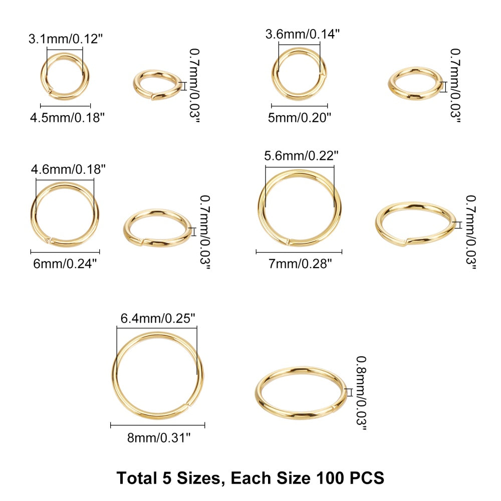 • Contains 500 pieces of brass open jump rings in 5 styles