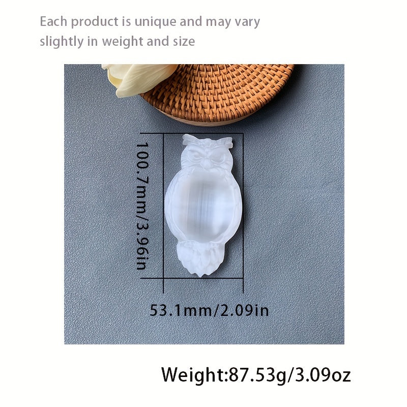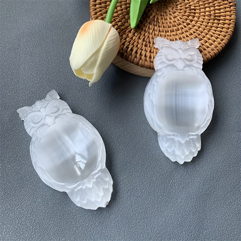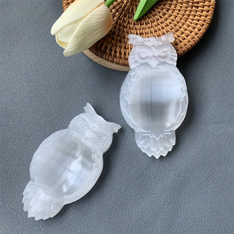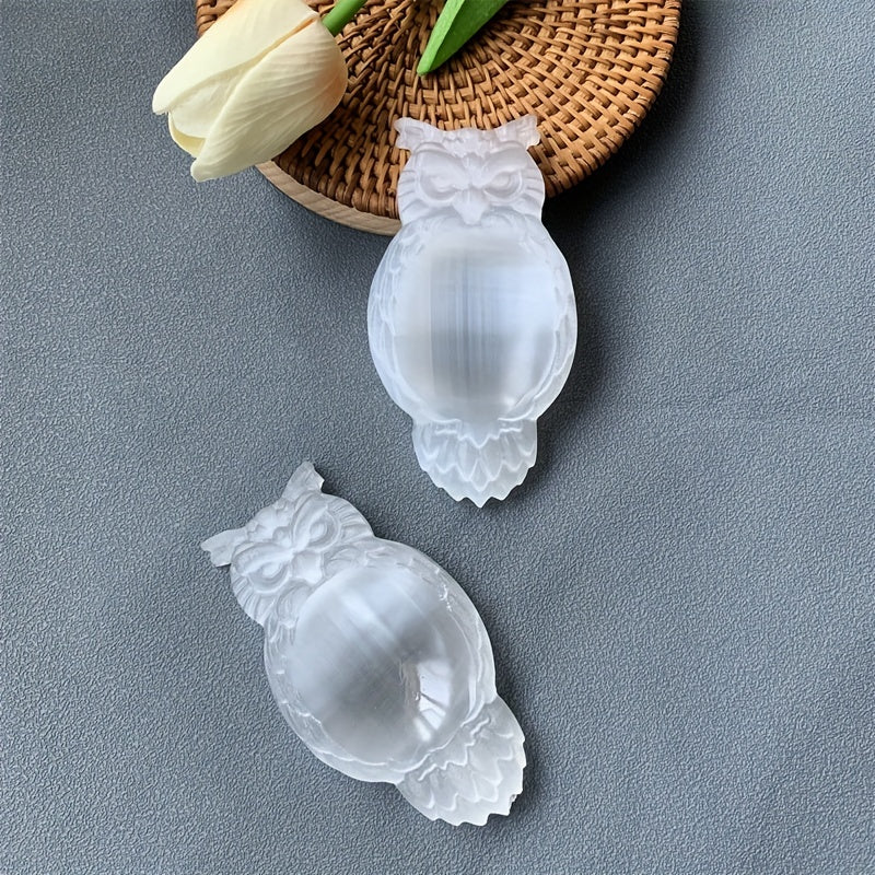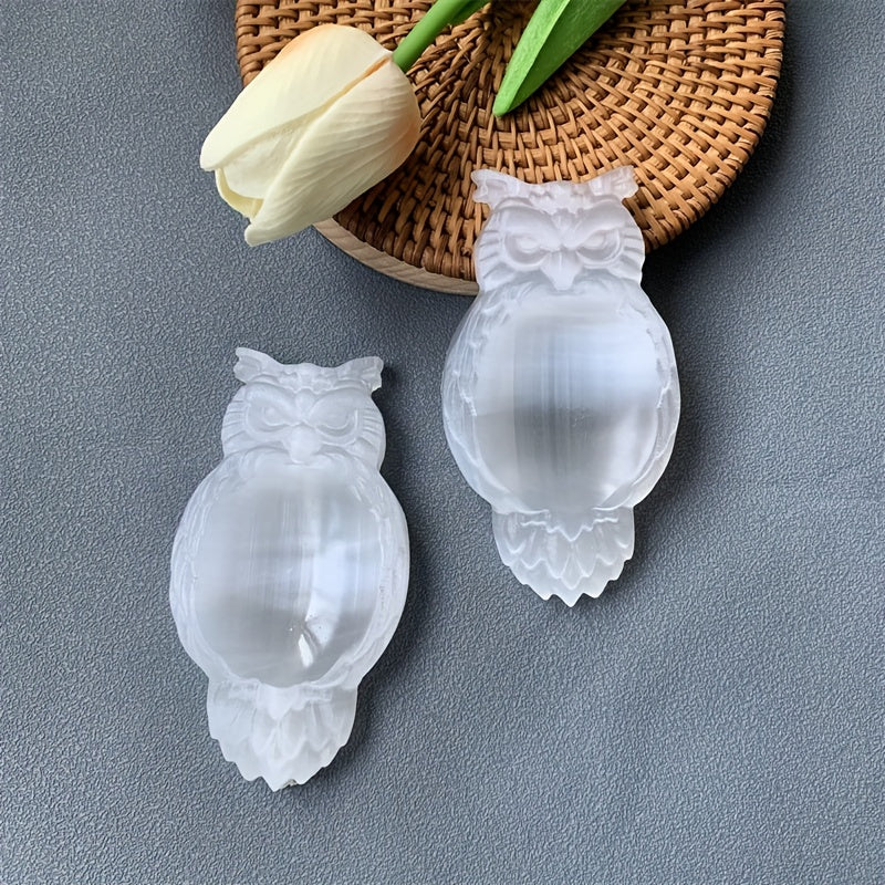 Adorn your space with this beautiful 64MM Selenite Owl Carving, handcrafted for healing and decor purposes. Selenite is known for its cleansing and protective properties.