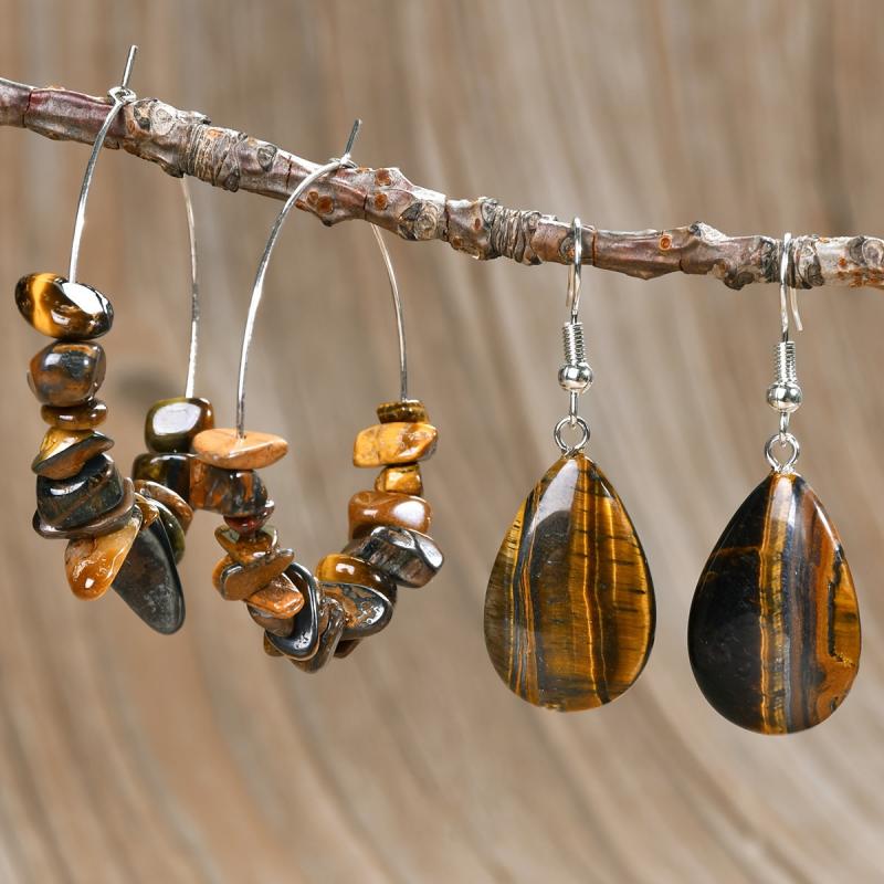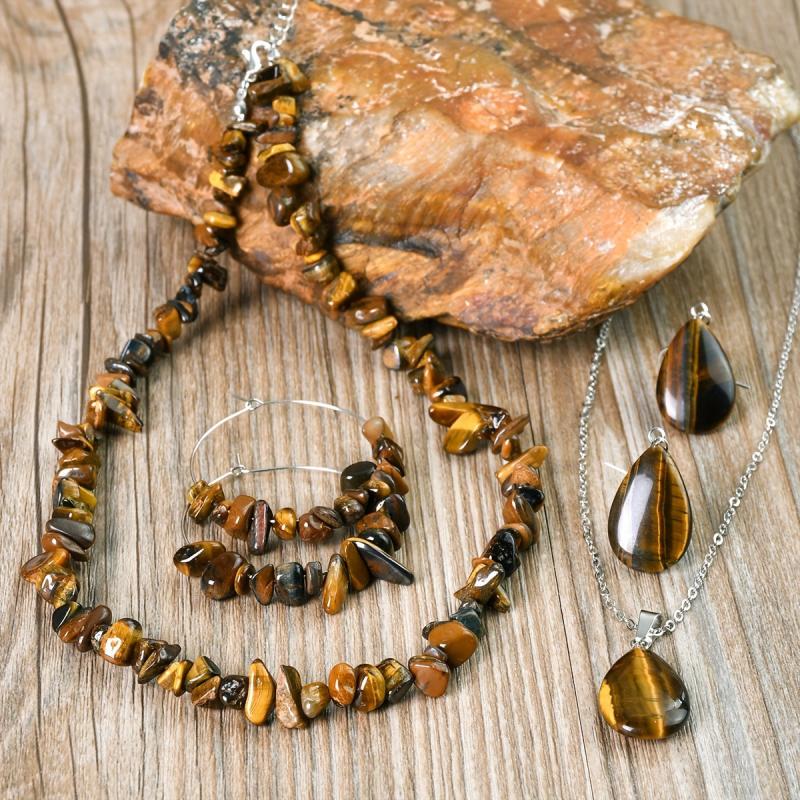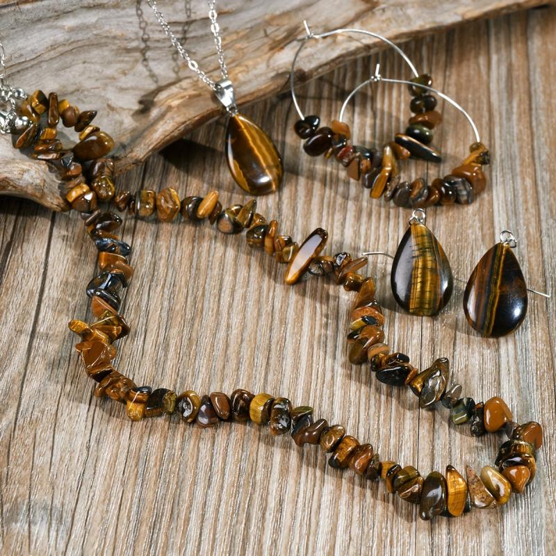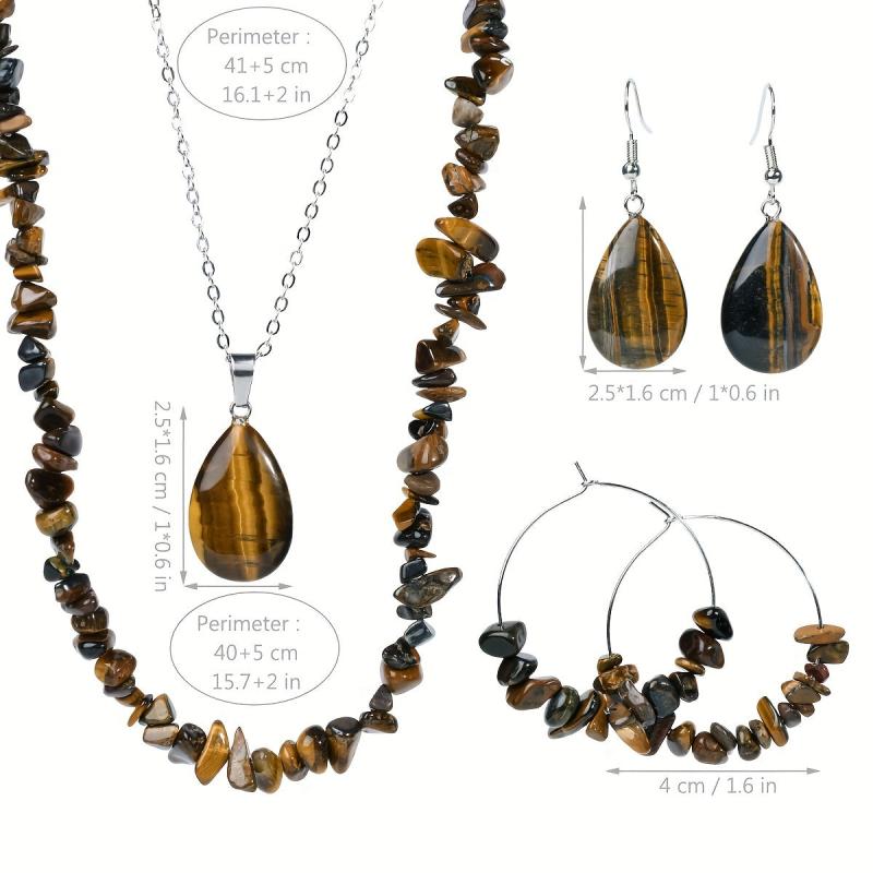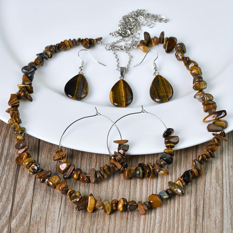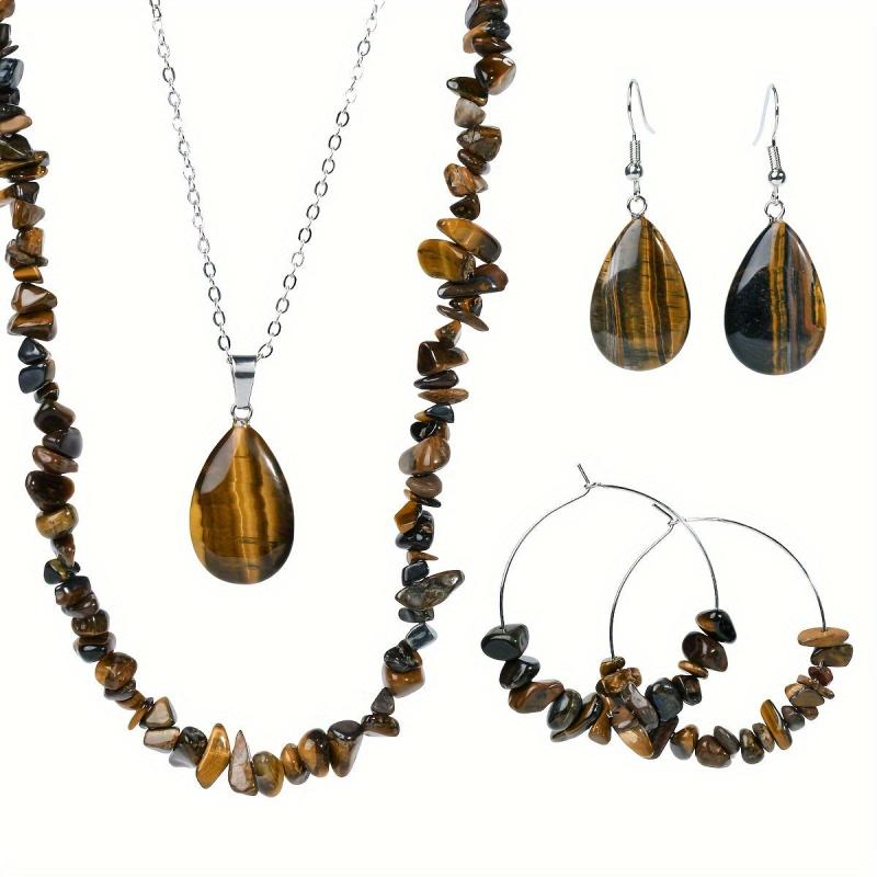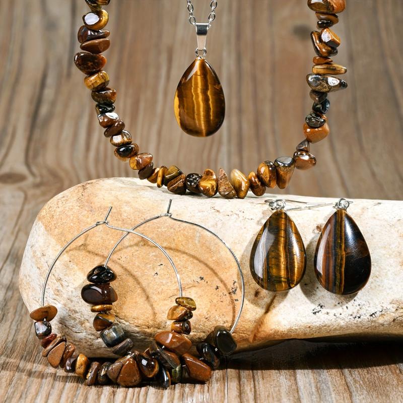 Elevate your style with this vintage natural Tiger's Eye stone jewelry set. Perfect for autumn and winter, this versatile accessory adds a touch of elegance to any outfit.