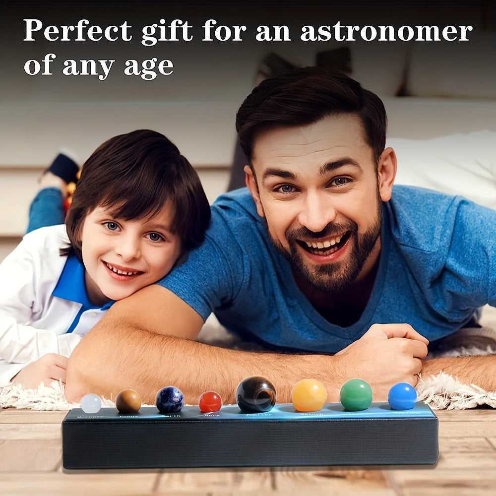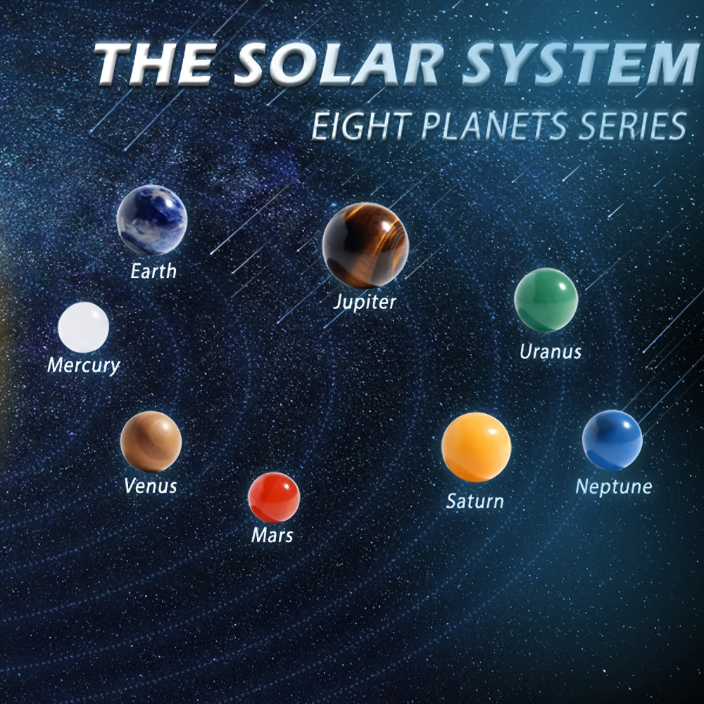 Bring the solar system to your desk with this set of 8 natural gemstone planets. Ideal for home or office decorations, makes a creative gift for kids, men, and women.
