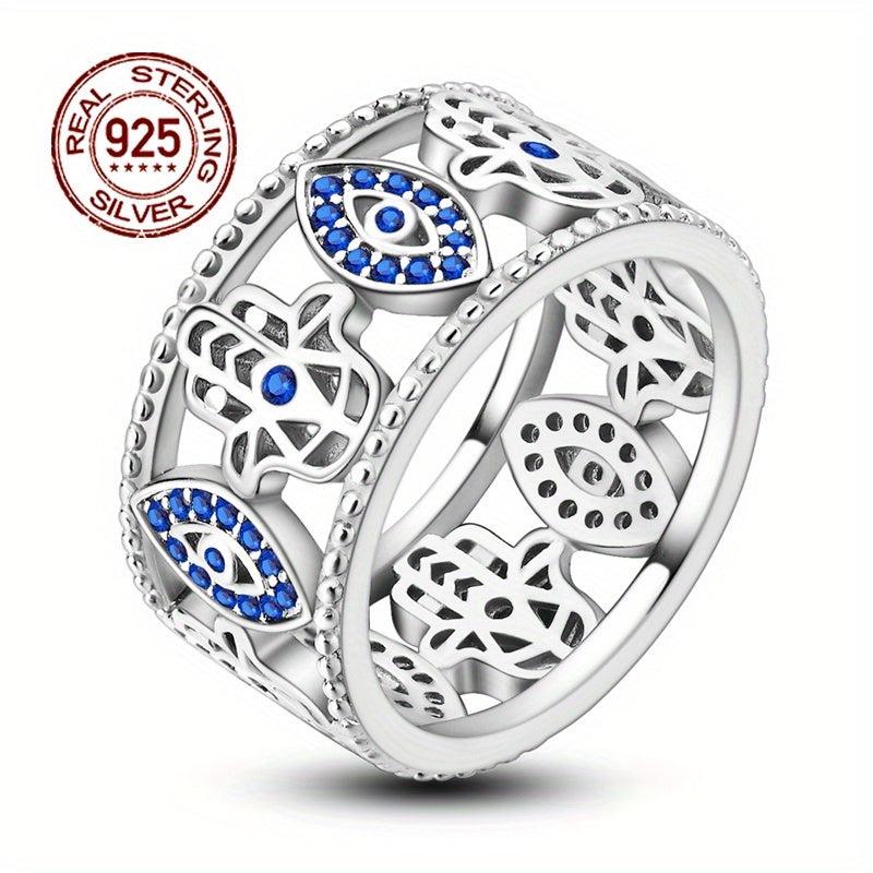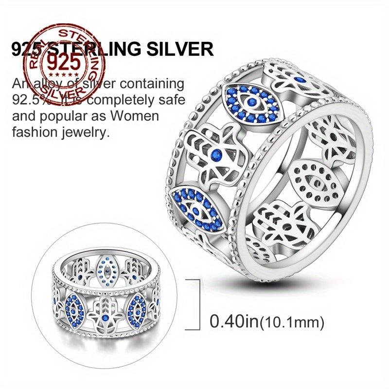 Get this stunning 925 sterling silver ring featuring an eye and palm design with sparkling cubic zirconia. Perfect for weddings, parties, birthdays, and Christmas.