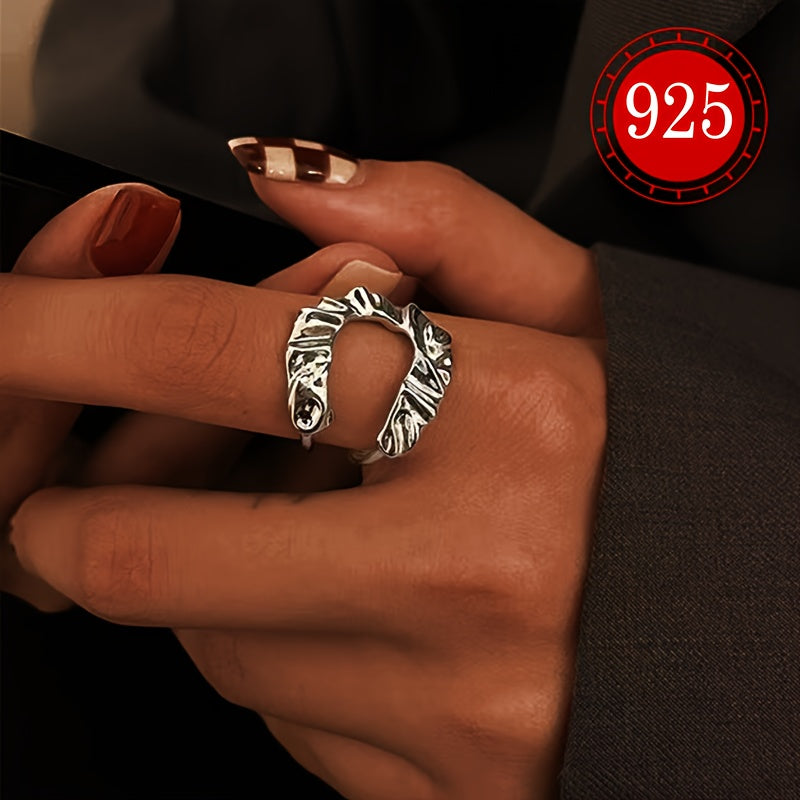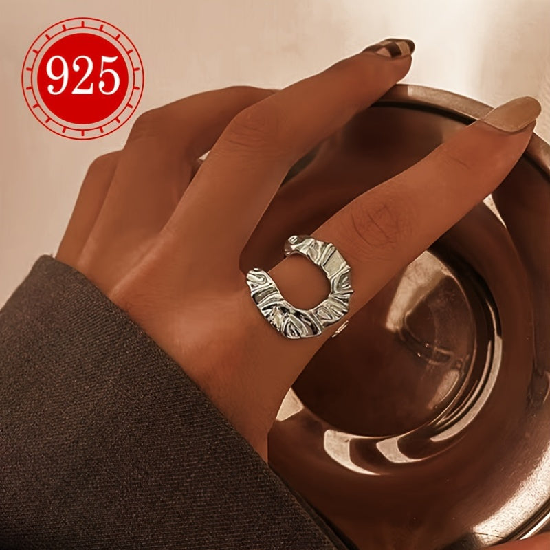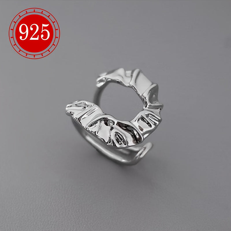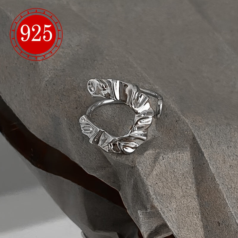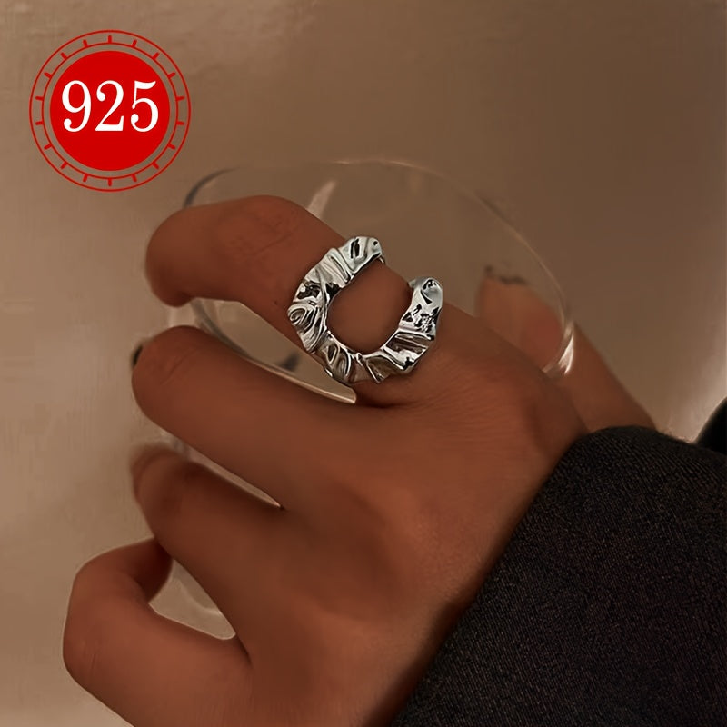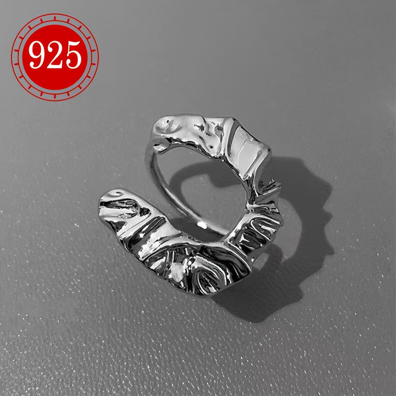 This minimalist and stylish geometric ring is made of hypoallergenic 925 silver, suitable for index and pinky fingers. It features a u-shaped pleated design.