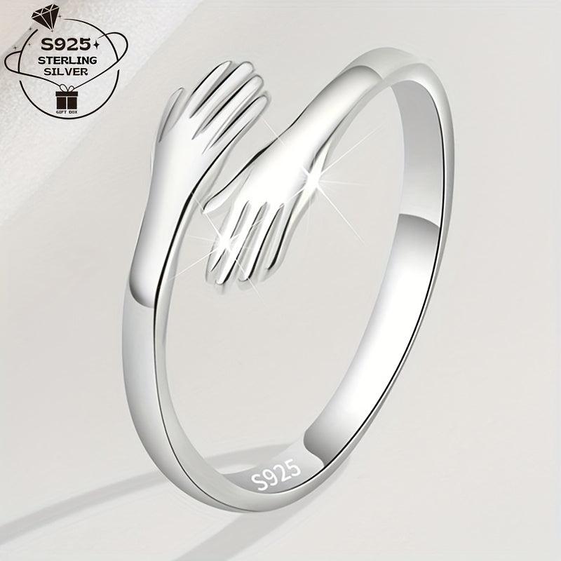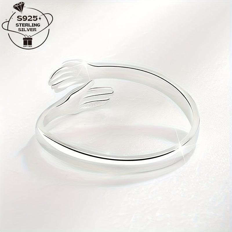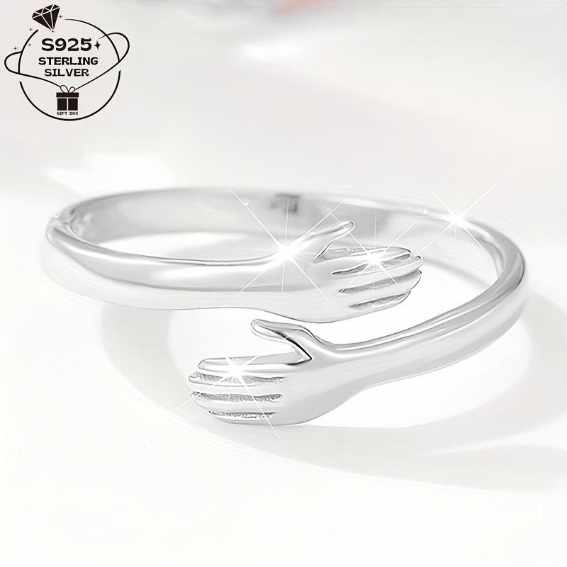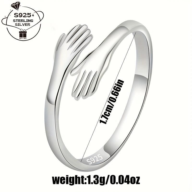 This 925 silver ring features a love embrace design, making it perfect for daily wear, weddings, parties, and graduation season. It's a great gift option for birthdays and special occasions.