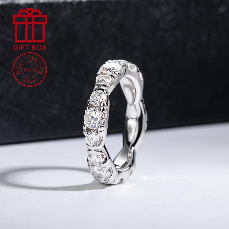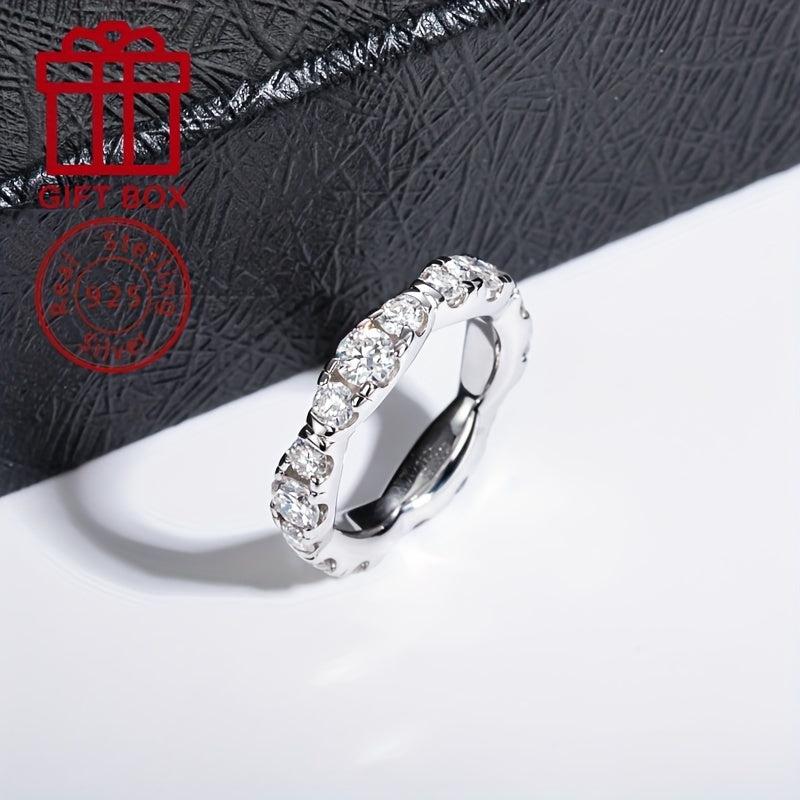 This stunning ring features 12pcs of 0.1CT and 6pcs of 0.3CT moissanite stones. It weighs approximately 4.4g, perfect for special occasions.