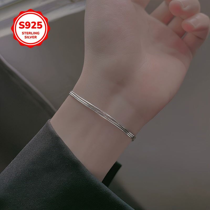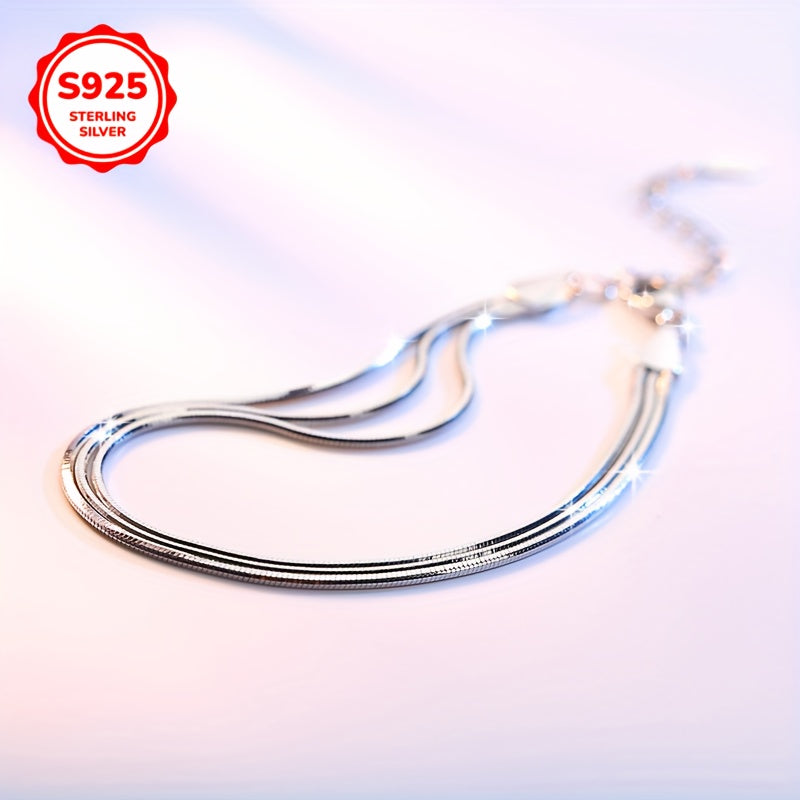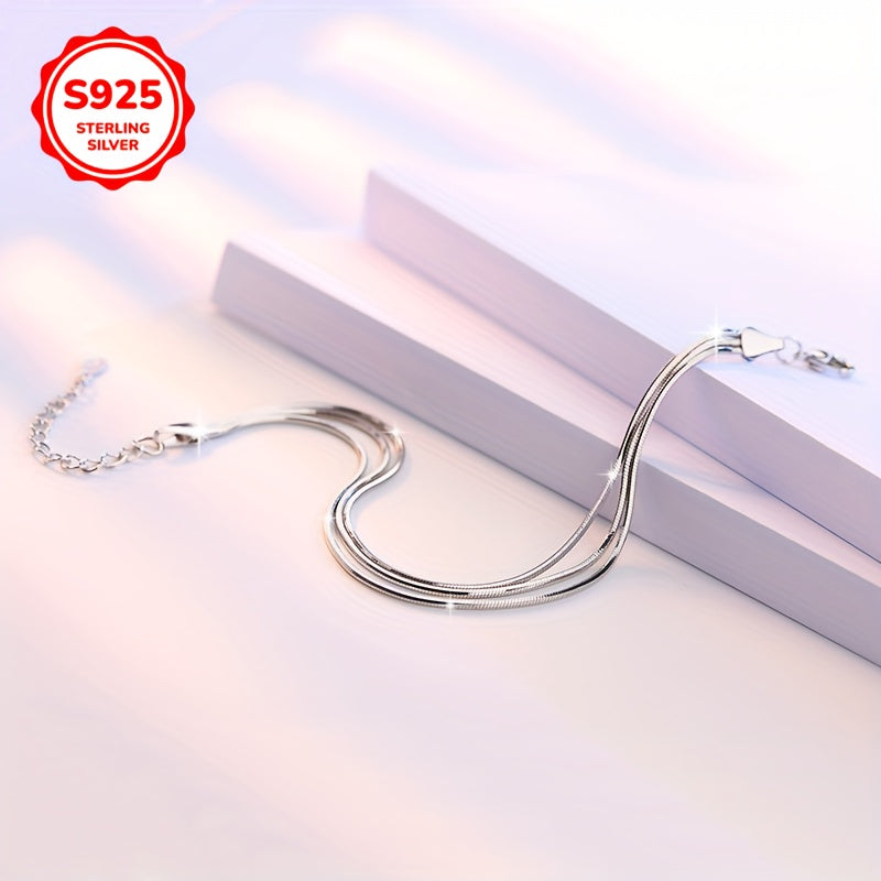 This stunning bracelet is crafted from high-quality 925 sterling silver and features a triple layer snake bone chain design. It has a lustrous finish, making it an elegant accessory for any outfit or occasion.