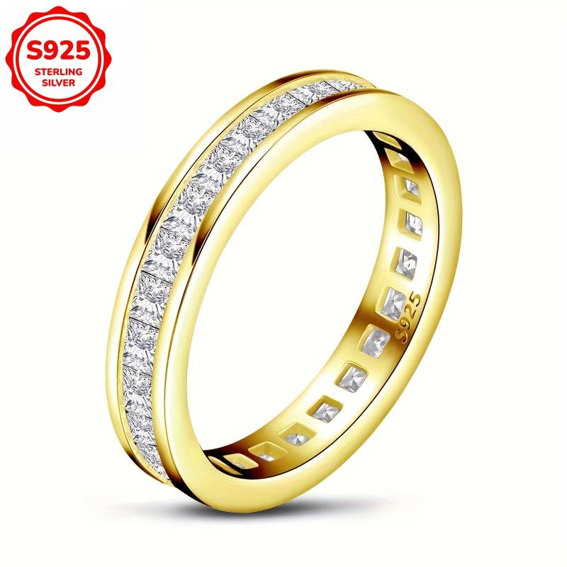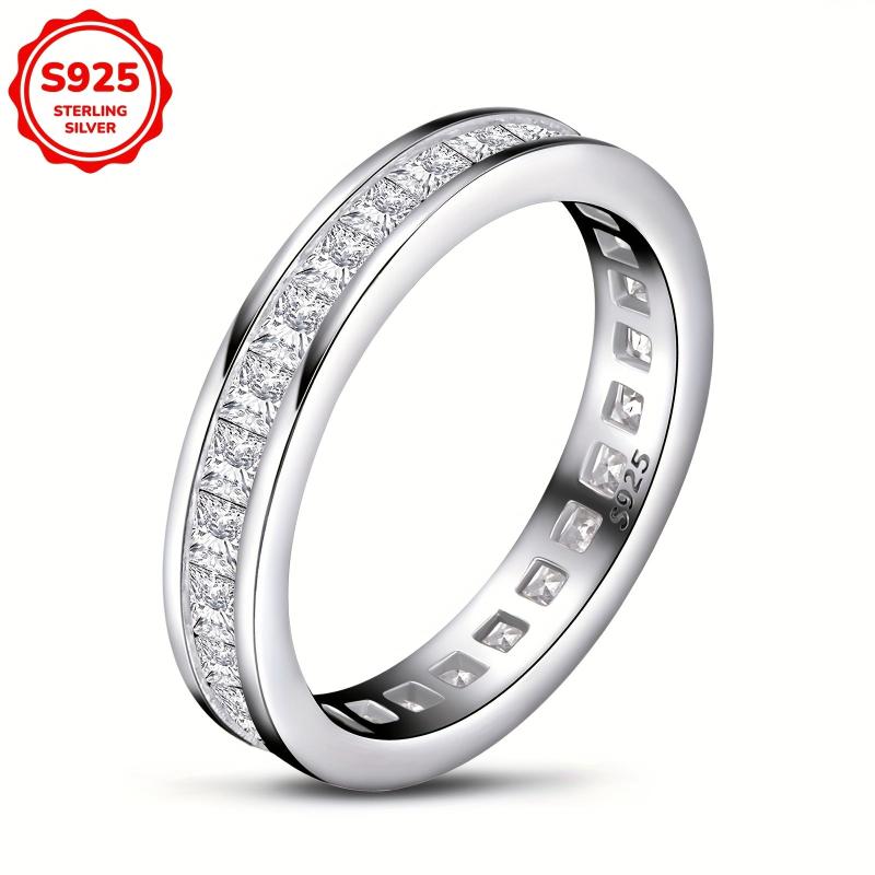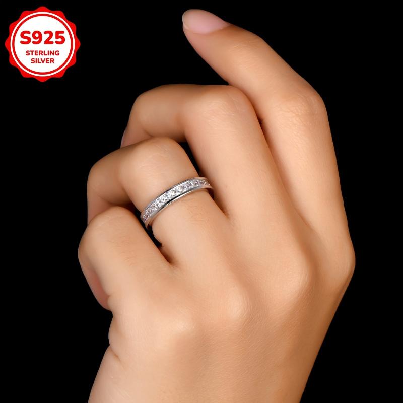 This stunning engagement ring features a princess-cut cubic zirconia stone set in 925 sterling silver. The full band design adds elegance and sophistication to any outfit.