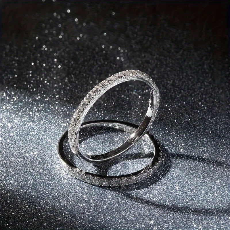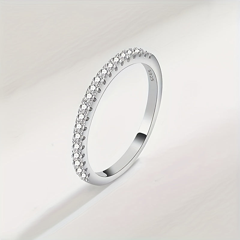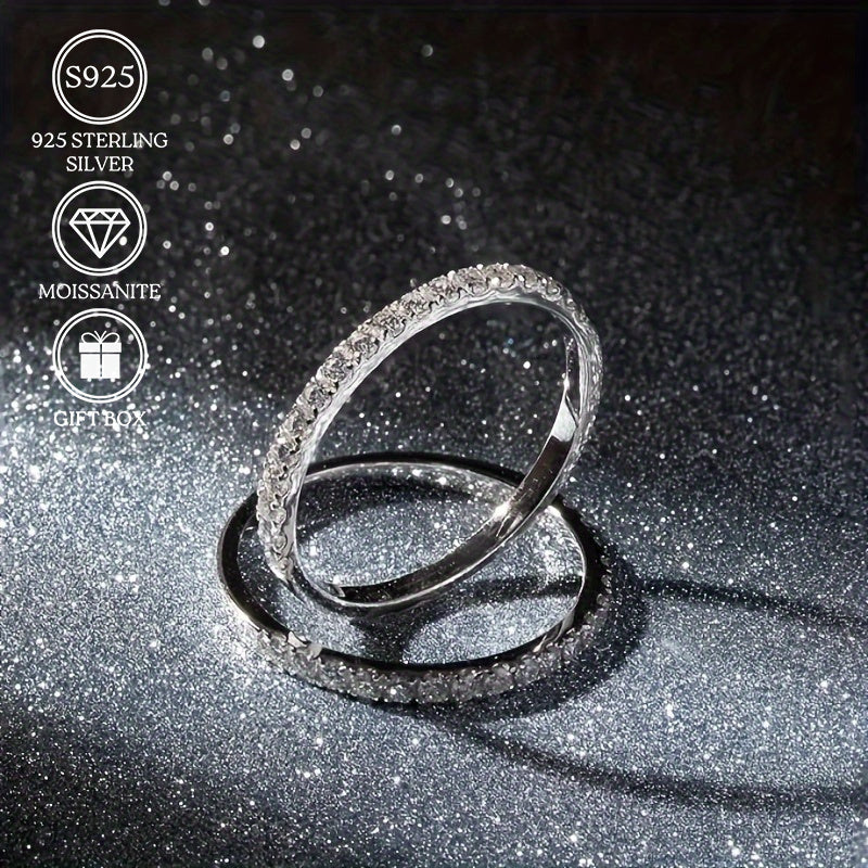 This minimalist stackable anniversary ring is perfect for ladies. Made with 925 sterling silver and a beautiful moissanite stone.