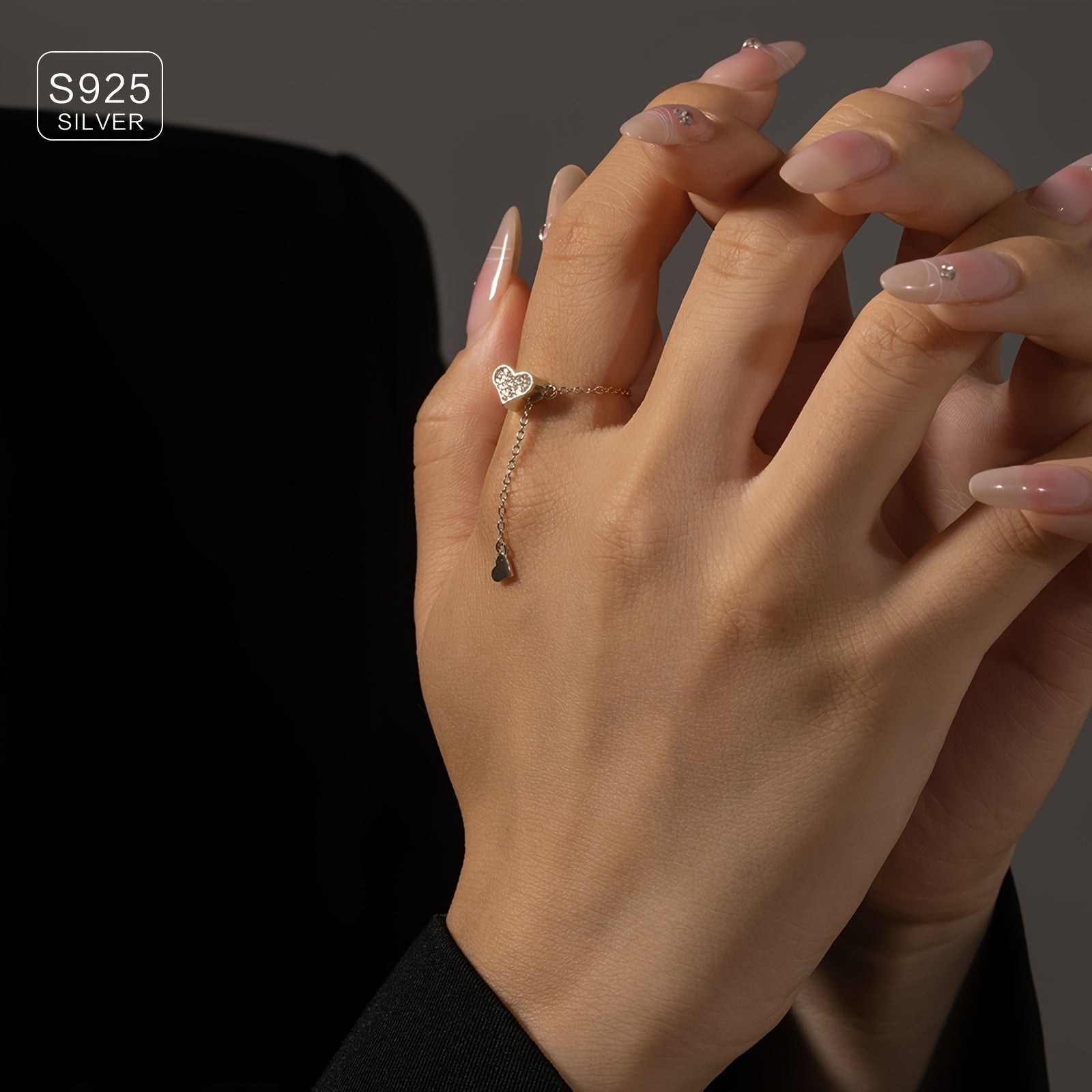 This beautiful ring features a heart design with synthetic cubic zirconia, crafted from 925 silver. No power needed, perfect for daily wear and gift giving in all seasons.