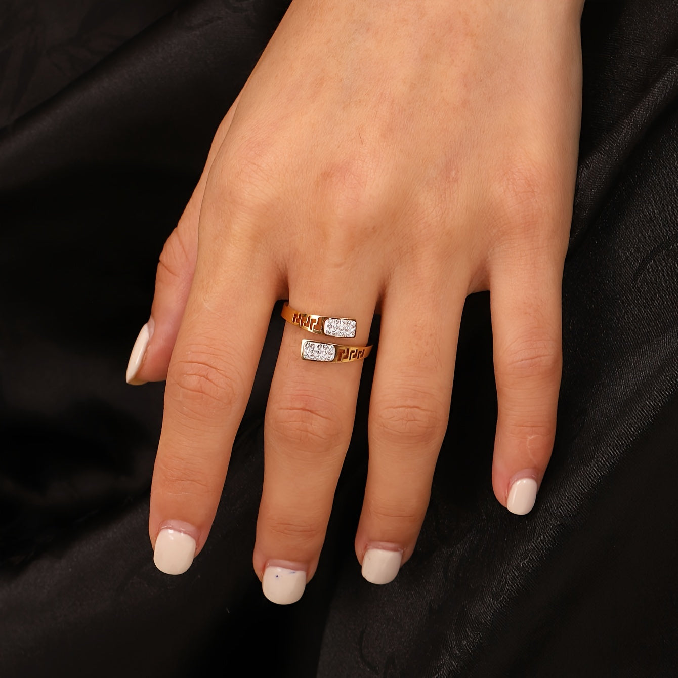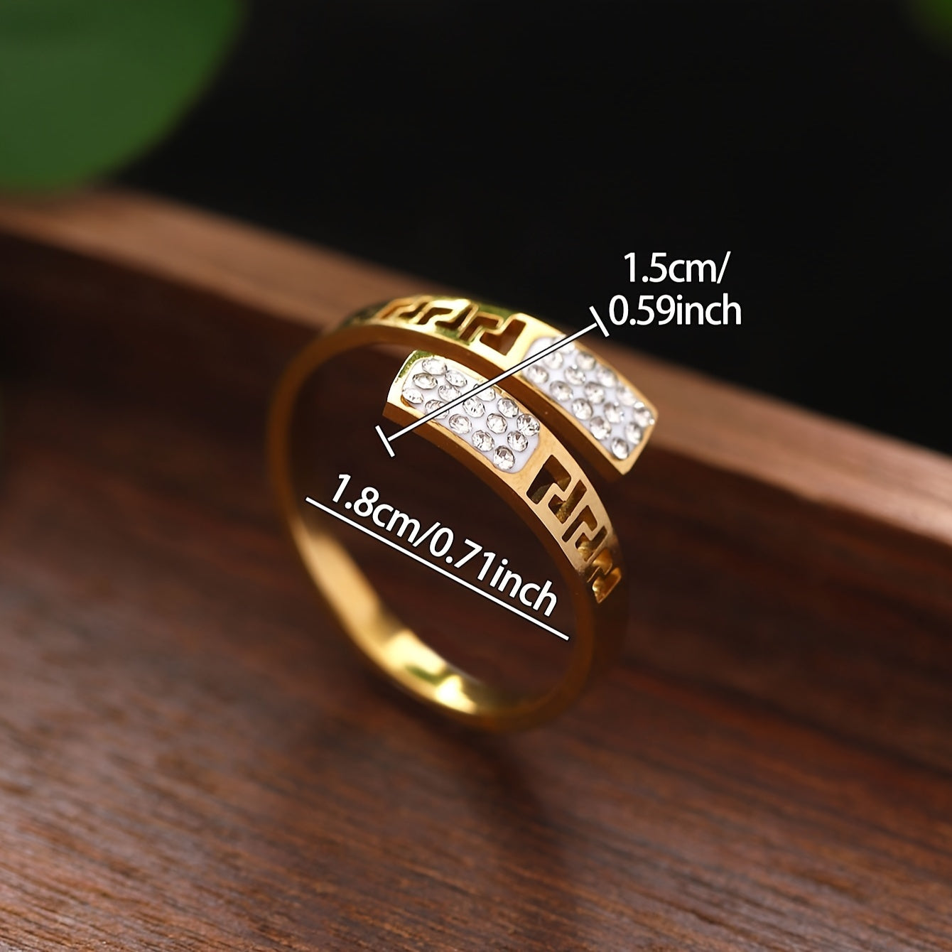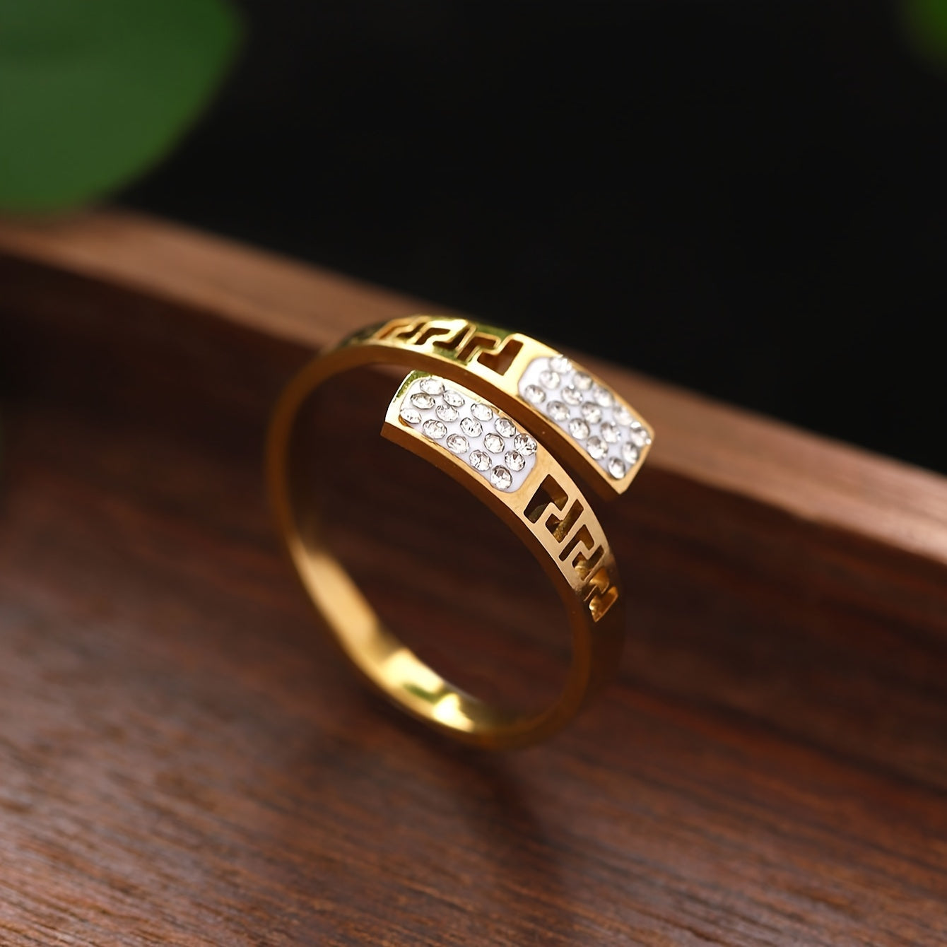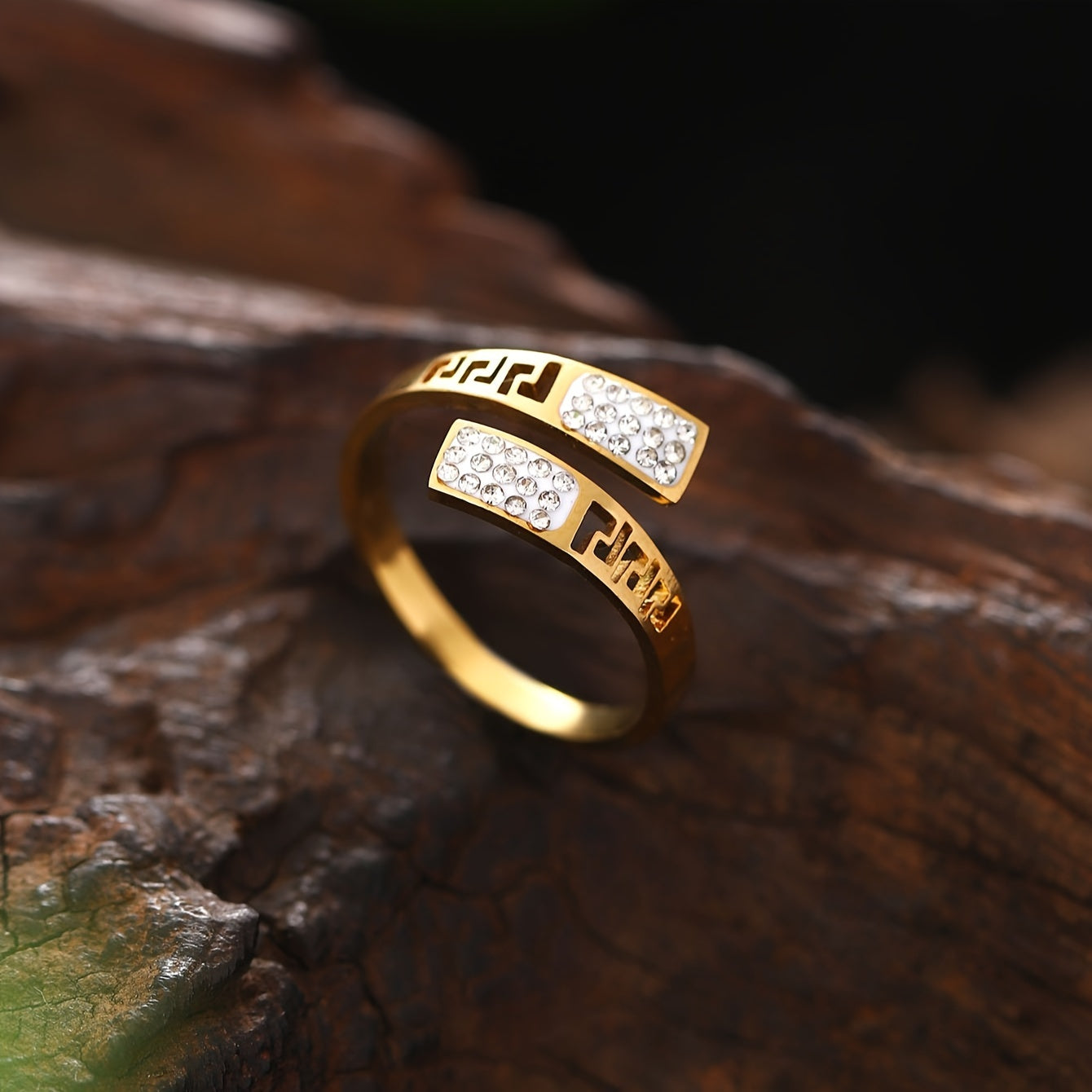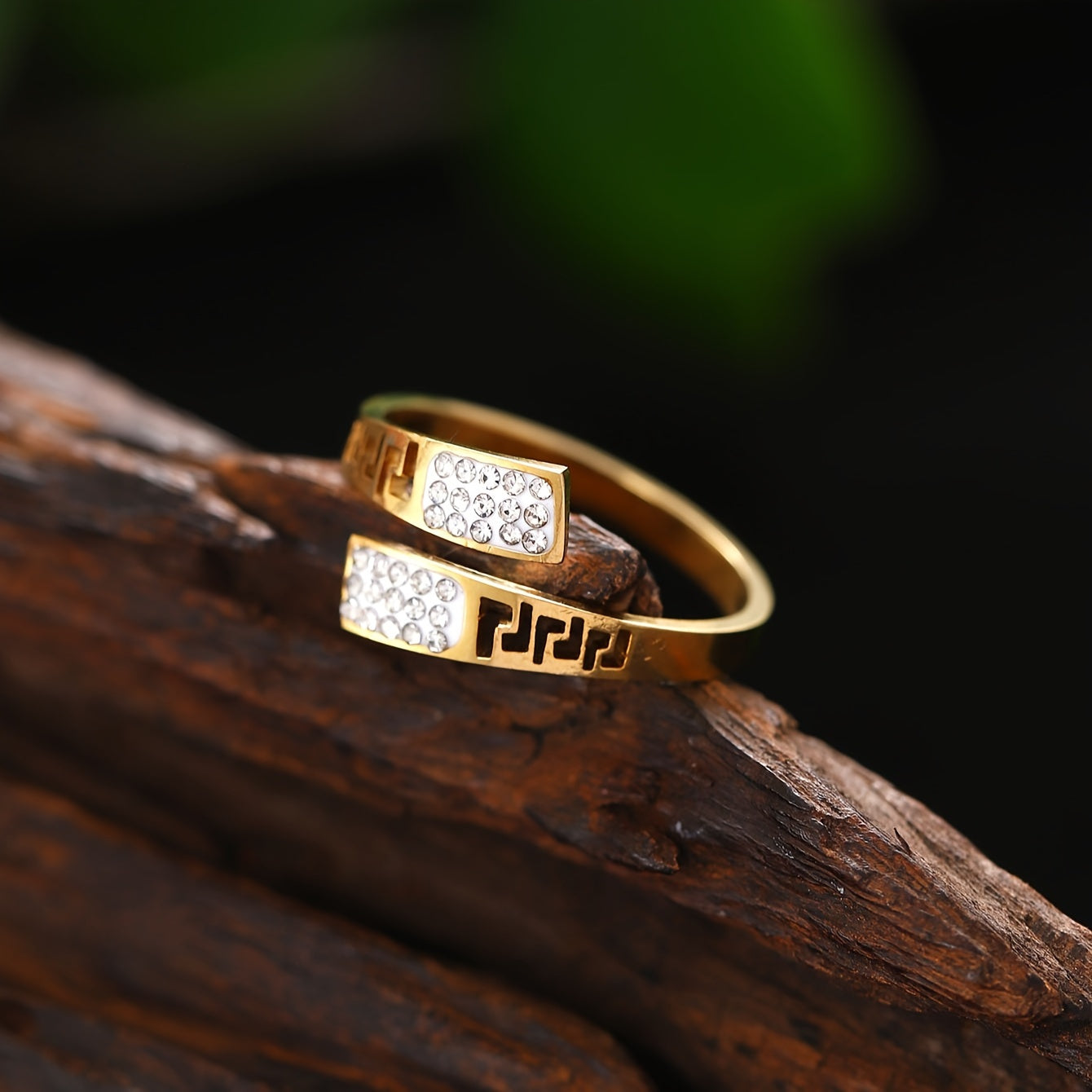 Adjustable Stainless Steel Ring with Sparkling Rhinestones for Women
