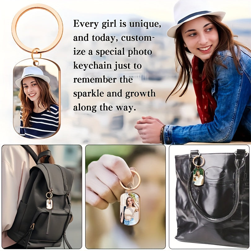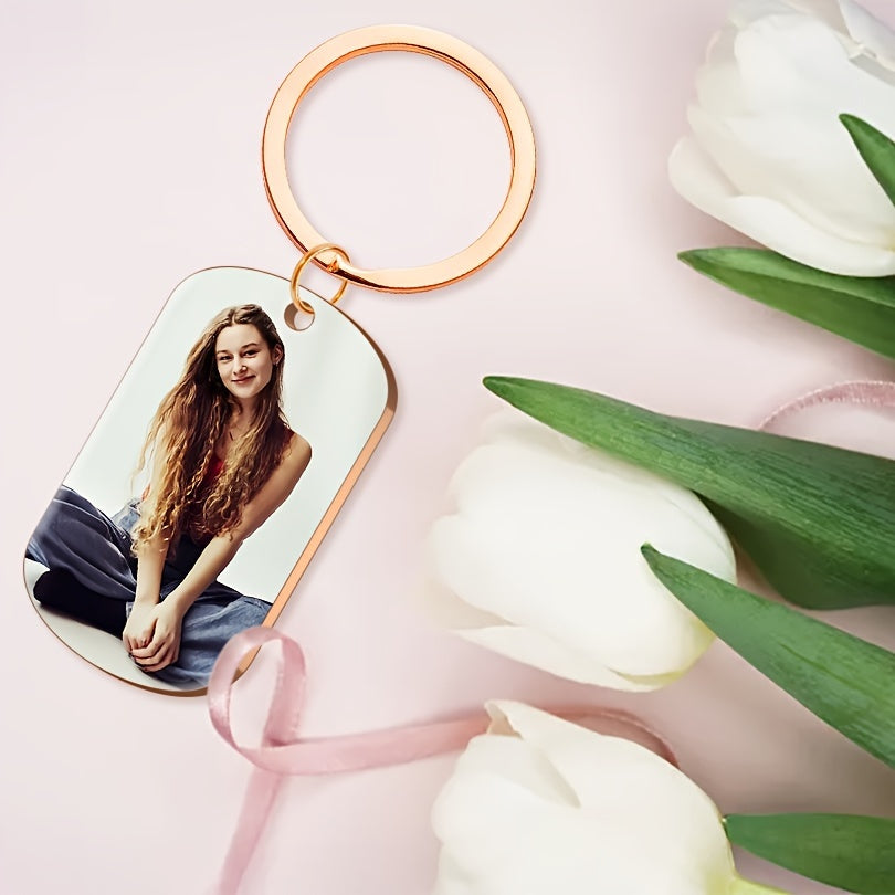 Dieser personalisierte Edelstahl -Schlüsselbund für Frauen ist das perfekte Thanksgiving -Geschenk. Der Schlüsselbund verfügt über ein individuelles graviertes Foto und einen Alphabet -Charme, was es zu einem einzigartigen und nachdenklichen Geschenk macht. Es ist ein wunderschönes Ornament für Schlüssel.