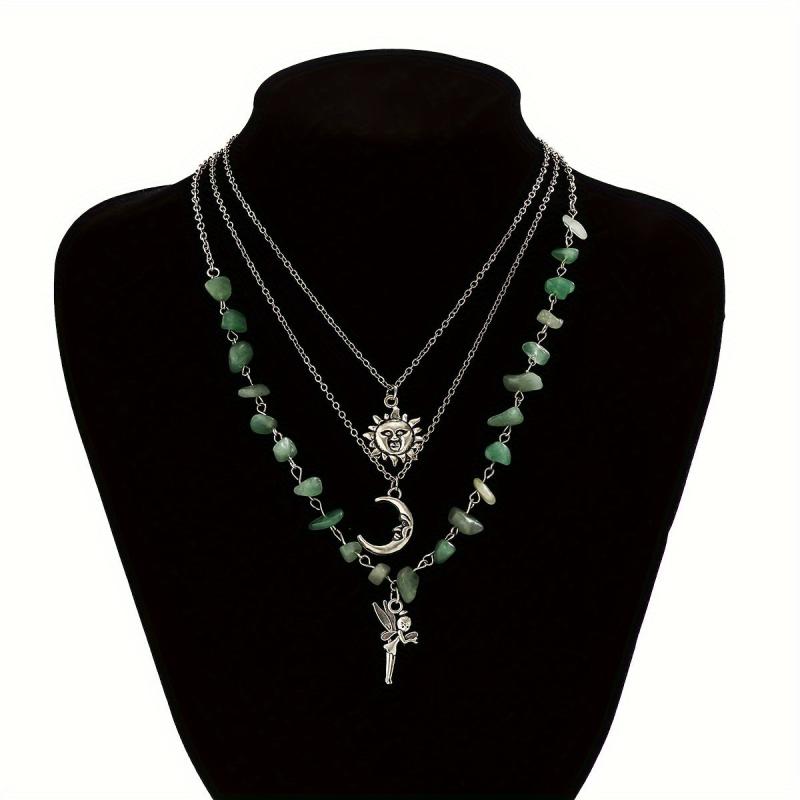 Elevate your style with this 3-piece necklace set featuring natural stone gems and a fairy pendant. Perfect for daily wear and adding a touch of bohemian charm.