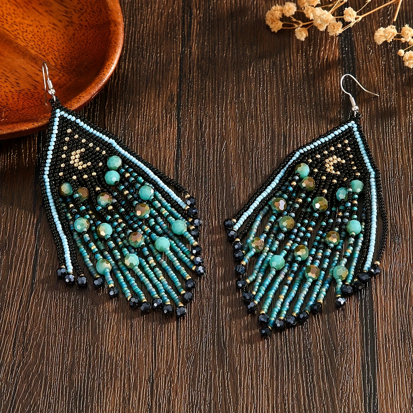 Bohemian Moon Tassel Earrings Glass Beaded Hand Woven