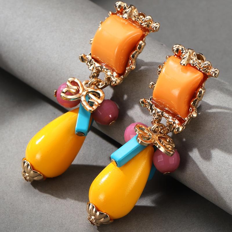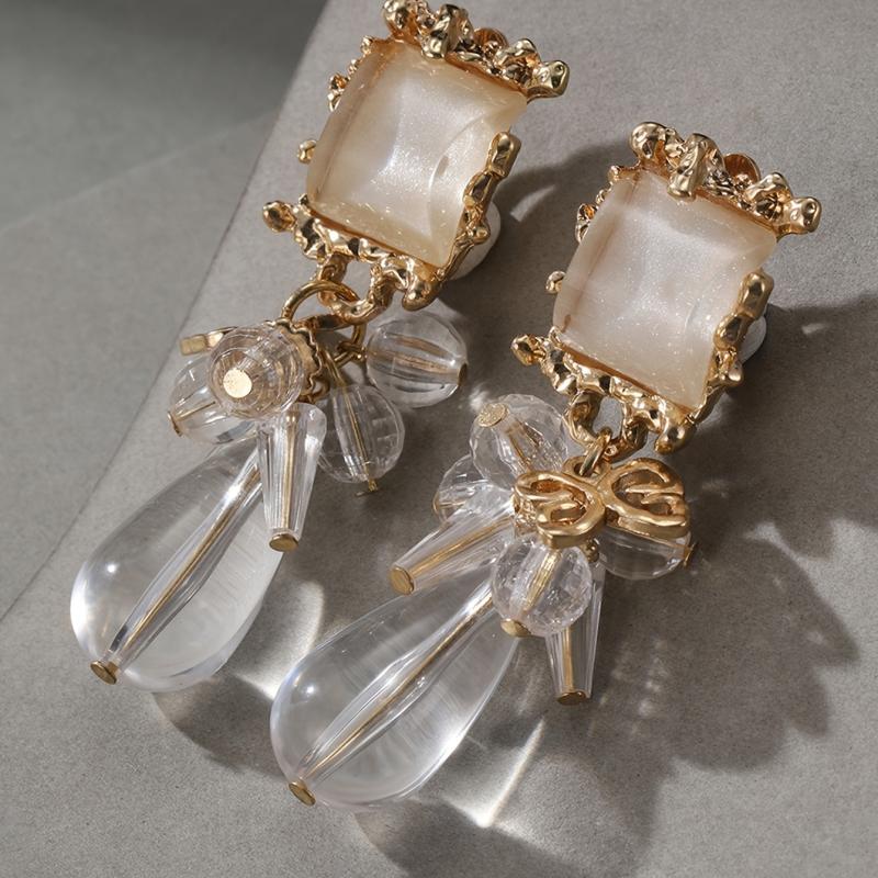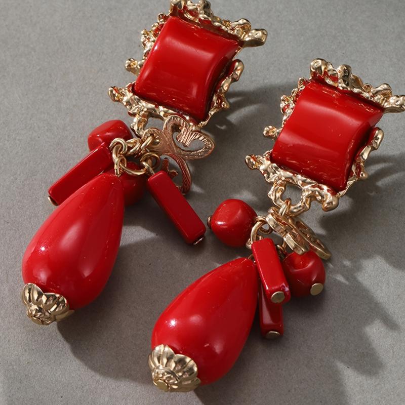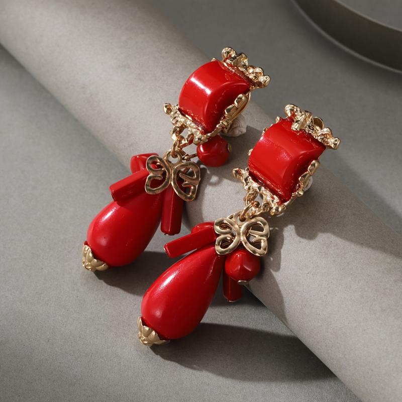 Add a touch of vintage-inspired charm to your outfit with these elegant resin clip-on earrings featuring red and gold accents. Perfect for parties, weddings, dates, and daily wear.