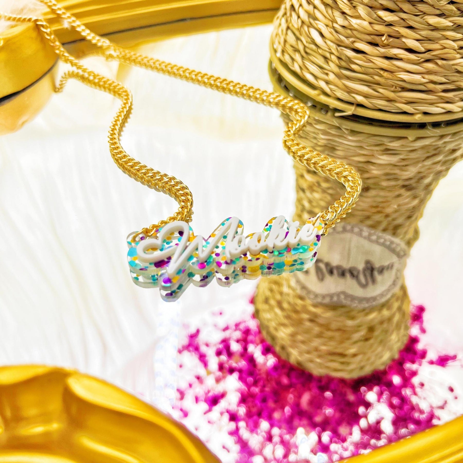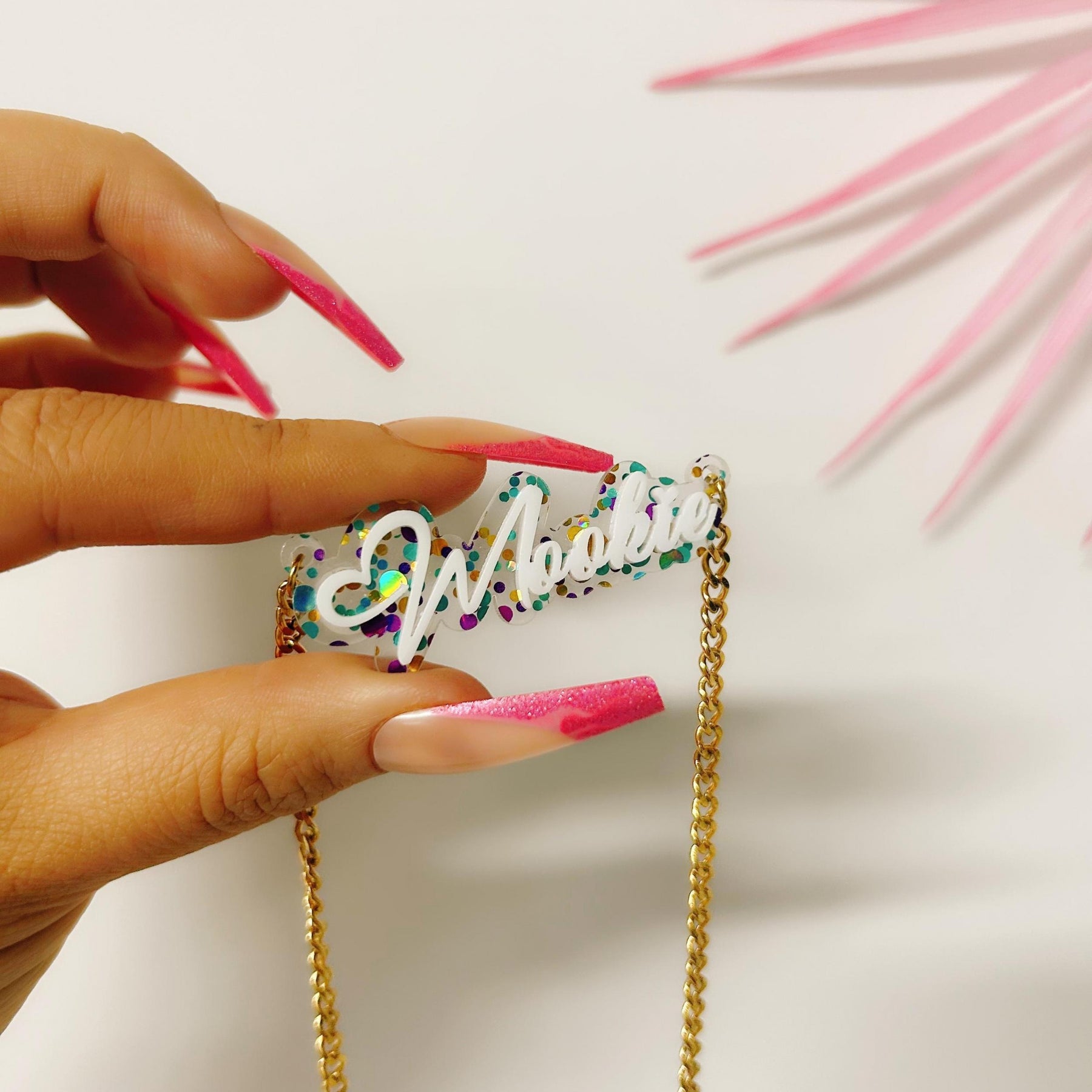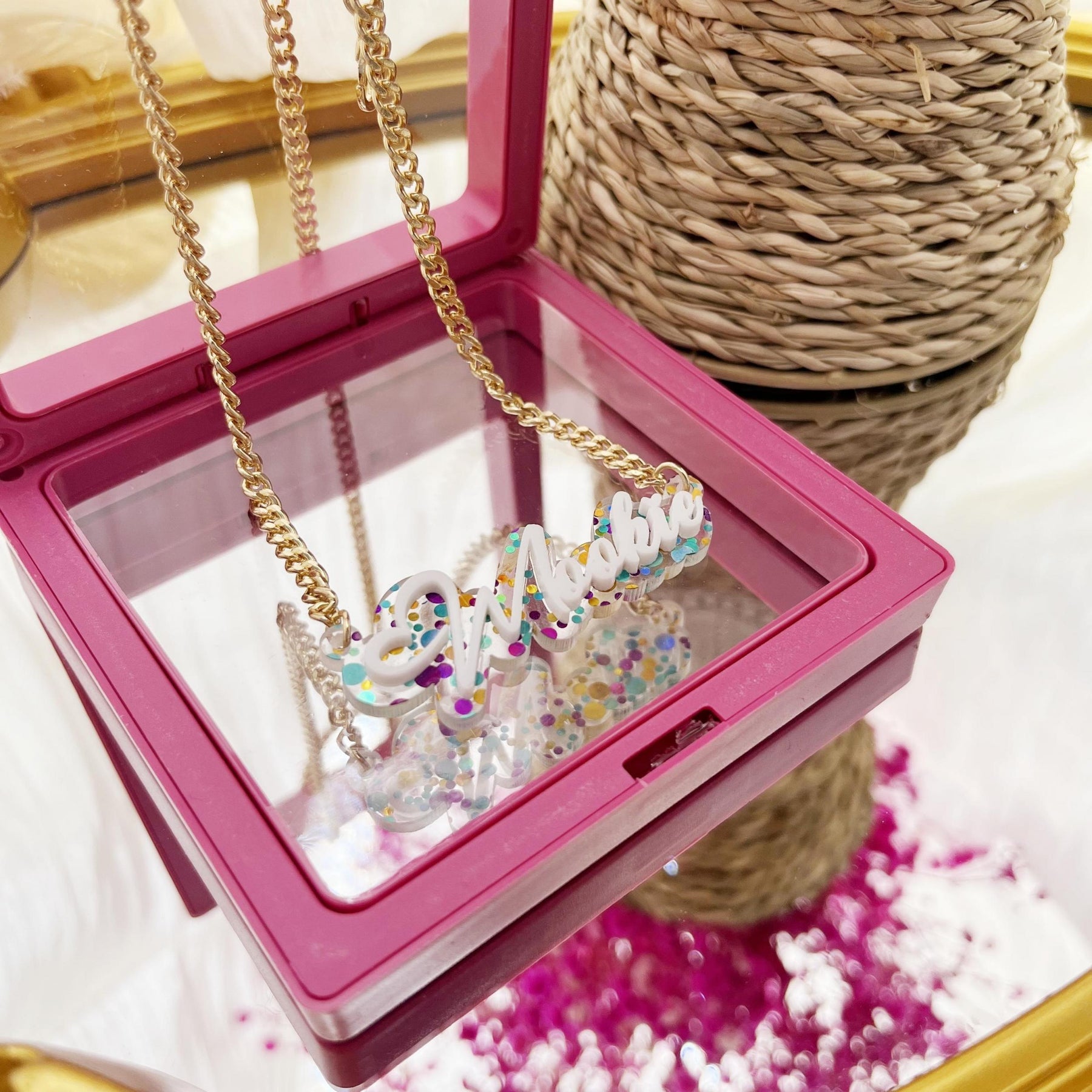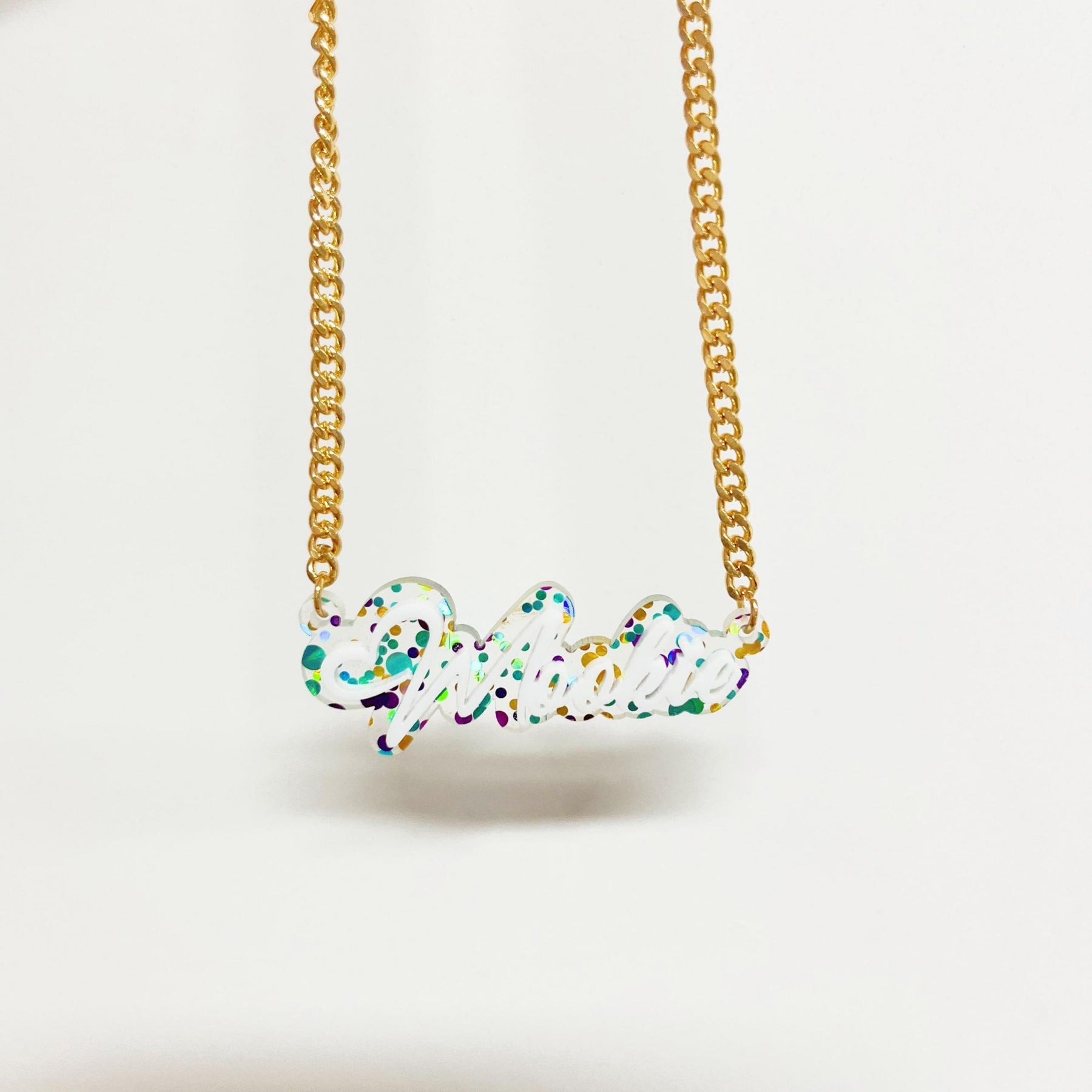 • Personalisierte Acrylname -Halskette mit Paillettennamen