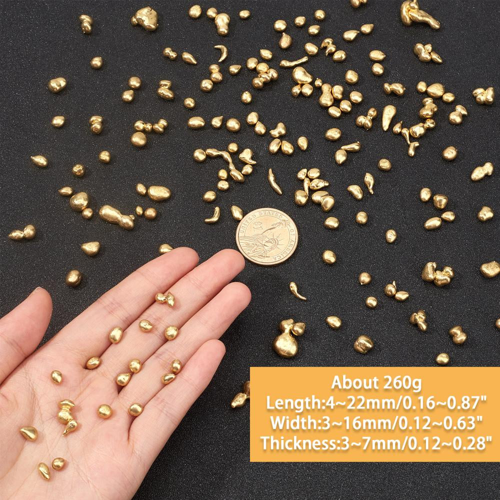 This box of brass nuggets is perfect for casting your own jewelry pieces such as rings, necklaces, and pendants. The corrosion-resistant material ensures your creations will last. Each nugget measures 4.22x3.16x3.7mm and weighs 260g.