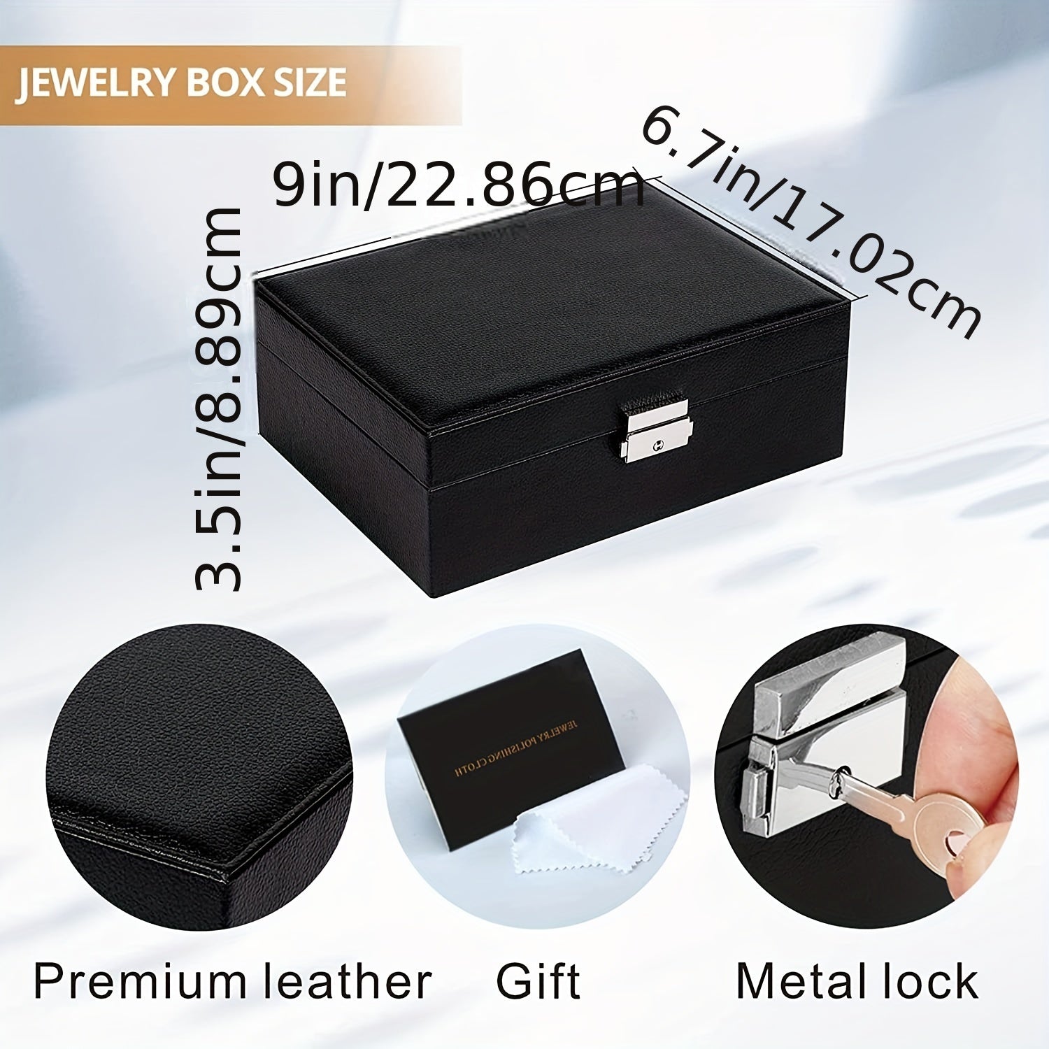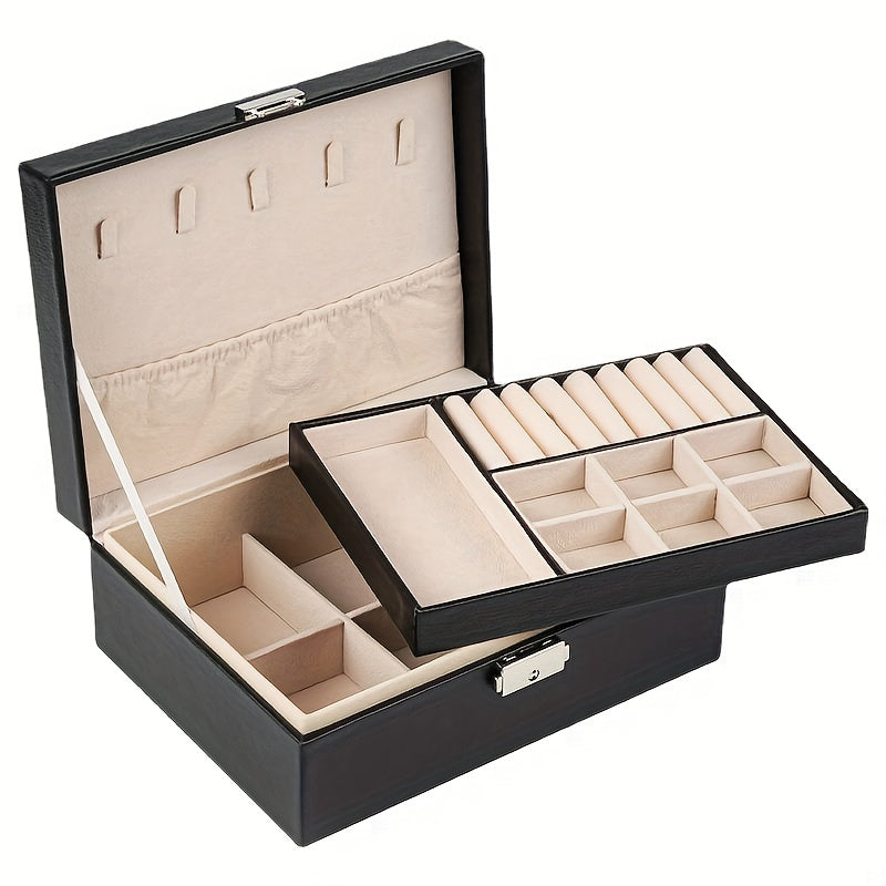 Keep your jewelry organized and easily accessible with this double-layer storage box. The box features compartments for rings, earrings, necklaces, and more, making it a versatile storage solution for all your jewelry needs.
