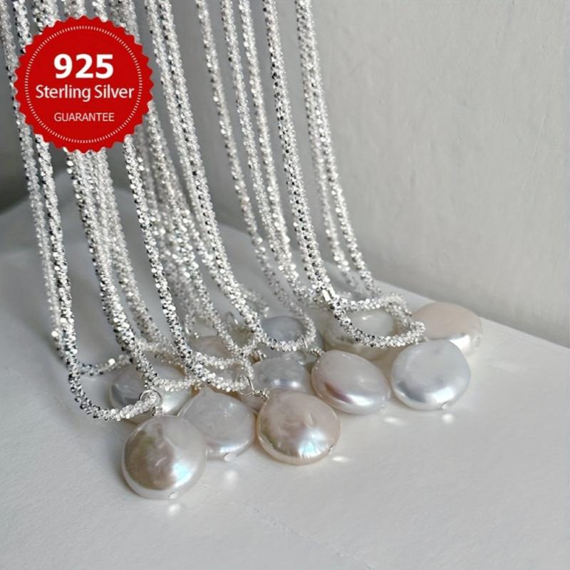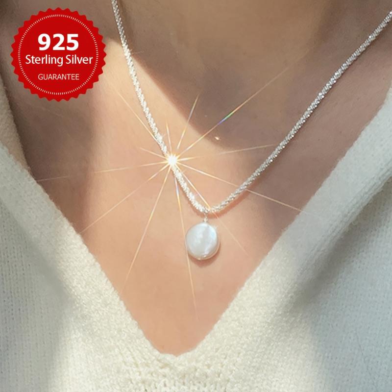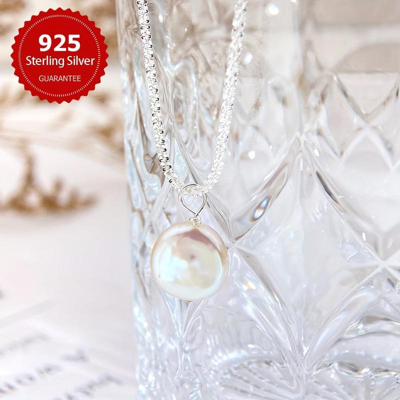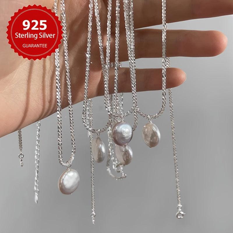 Elegant necklace with irregular shell pearl pendant, made of s925 sterling silver. Perfect gift for ladies.