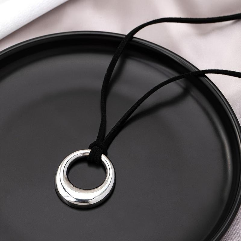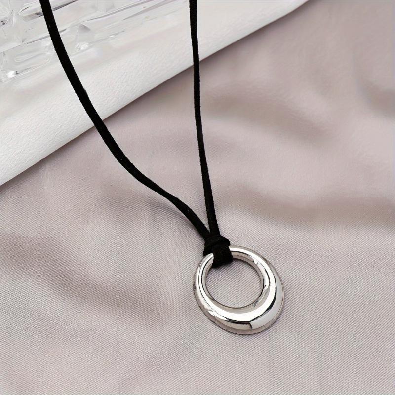 Elevate your everyday and vacation look with this women's pendant necklace featuring a geometric circle charm on a cord. Perfect for adding a hip hop touch to your outfit.