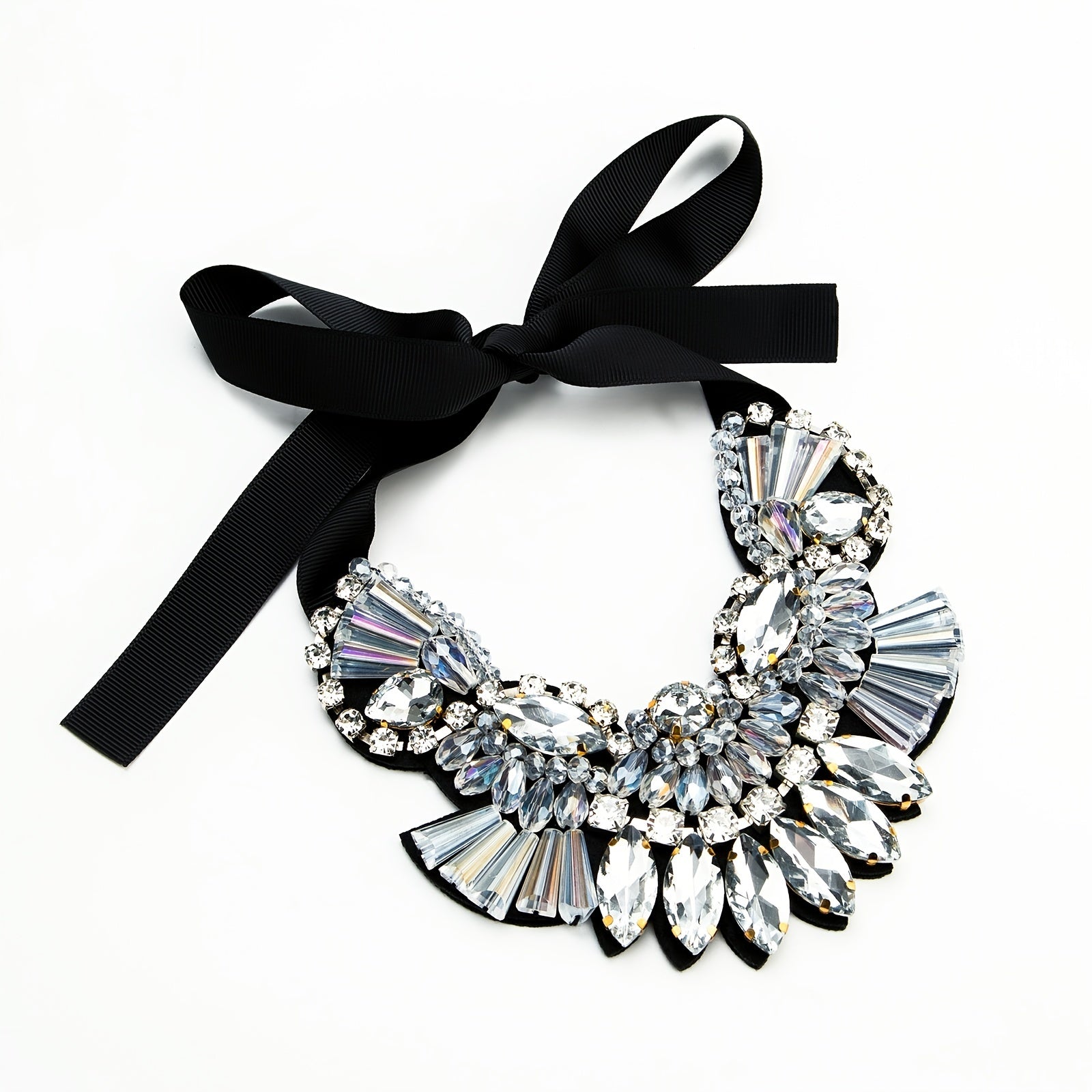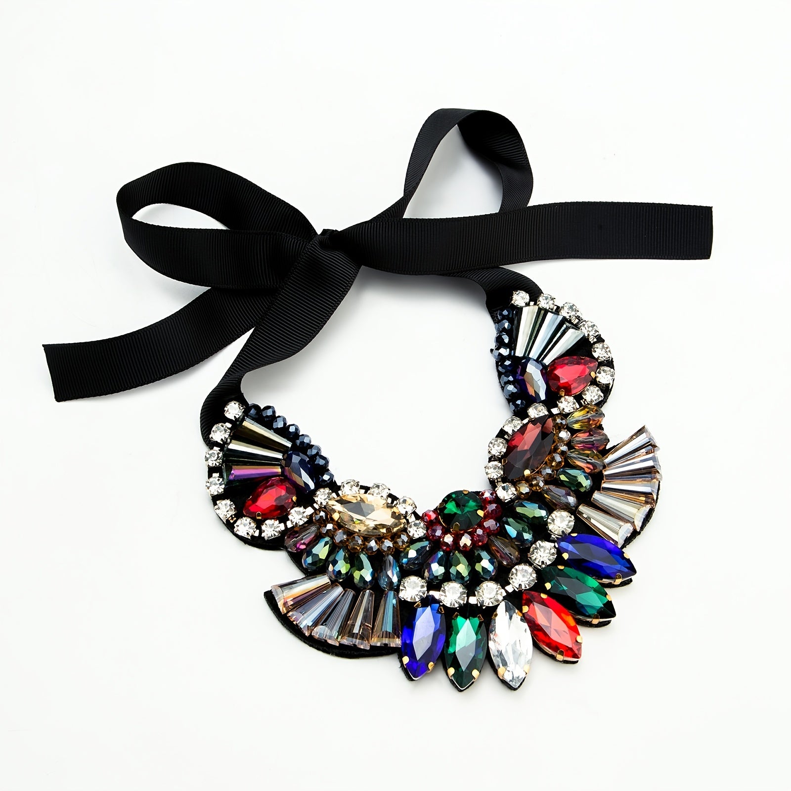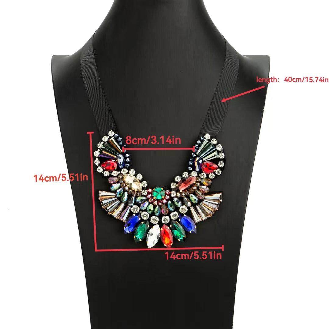 Elevate your evening outfits with this glamorous and stylish collar necklace featuring large bead glass gemstones. Handcrafted with crystal rhinestones, this exaggerated accessory is perfect for parties and special occasions.