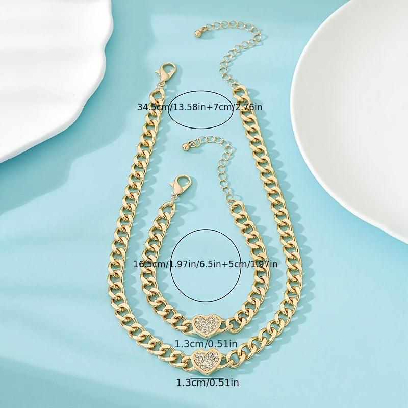 Elevate your style with this chic heart pendant necklace and bracelet set. Perfect for any occasion, this jewelry set adds a touch of elegance to your look.