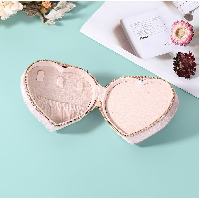Heart Shape Velvet Jewelry Box Portable Travel Rings Necklace Earrings Jewelry S