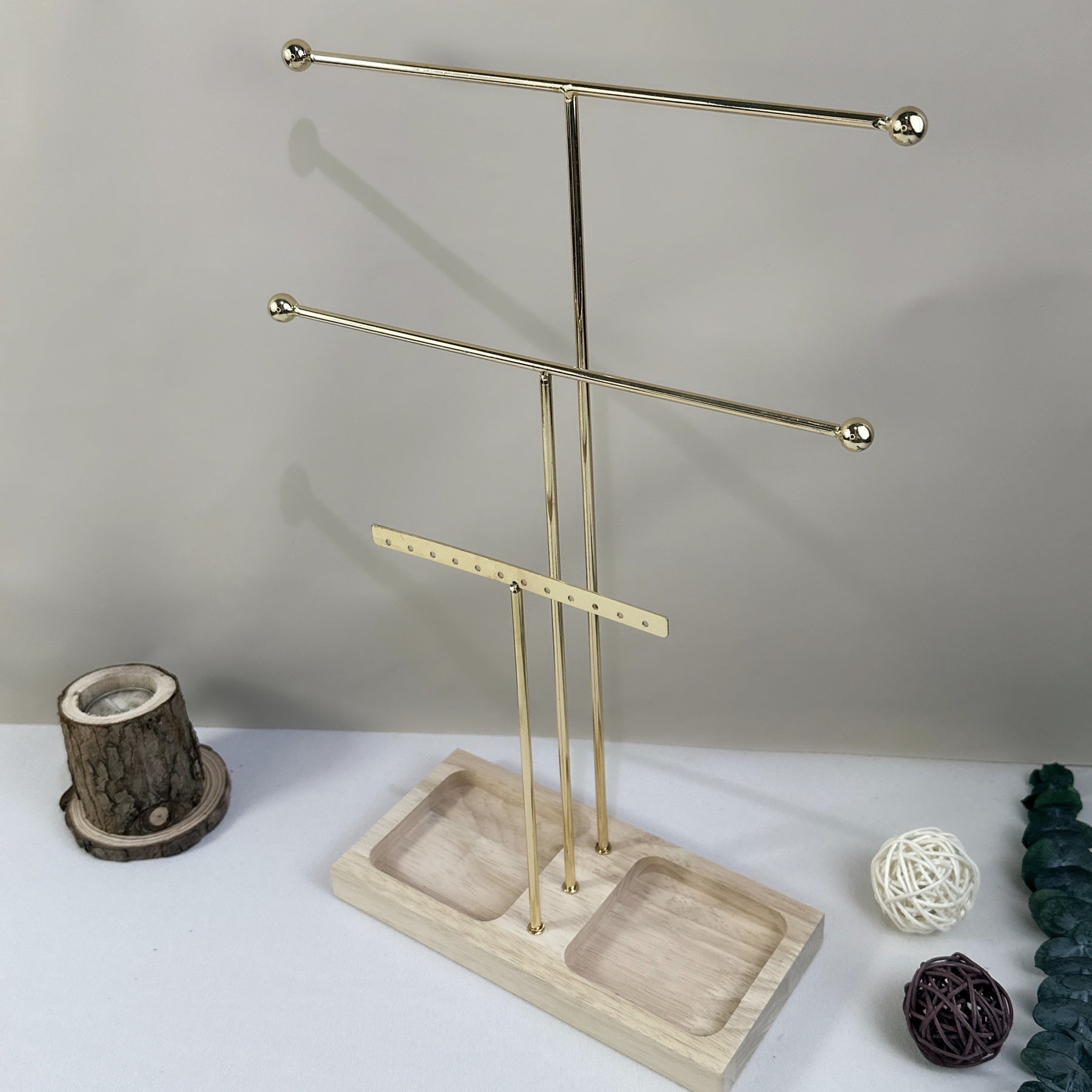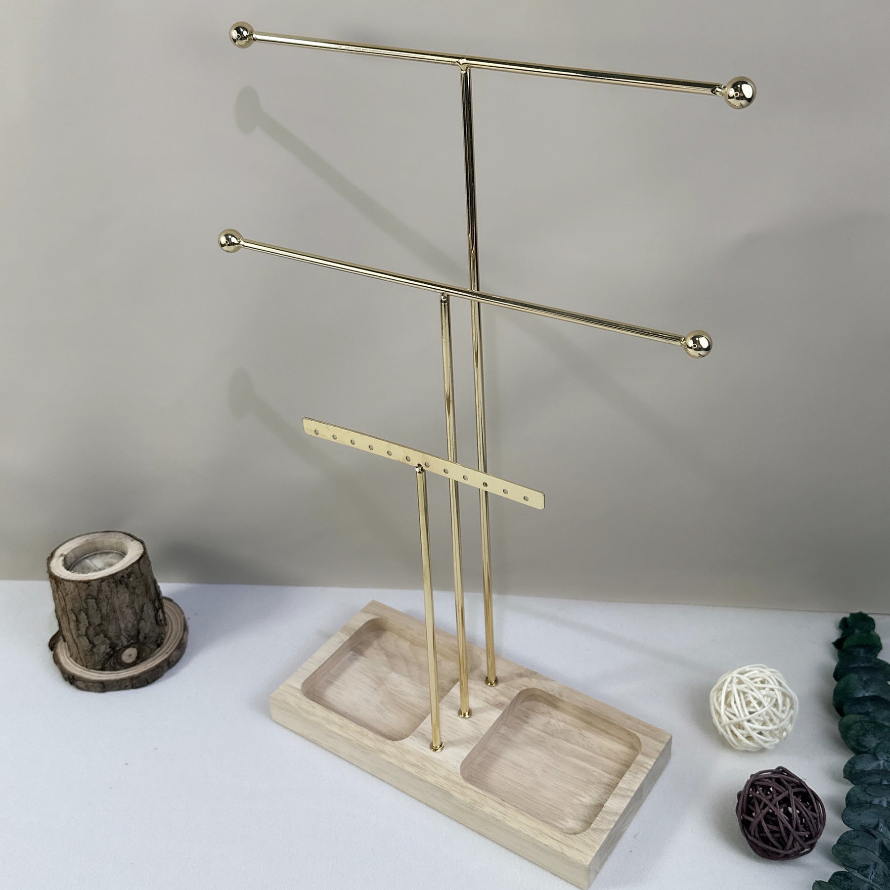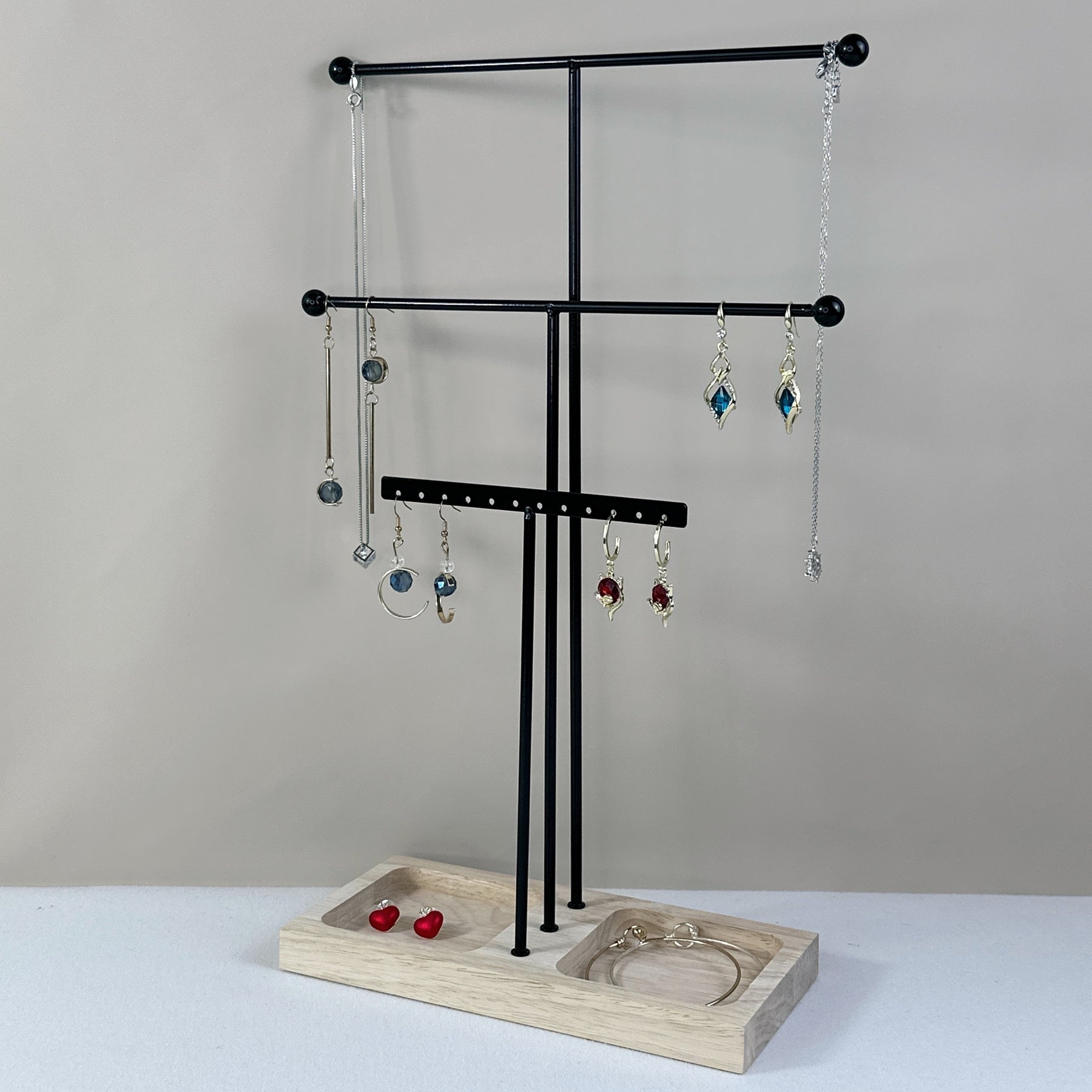 Organize and display your jewelry collection with this desktop storage rack. It's perfect for keeping earrings, necklaces, and watches in one stylish and convenient place.