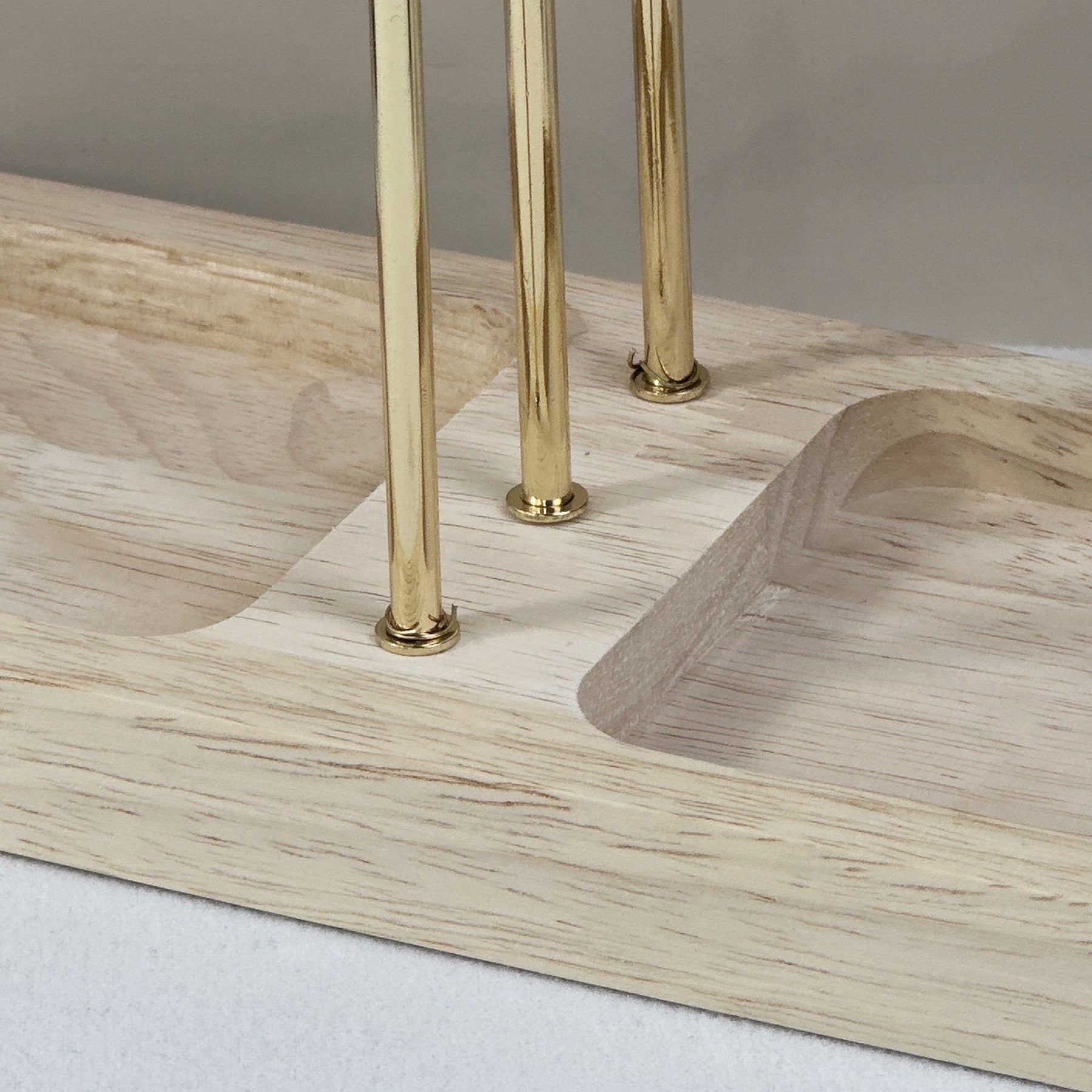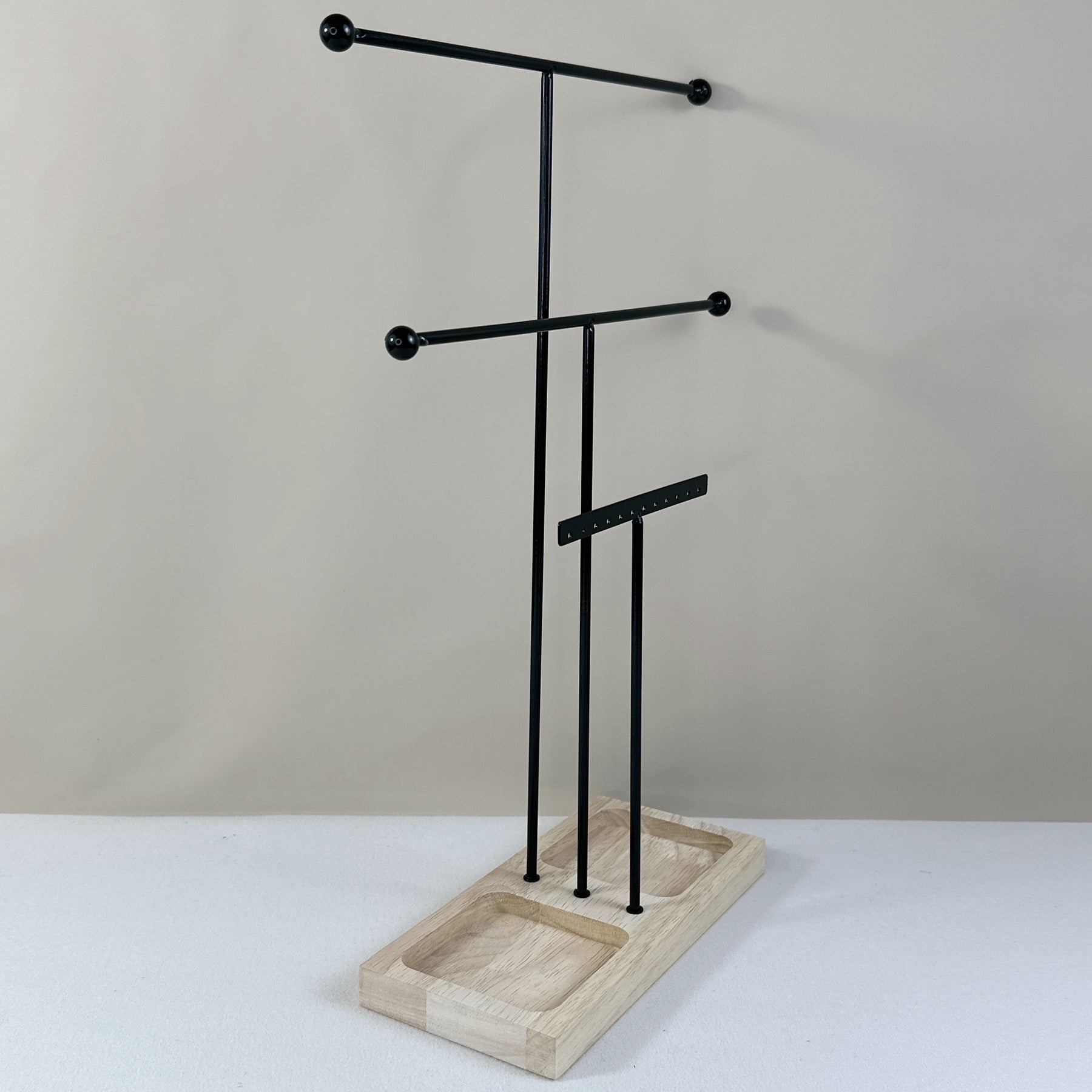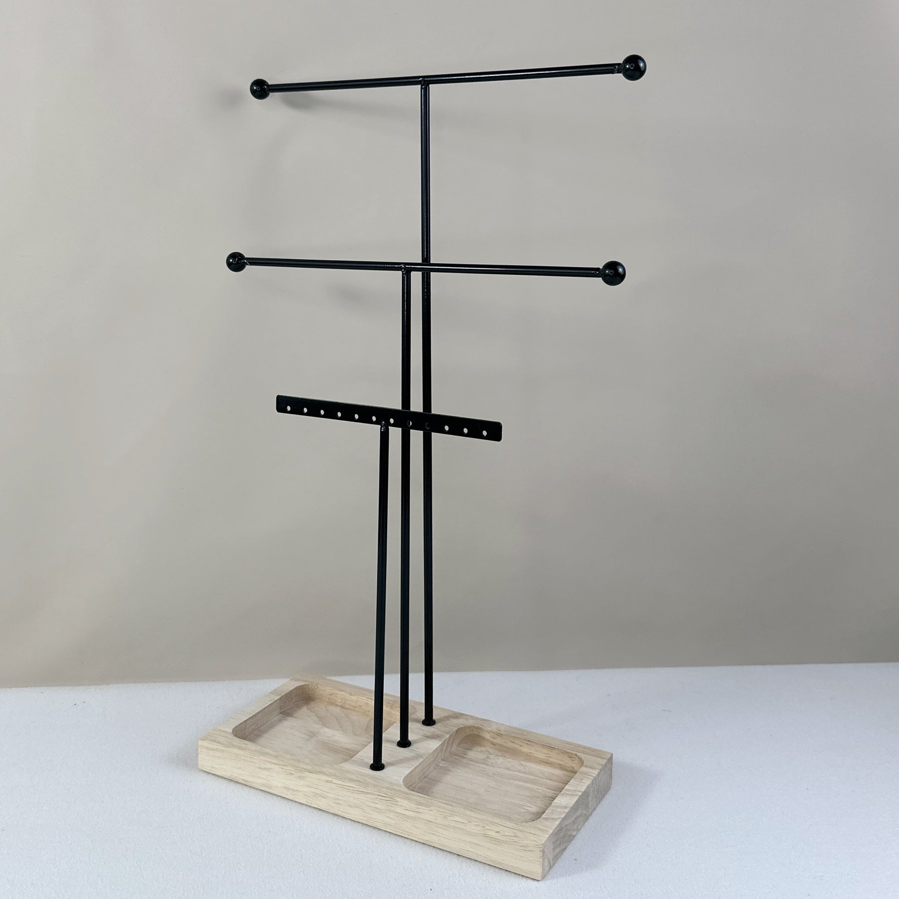 Organize and display your jewelry collection with this desktop storage rack. It's perfect for keeping earrings, necklaces, and watches in one stylish and convenient place.